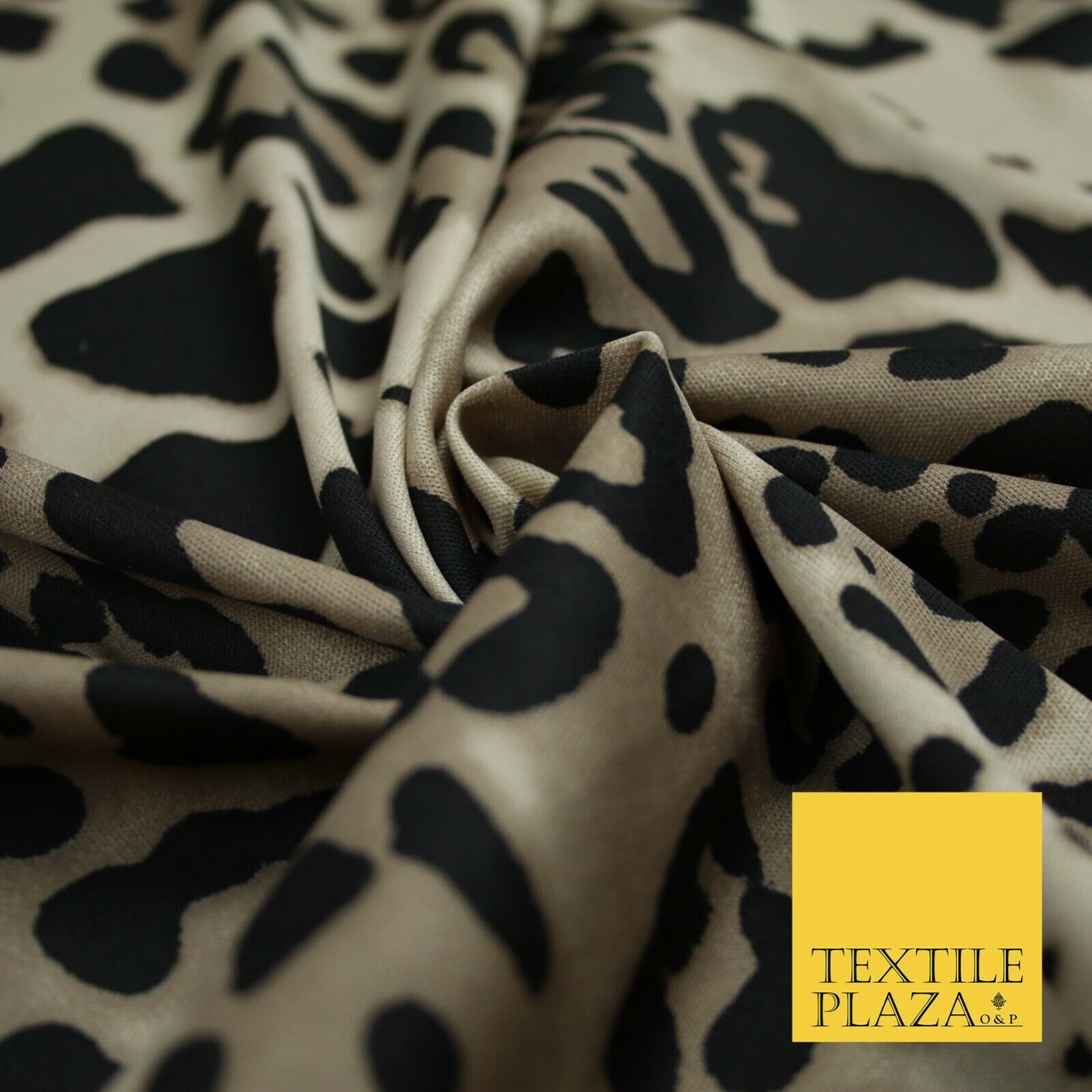 Beige / Black Animal Leopard Cheetah Stretch Jersey Fabric Dress 58" Wide 6362