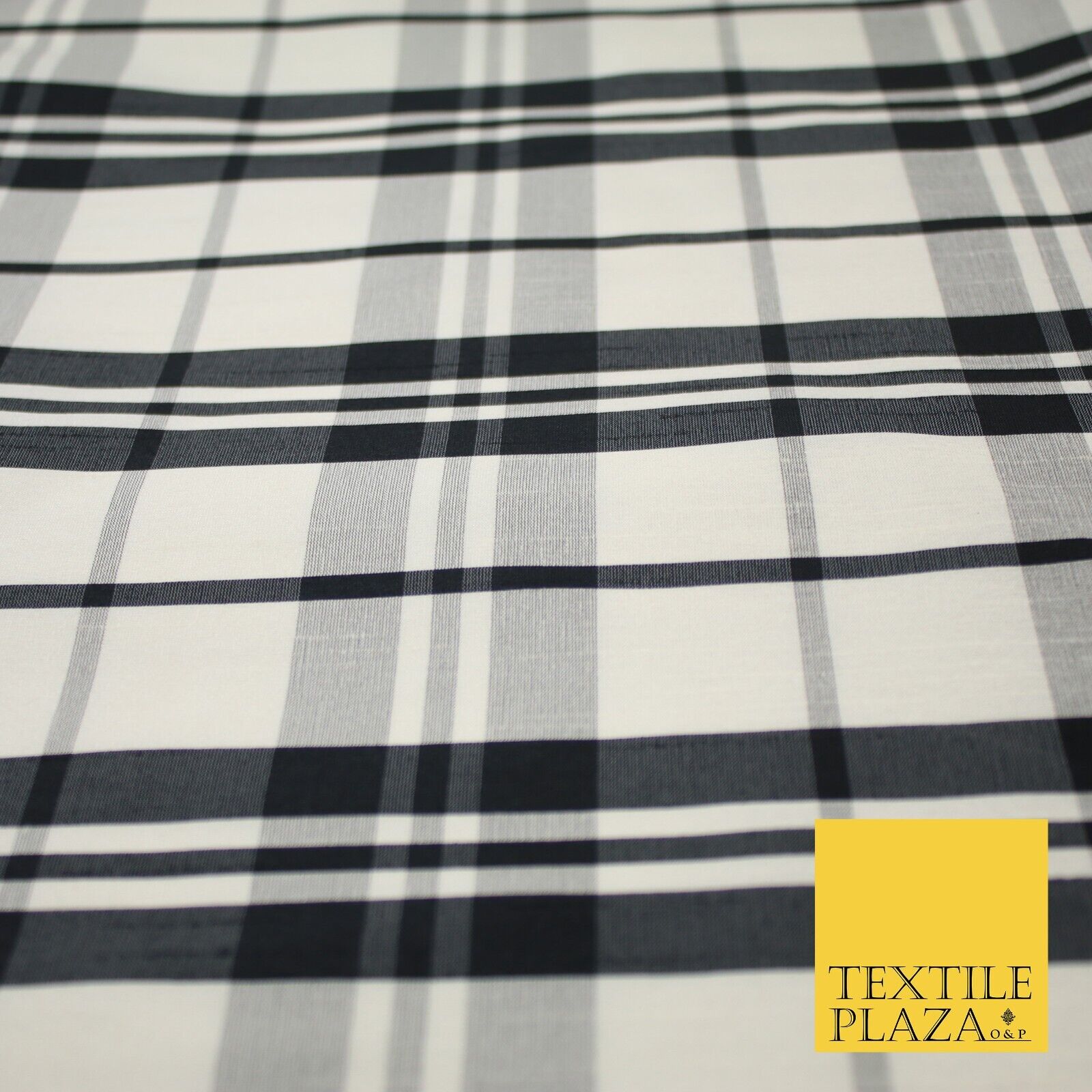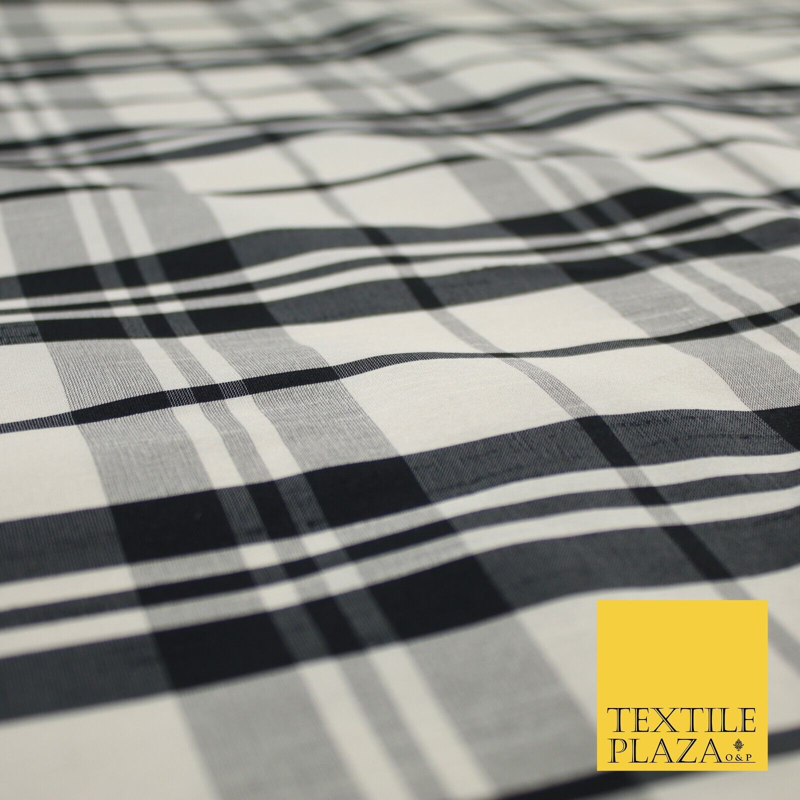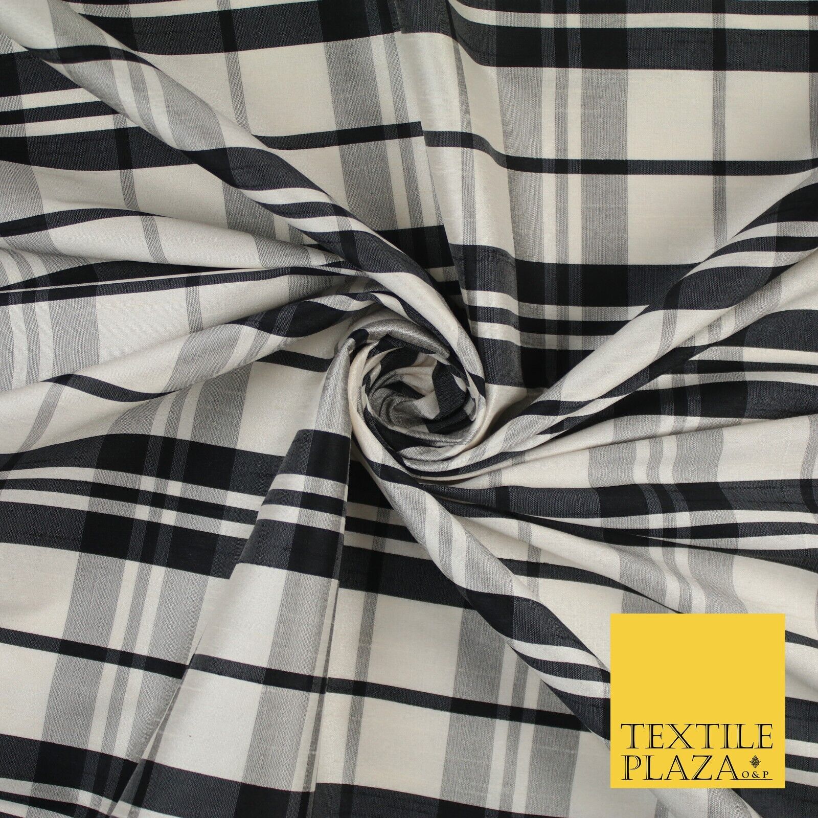 Beige Black Dupion Faux Raw Silk Check Tartan Fabric Material 58" Craft 9638