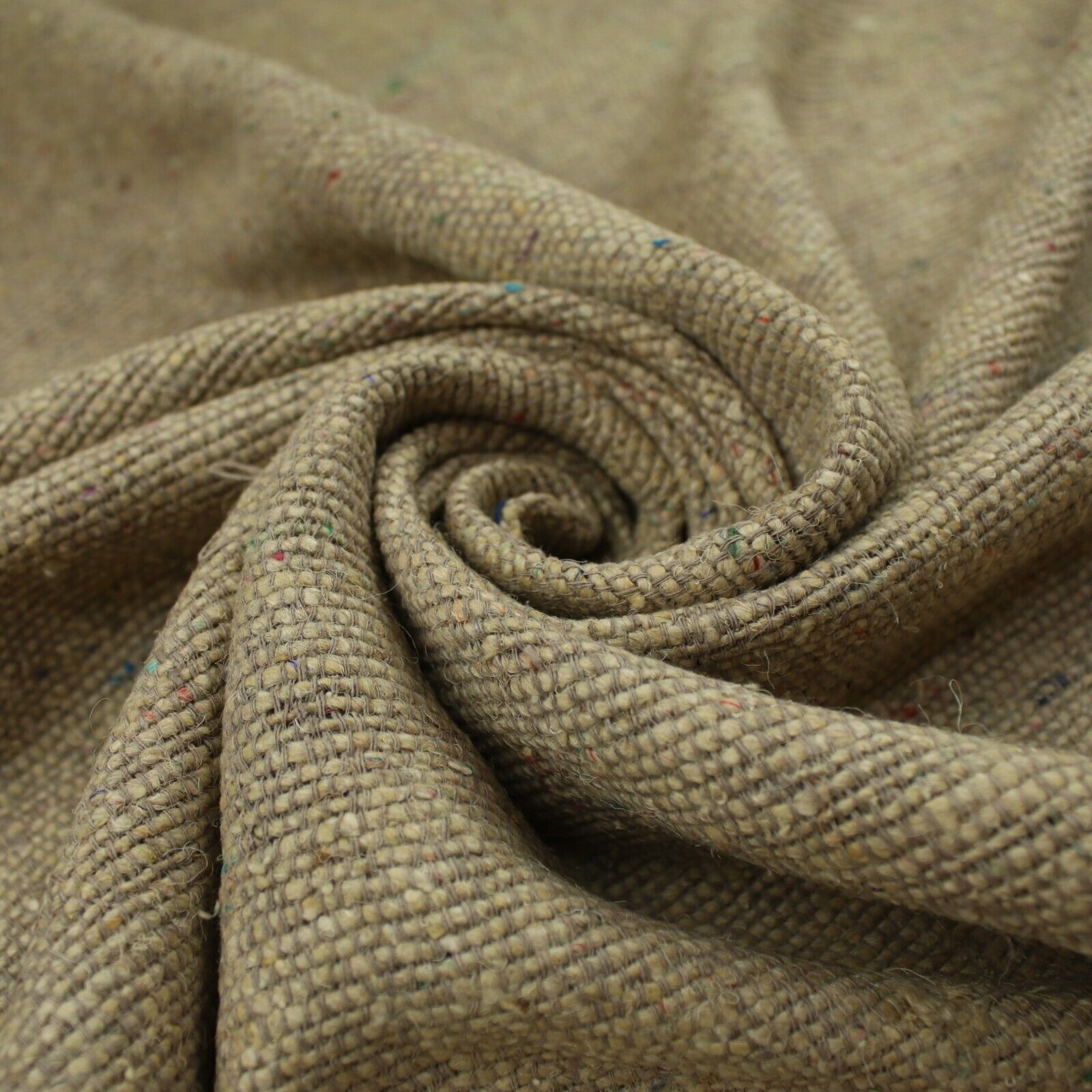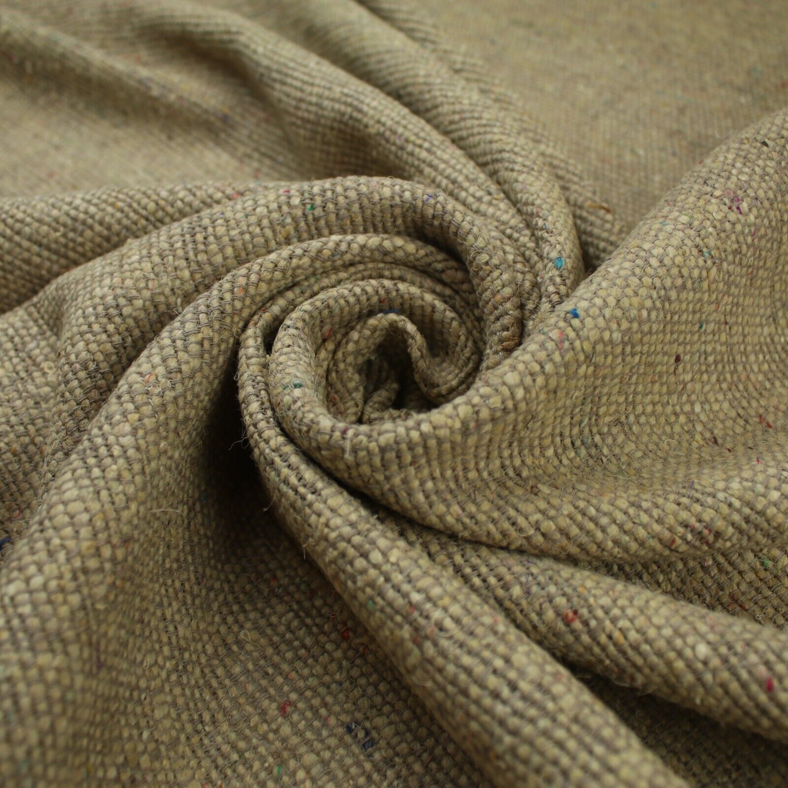 BEIGE Coloured Fleck Corded 100% Silk Linen Look Material Upholstery Craft 9821