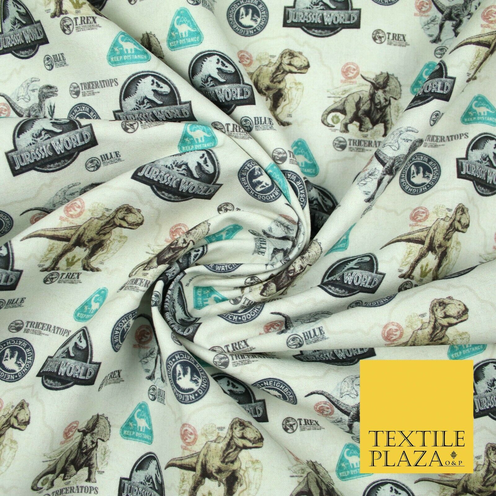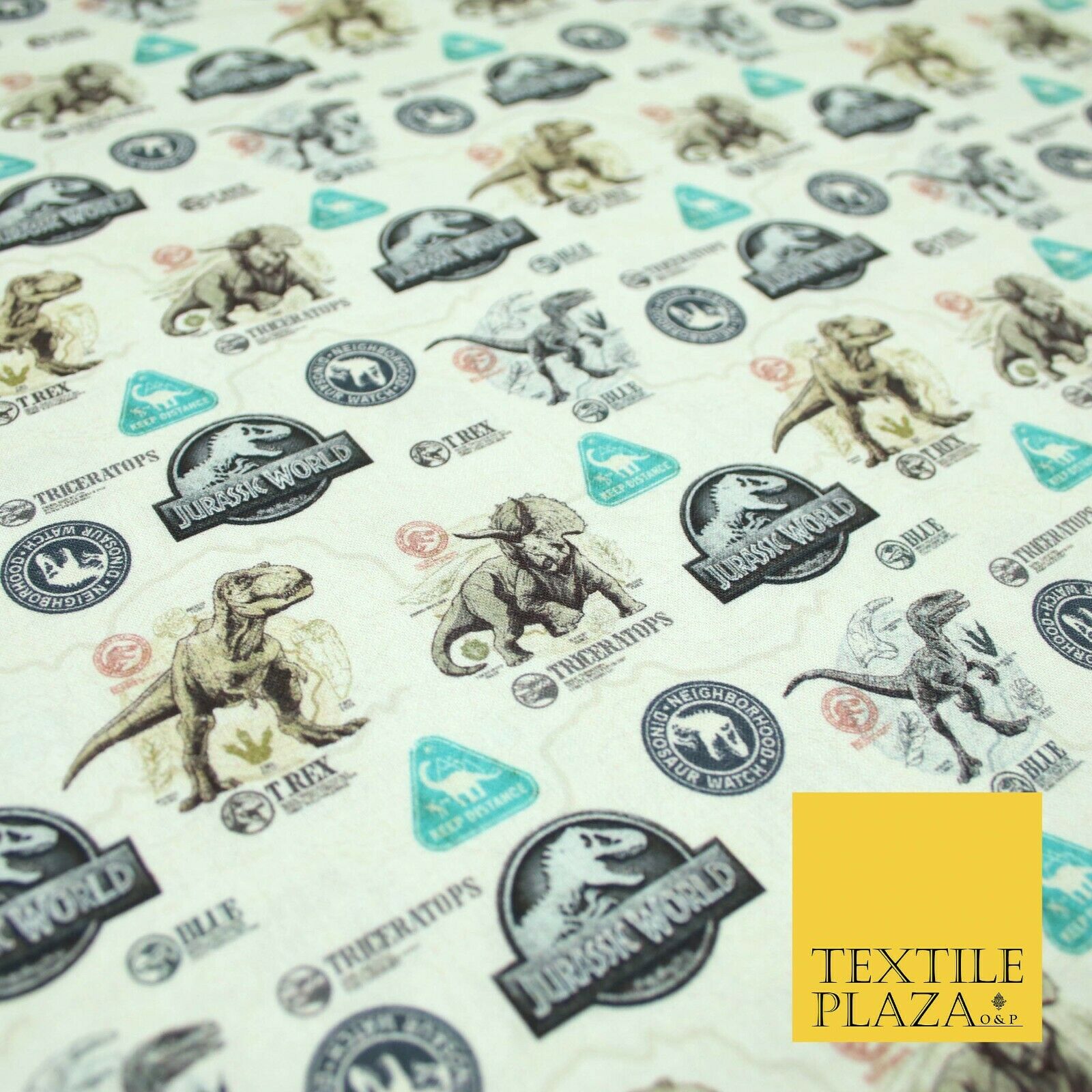 Beige JURASSIC WORLD Dinosaur Map Themed Digital Print 100% Cotton Fabric 5504