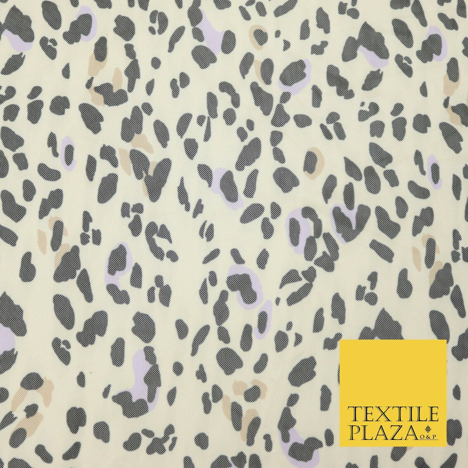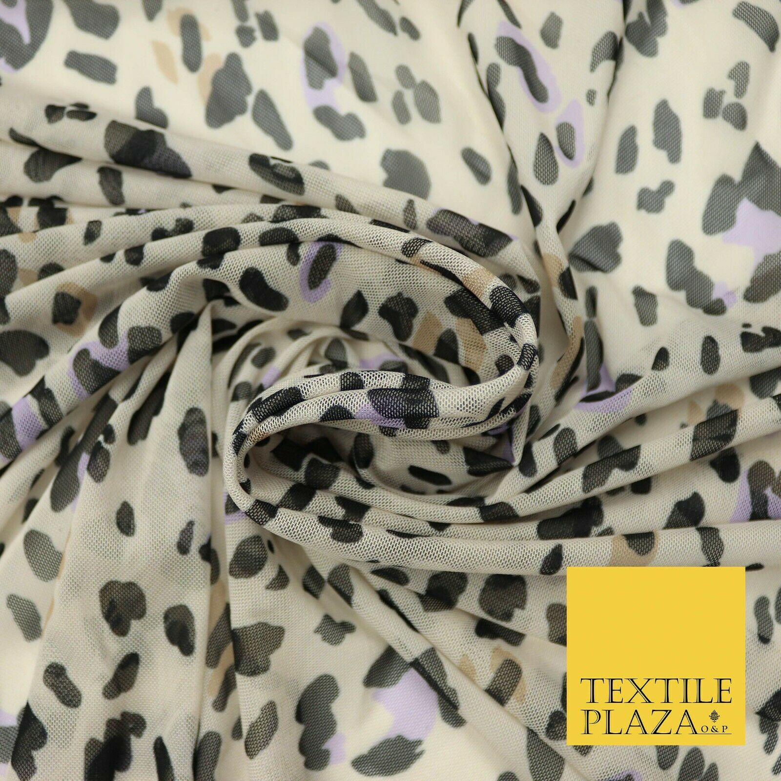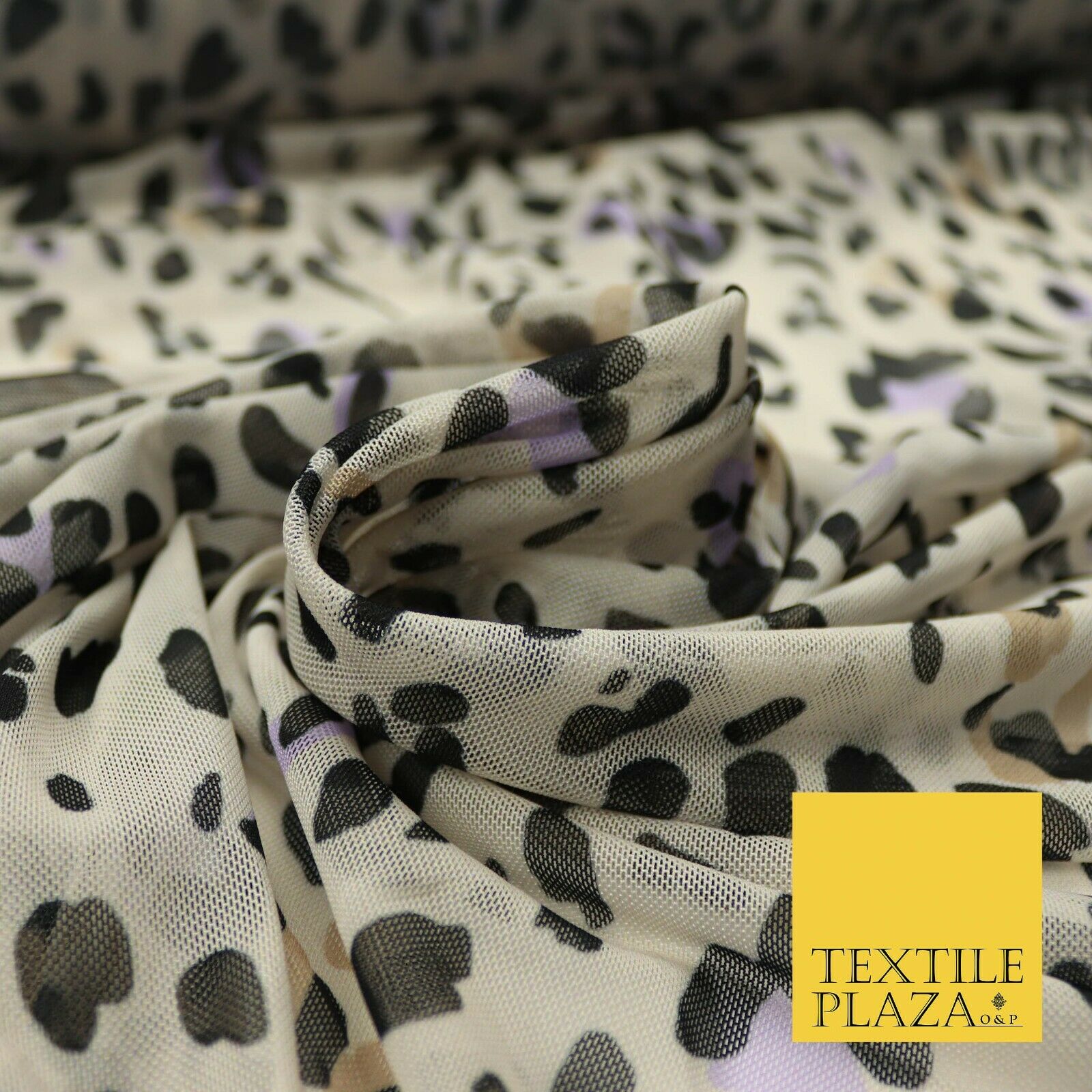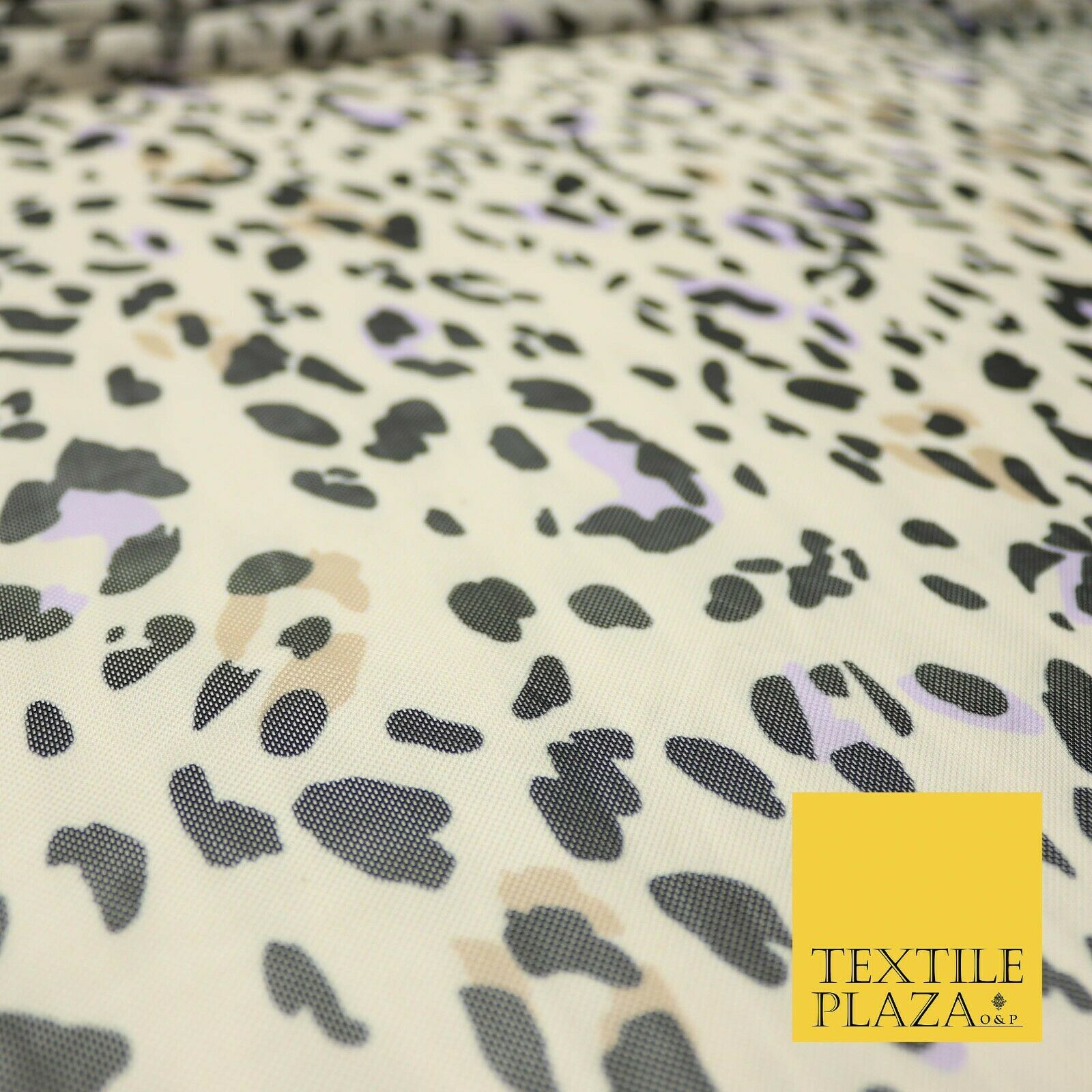 Beige Lilac Leopard Animal Print Printed Power Mesh Net Stretch Fabric 58" 4318