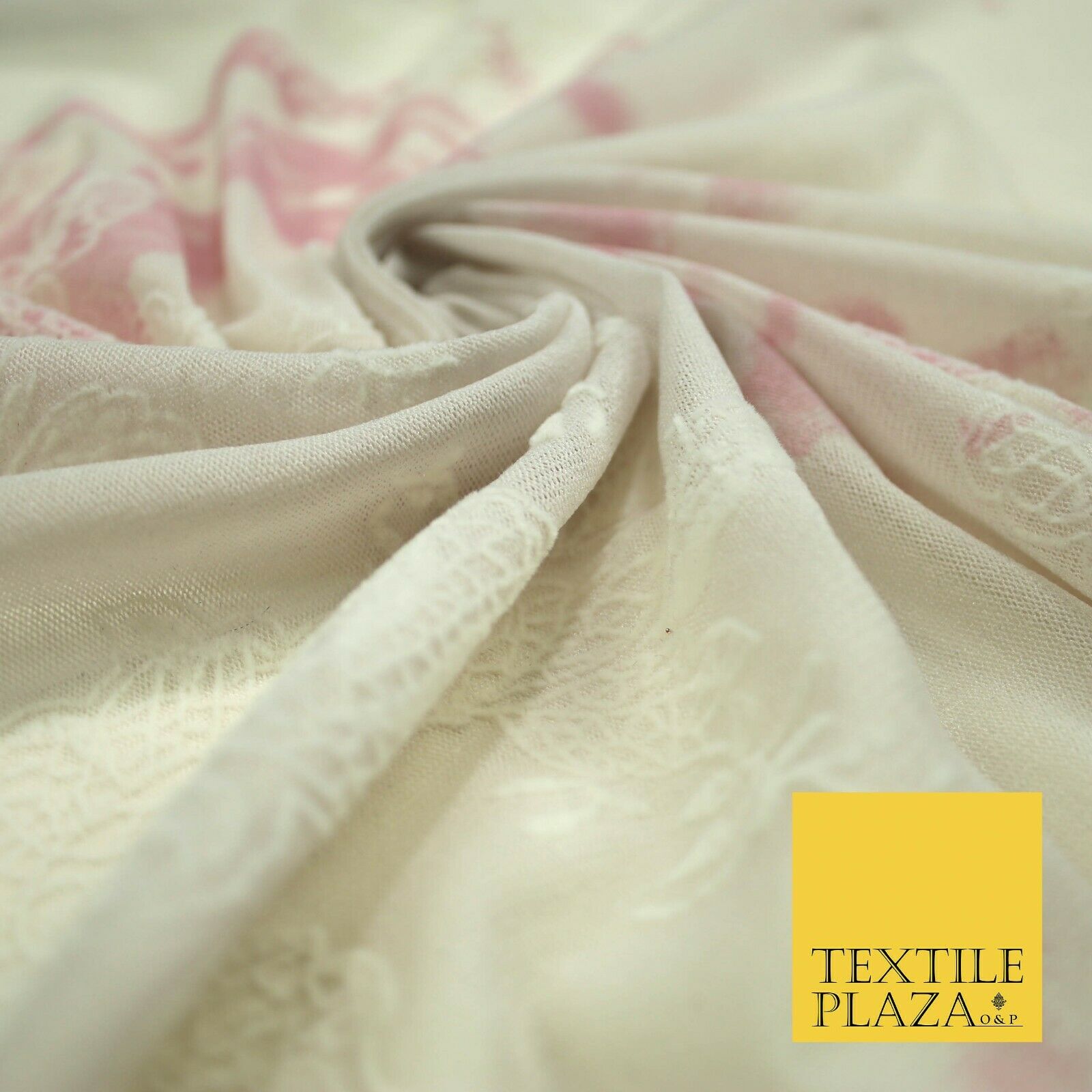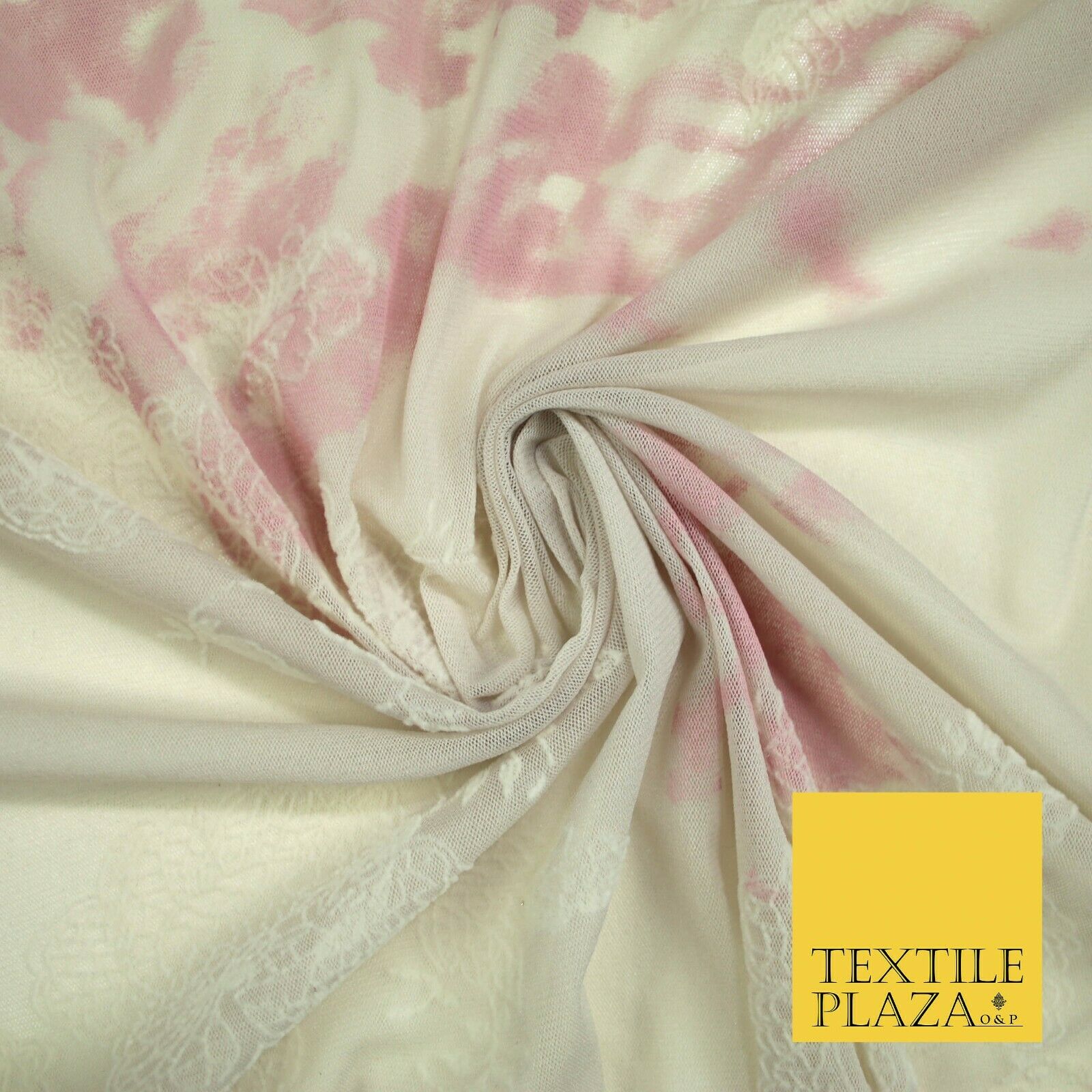 Beige Pink Tie Dye Flocked Floral Knit Power Mesh Net Stretch Dress Fabric 5313