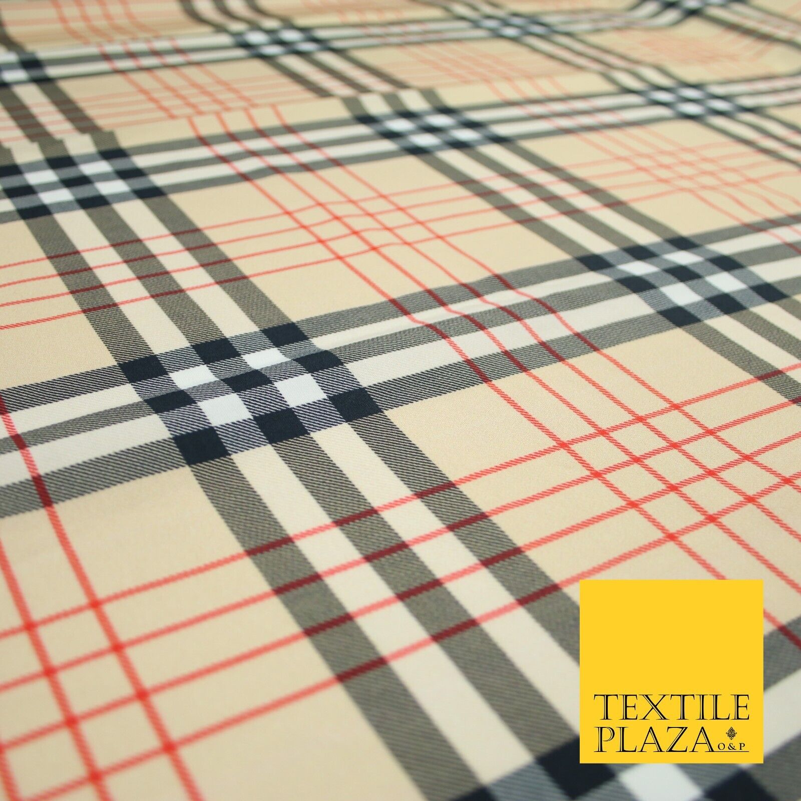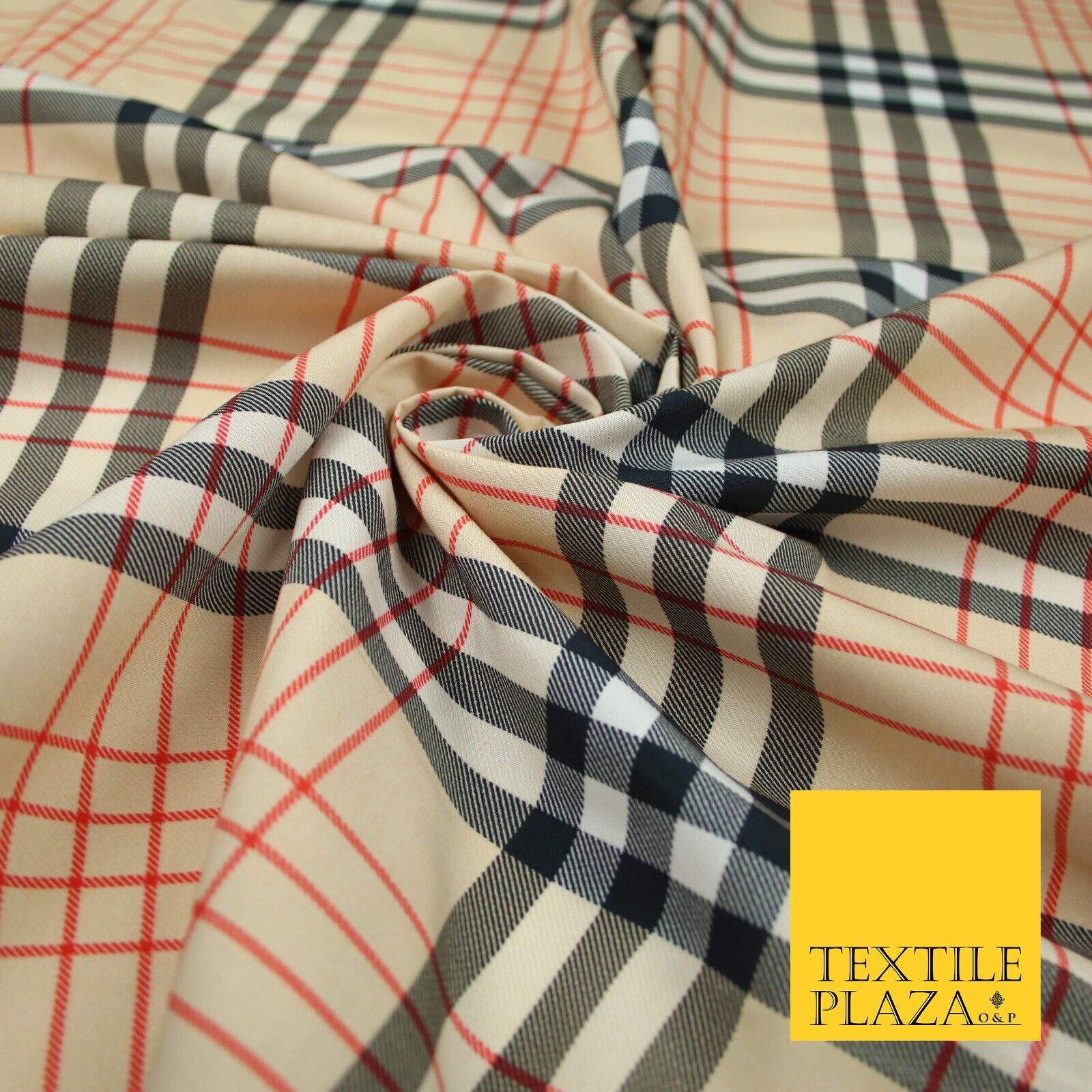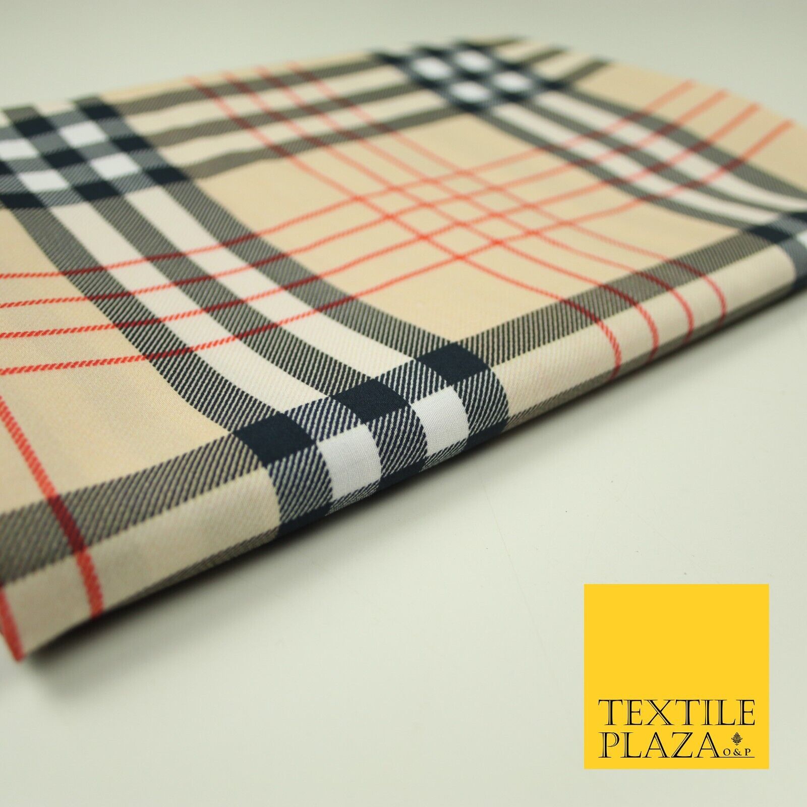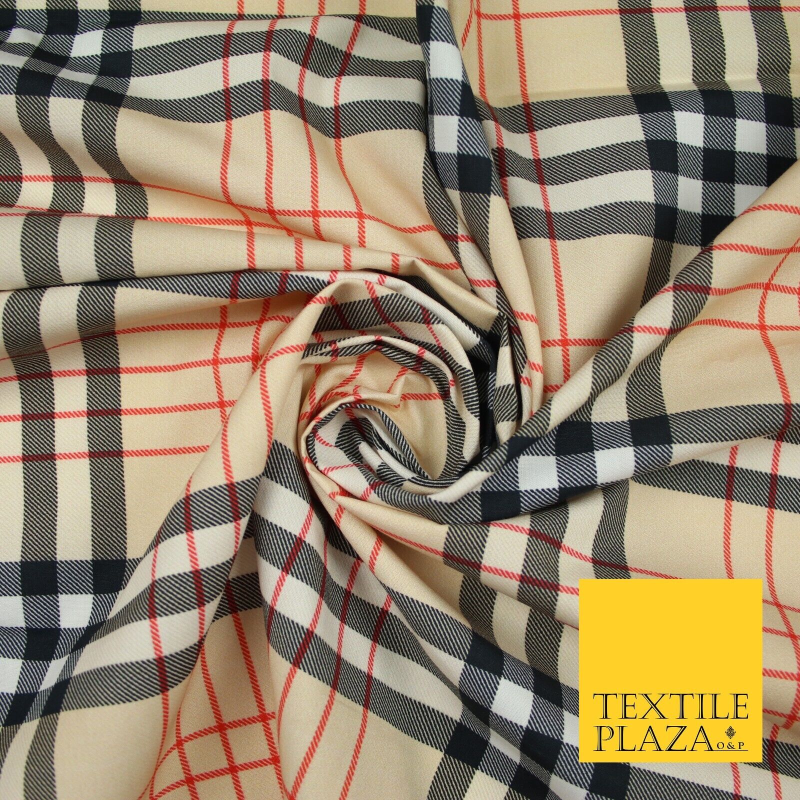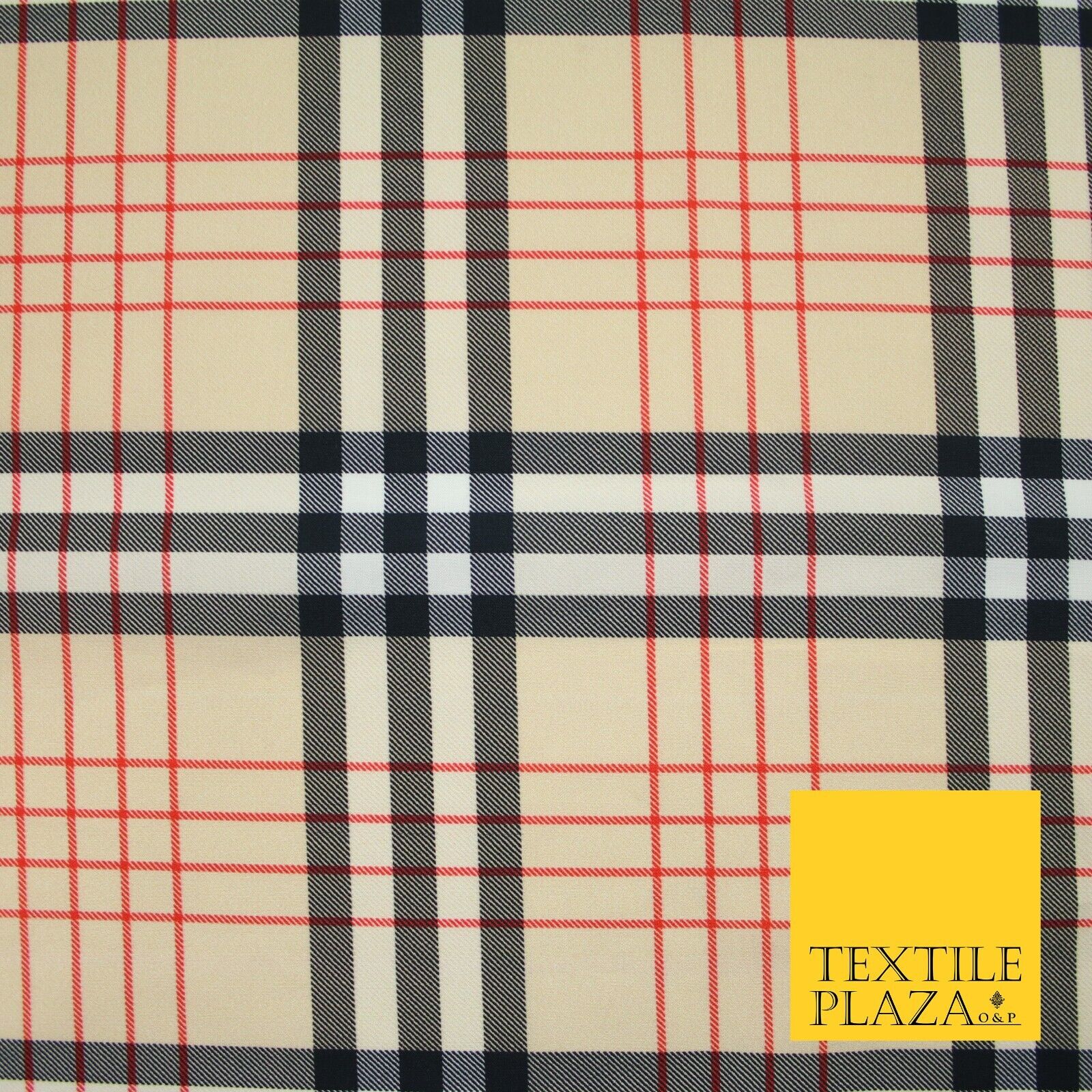 Beige Red Black Classic Tartan Check Designer Printed 100% Cotton Fabric 7340