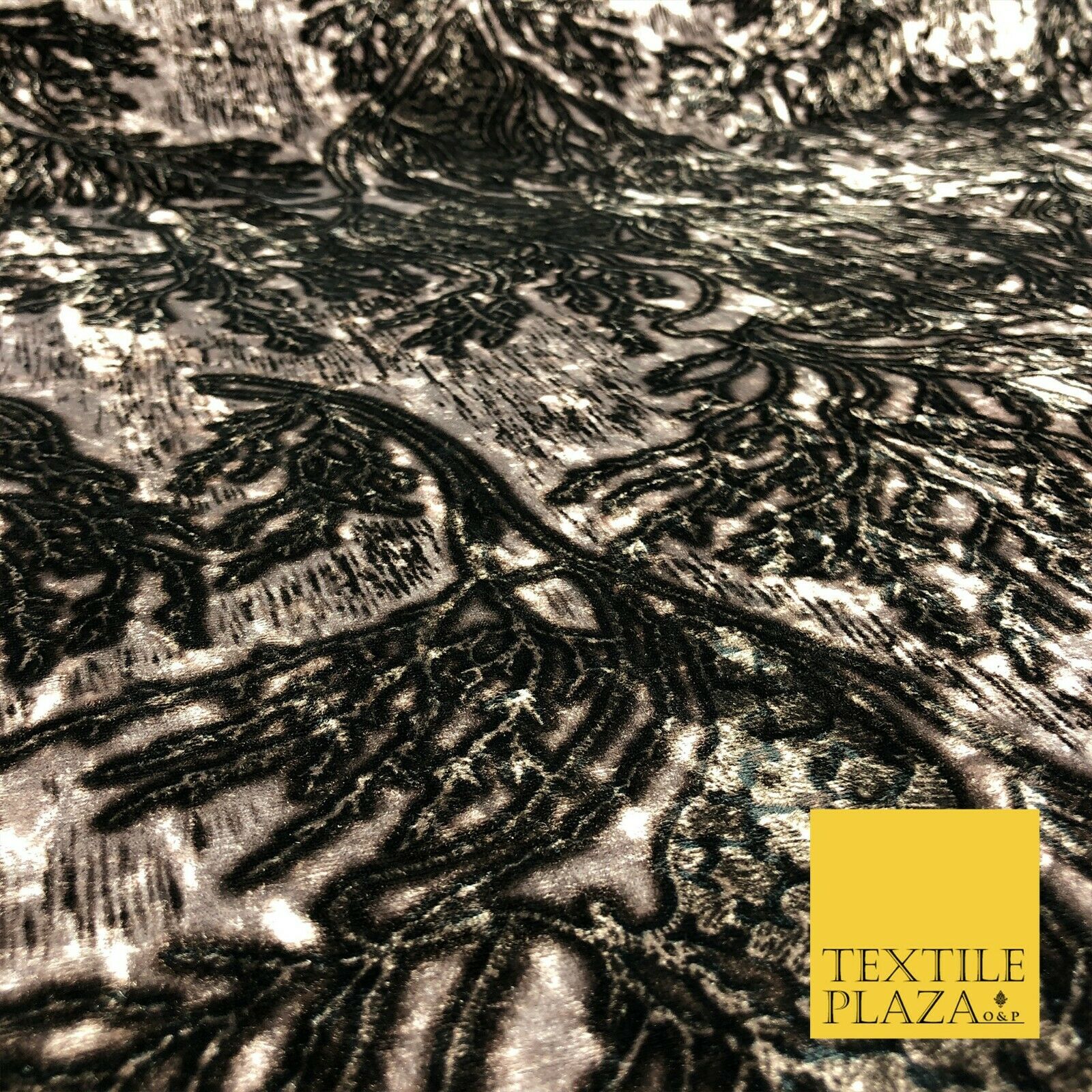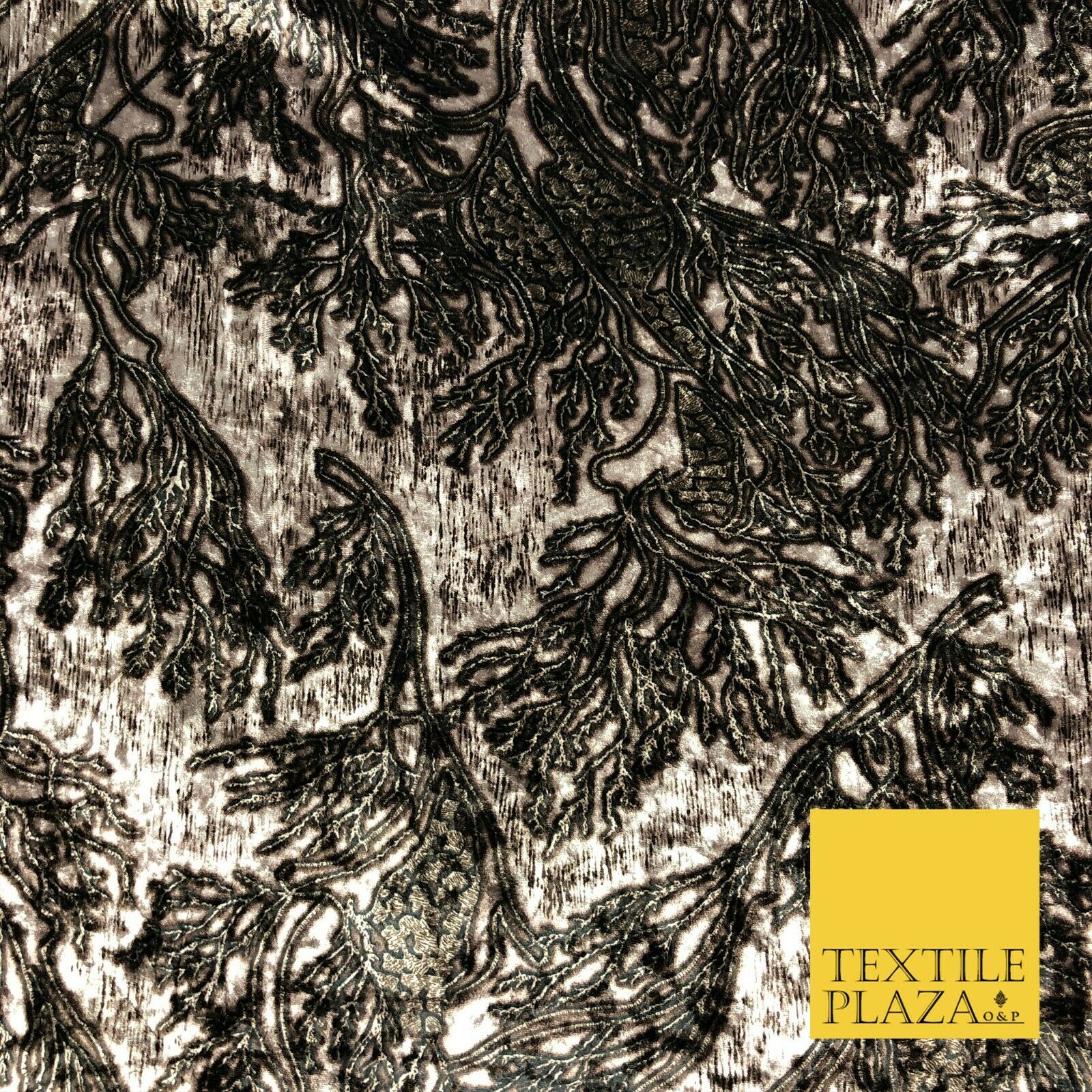 Beige Stone Abstract Branch Leaves Printed Soft Velvet Dress Fabric Craft Q1308