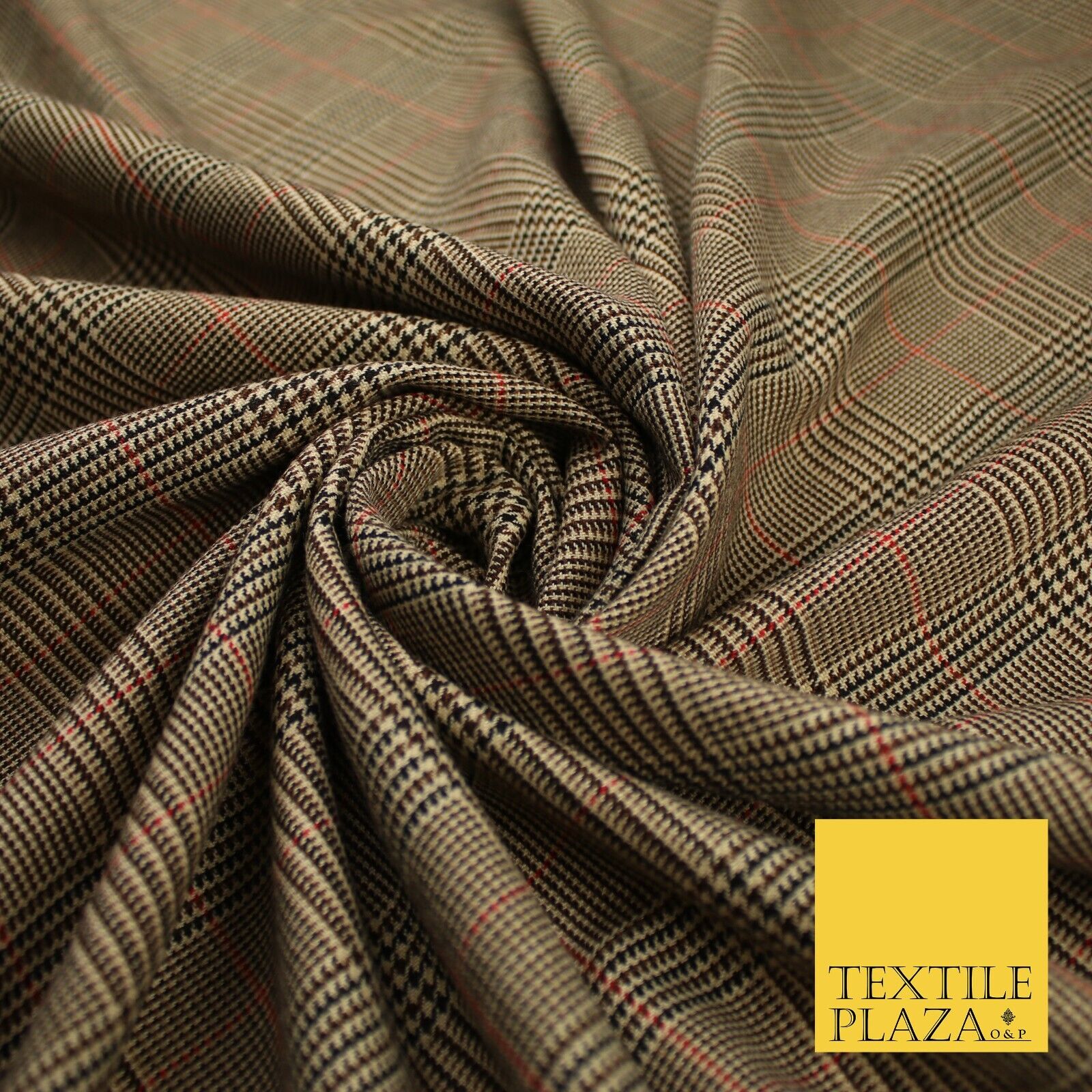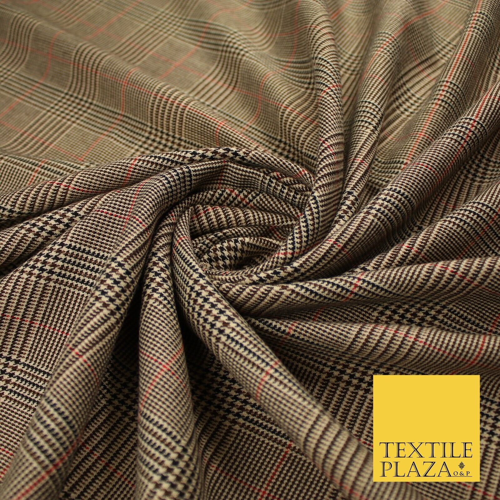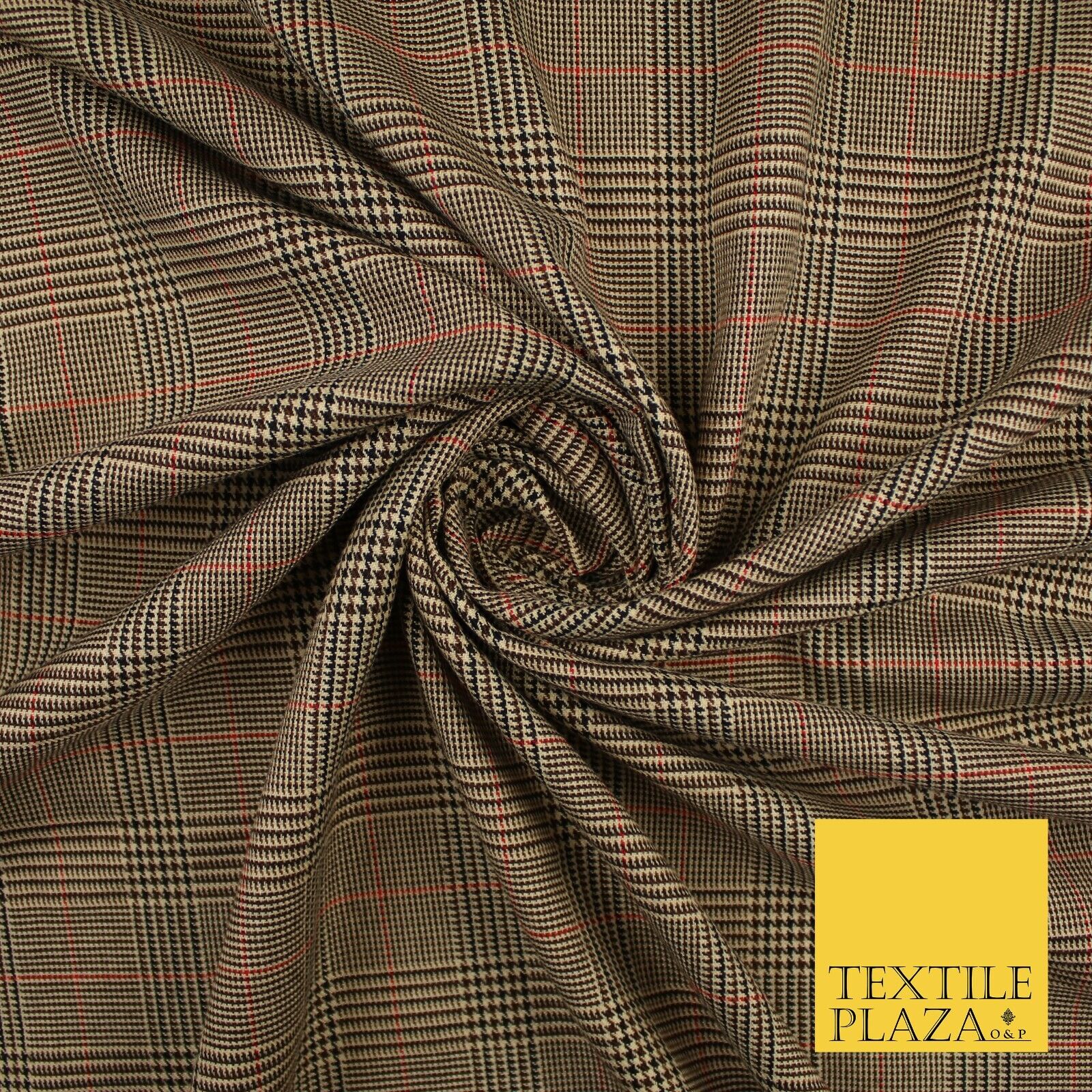 Beige with Black & Red Tartan Check Dogtooth Scottish Polyviscose Fabric 10188