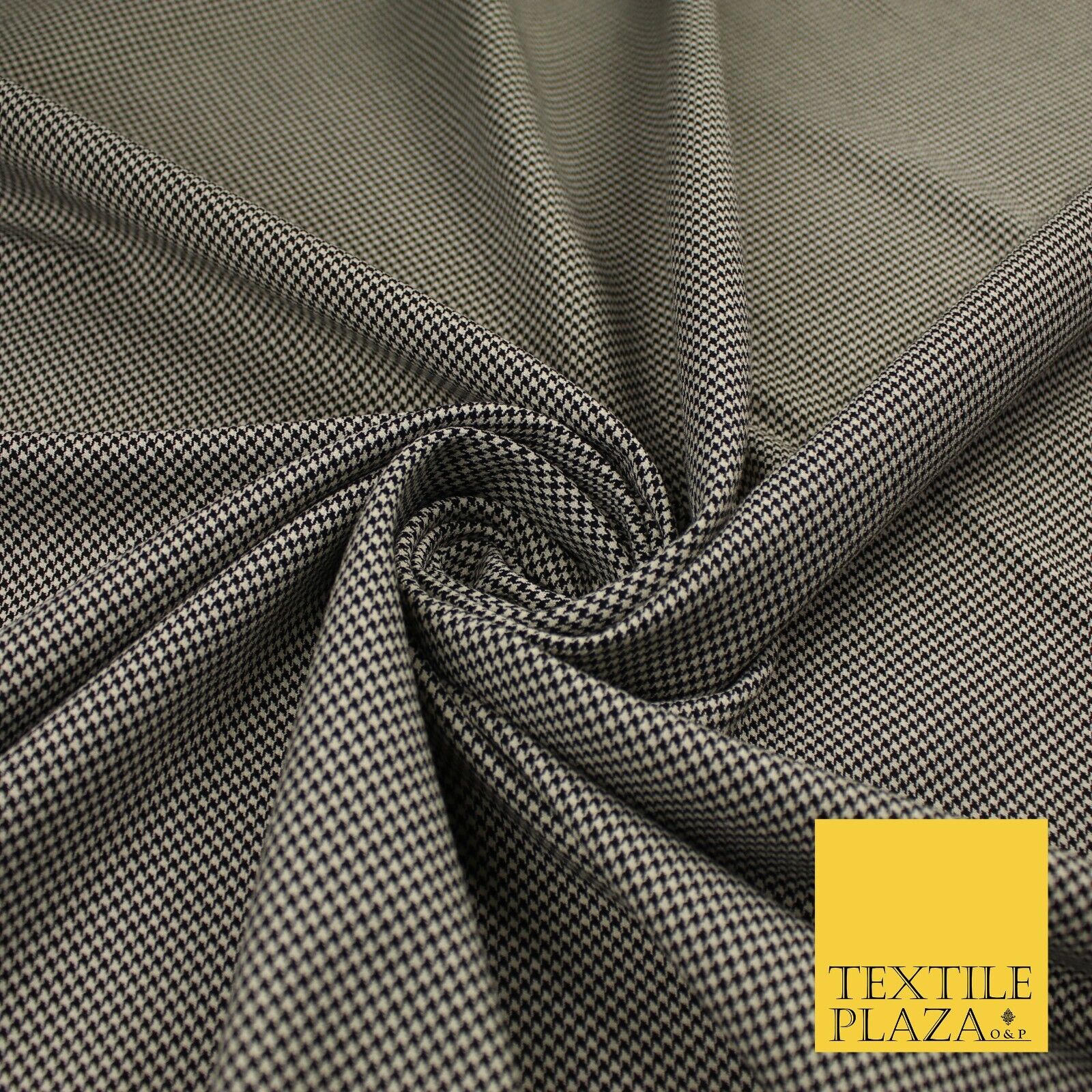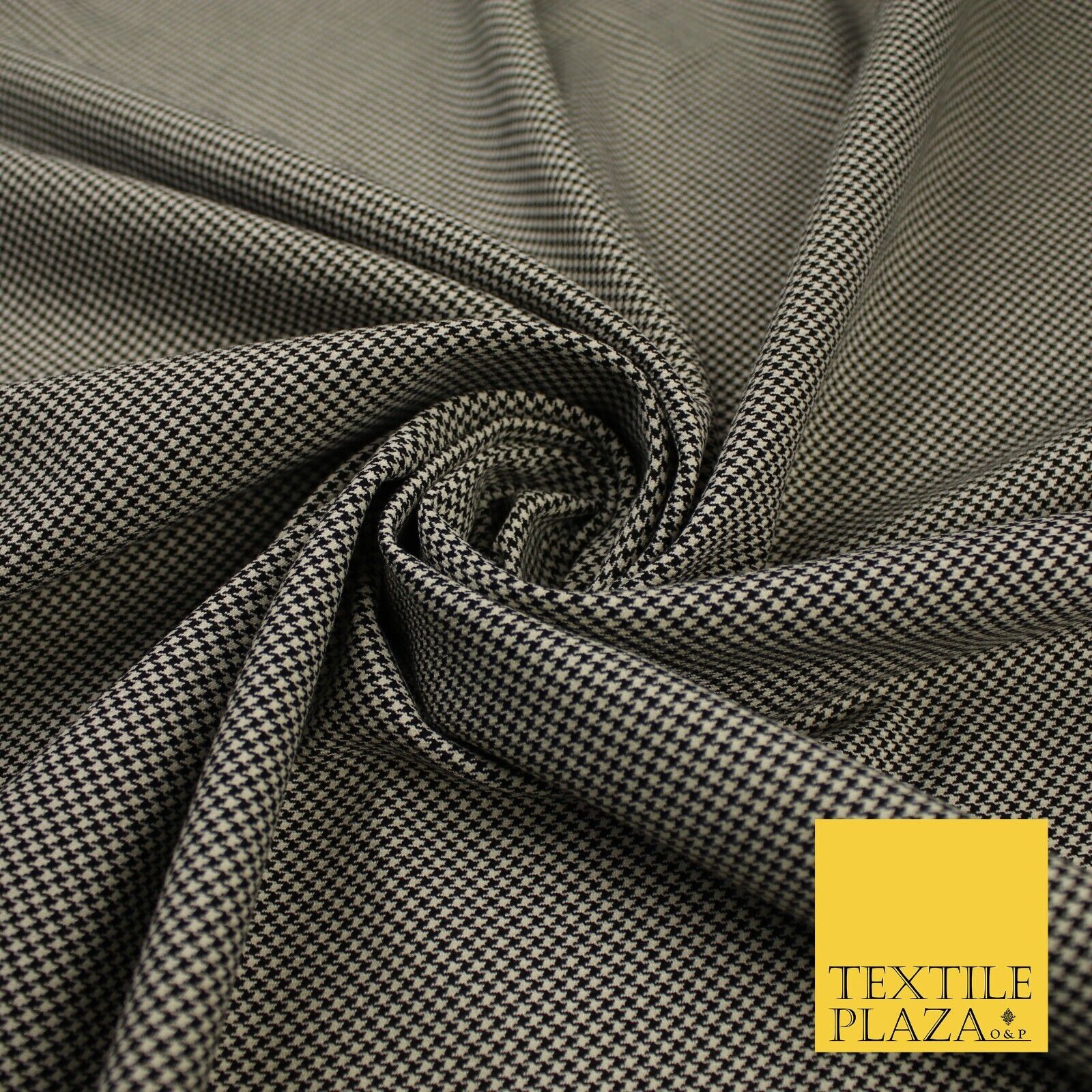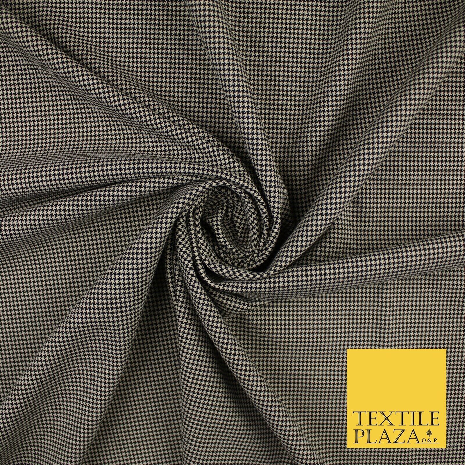 Beige with Black Tartan Check Dogtooth Plaid Polyviscose Fabric 56" 10022