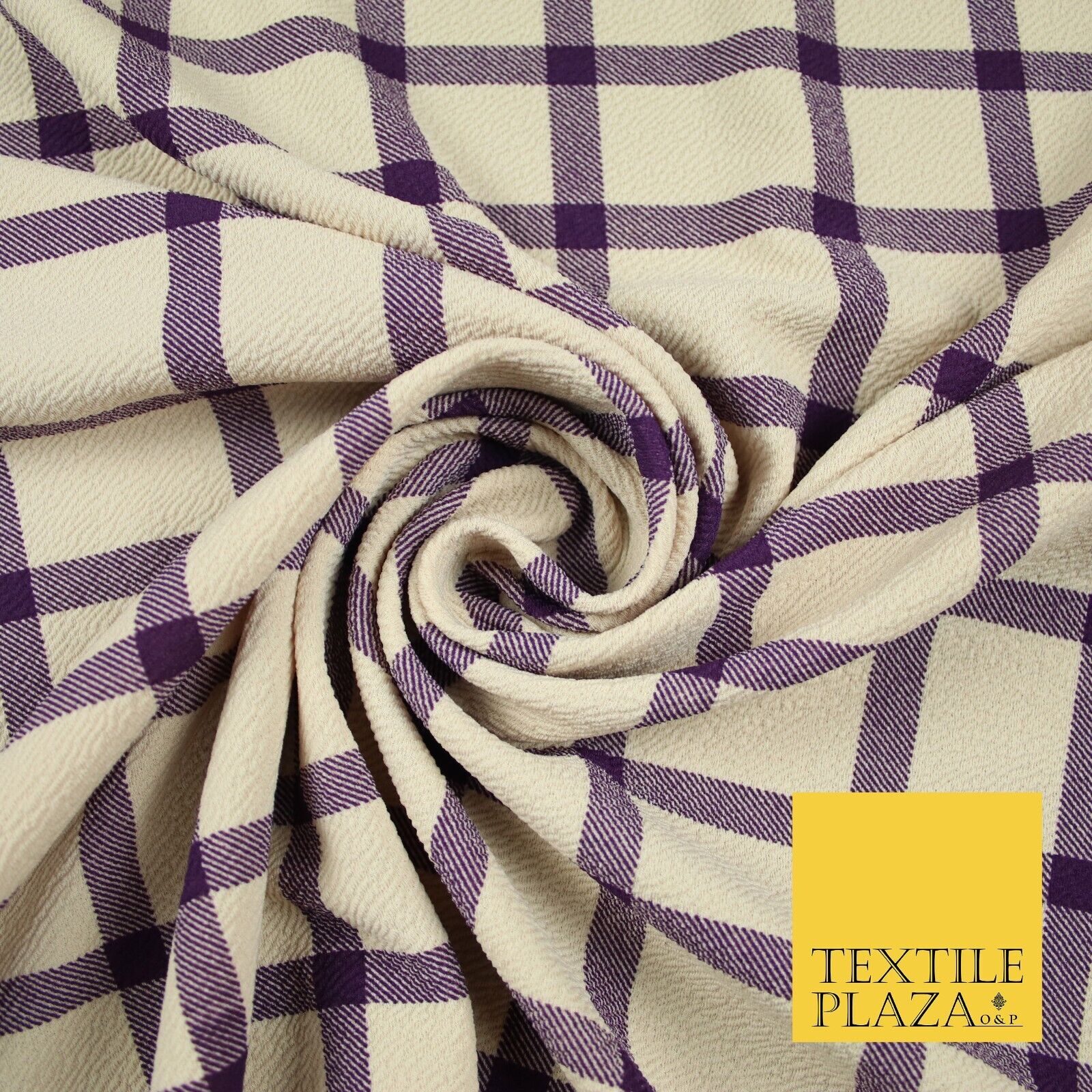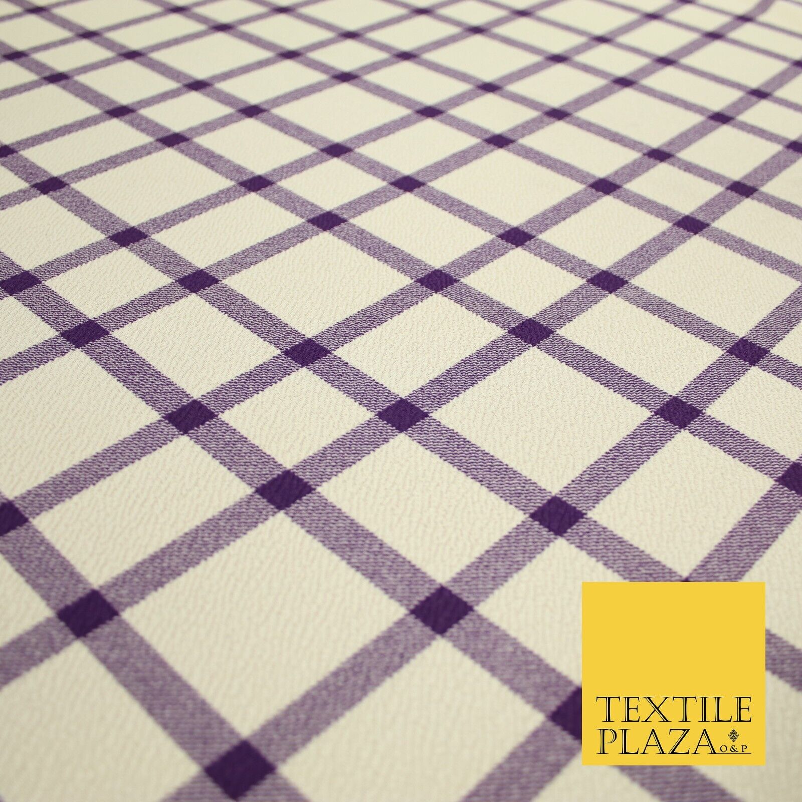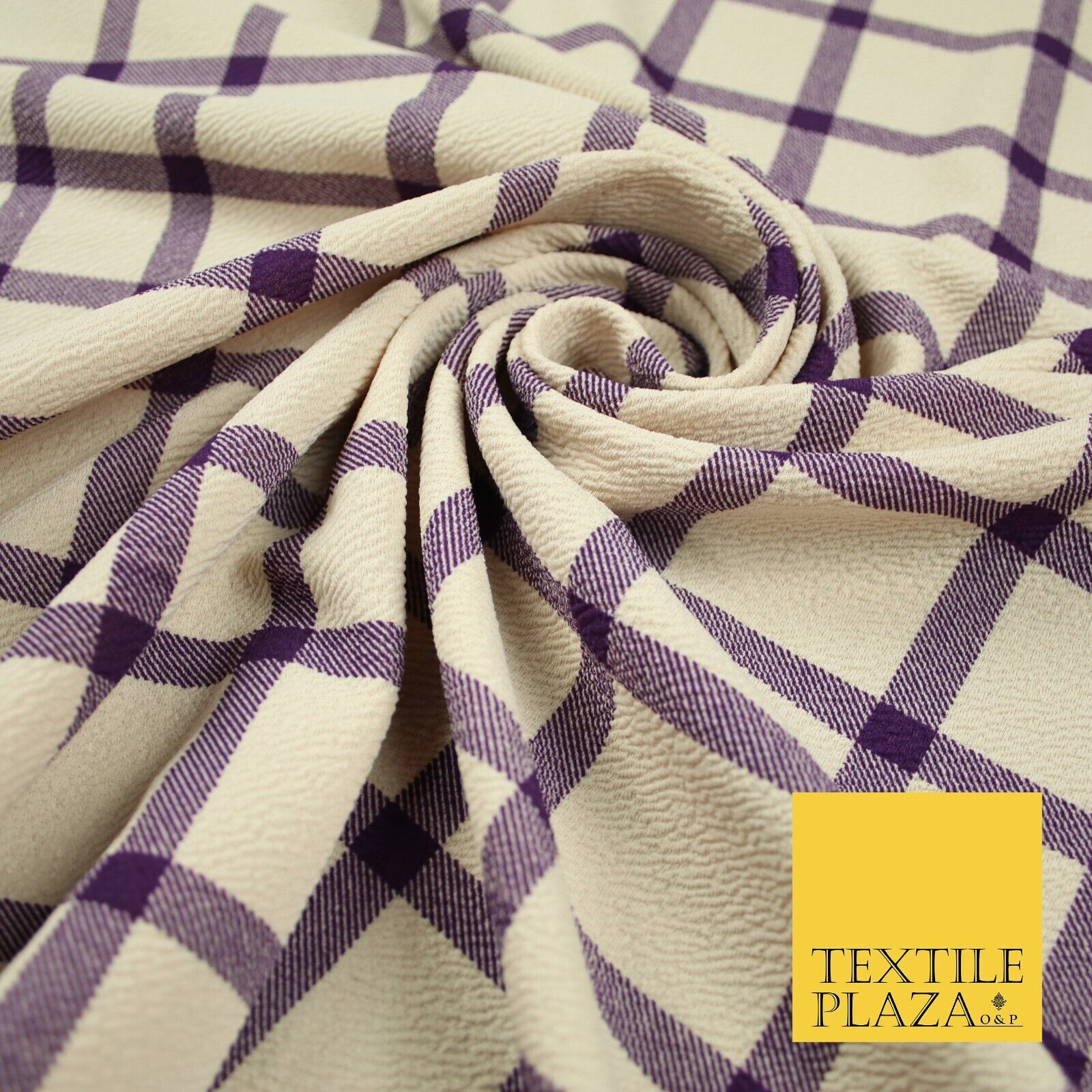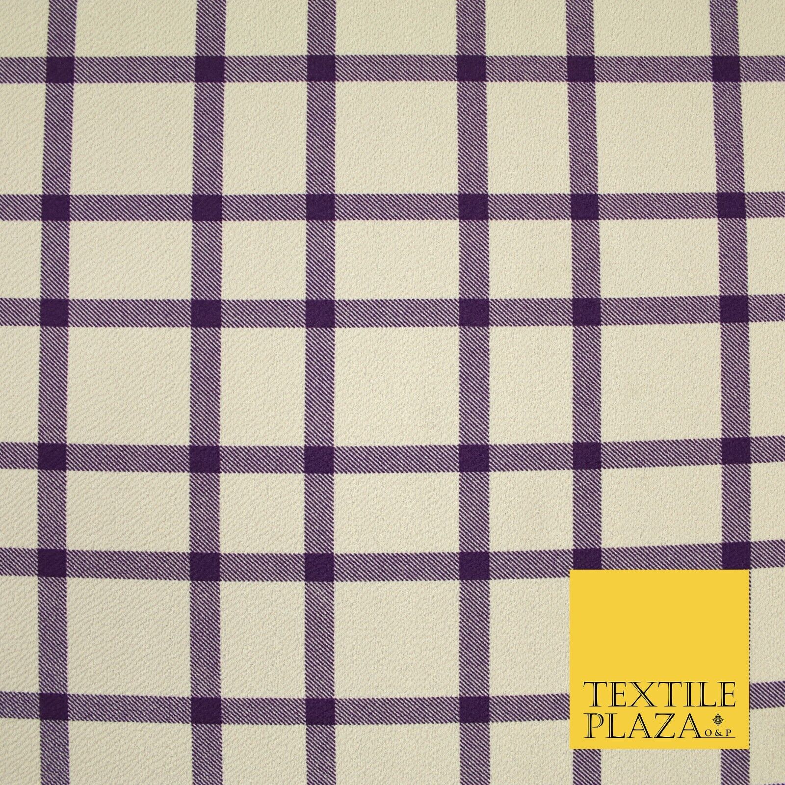 Beige with Purple Check Print Soft Touch Stretch Jersey Fabric 56" 6602