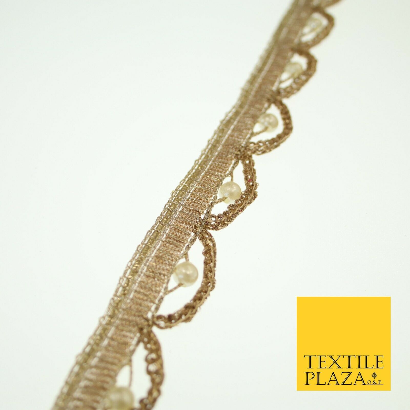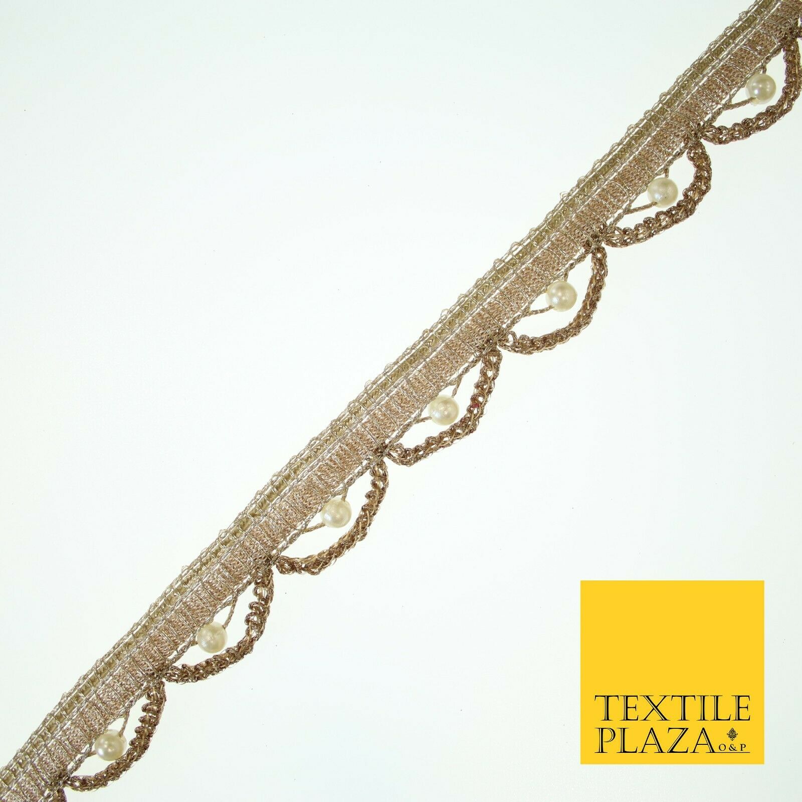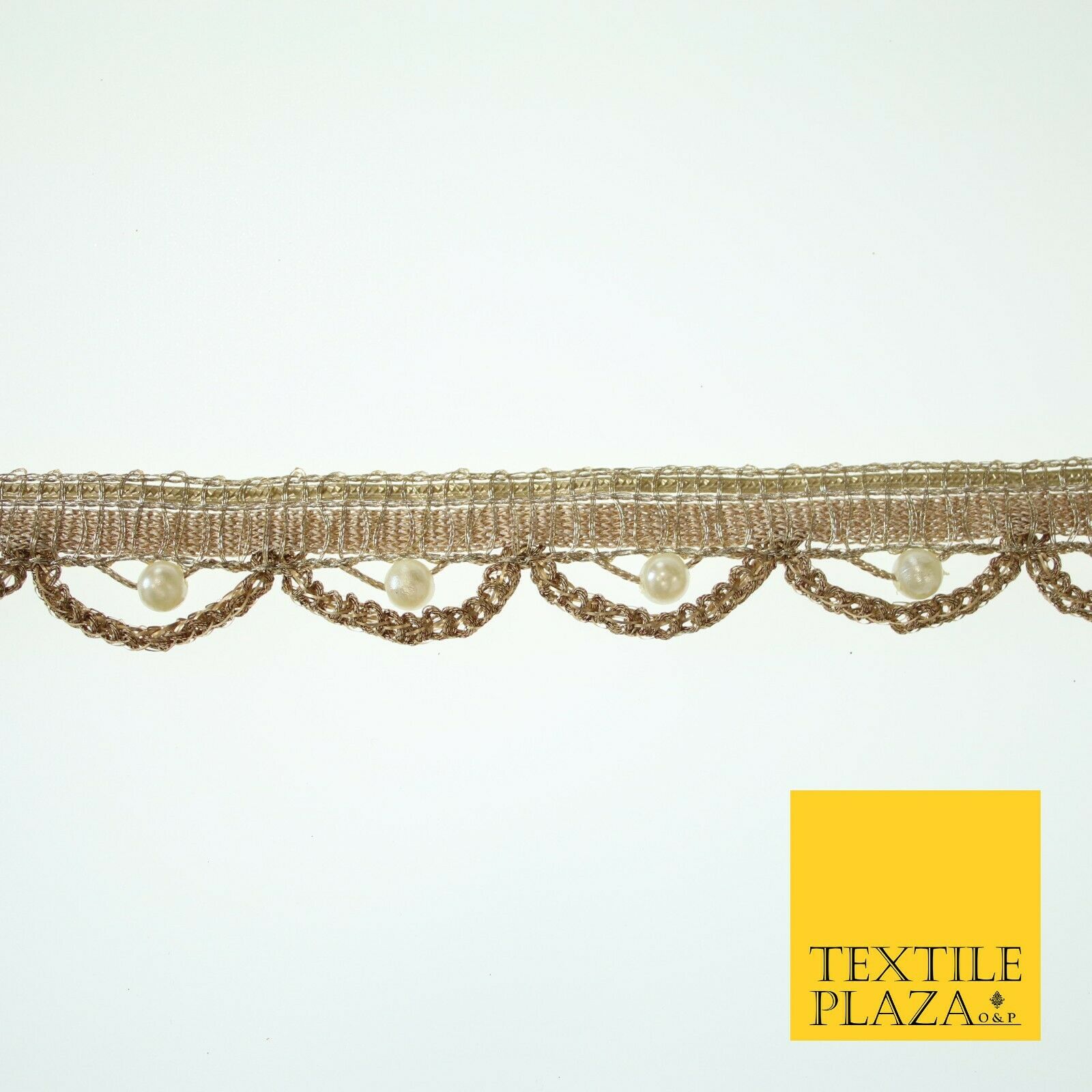 Biscuit Gold Pearl Rope Swag Scalloped Trim Border Ribbon Lace 2cm Wide X573