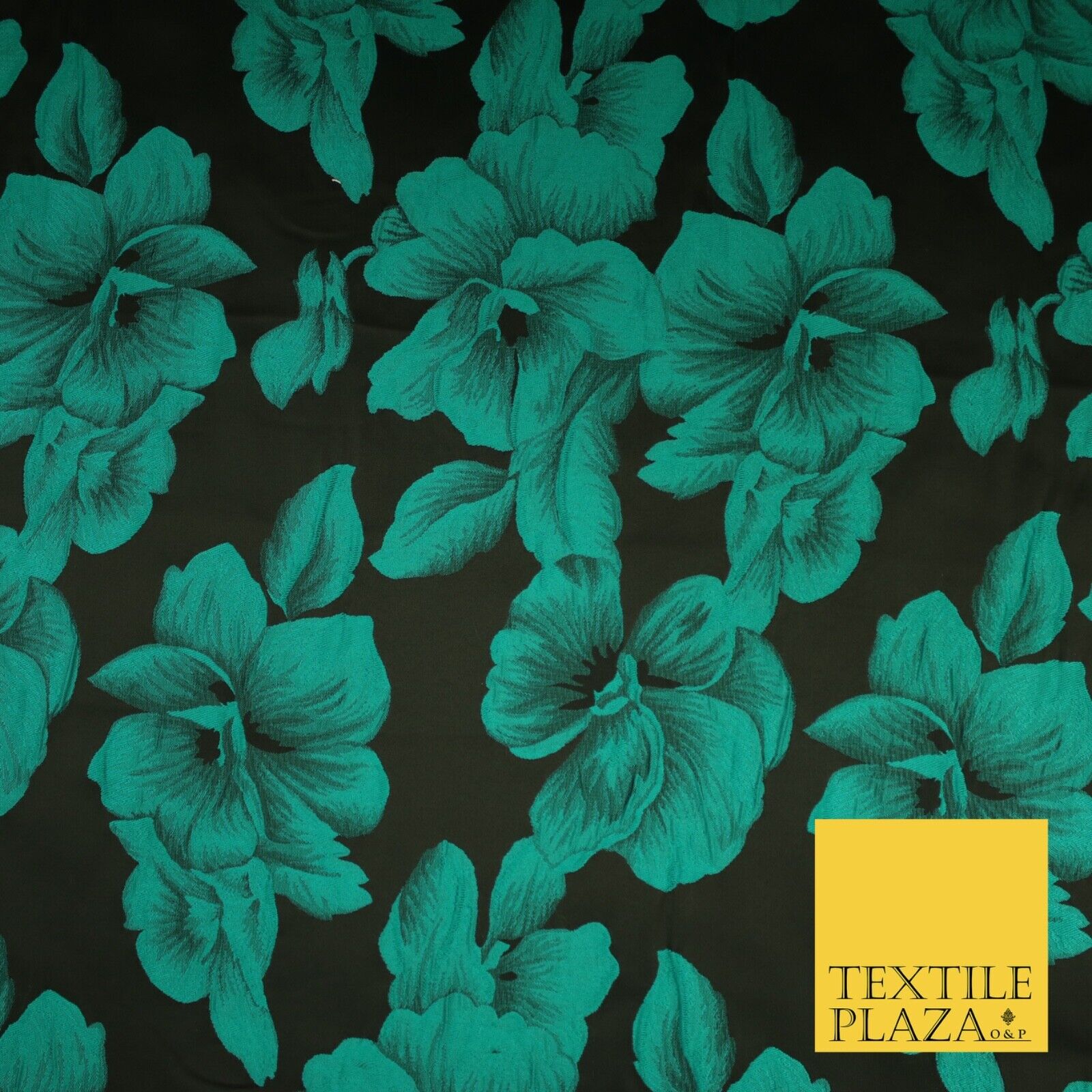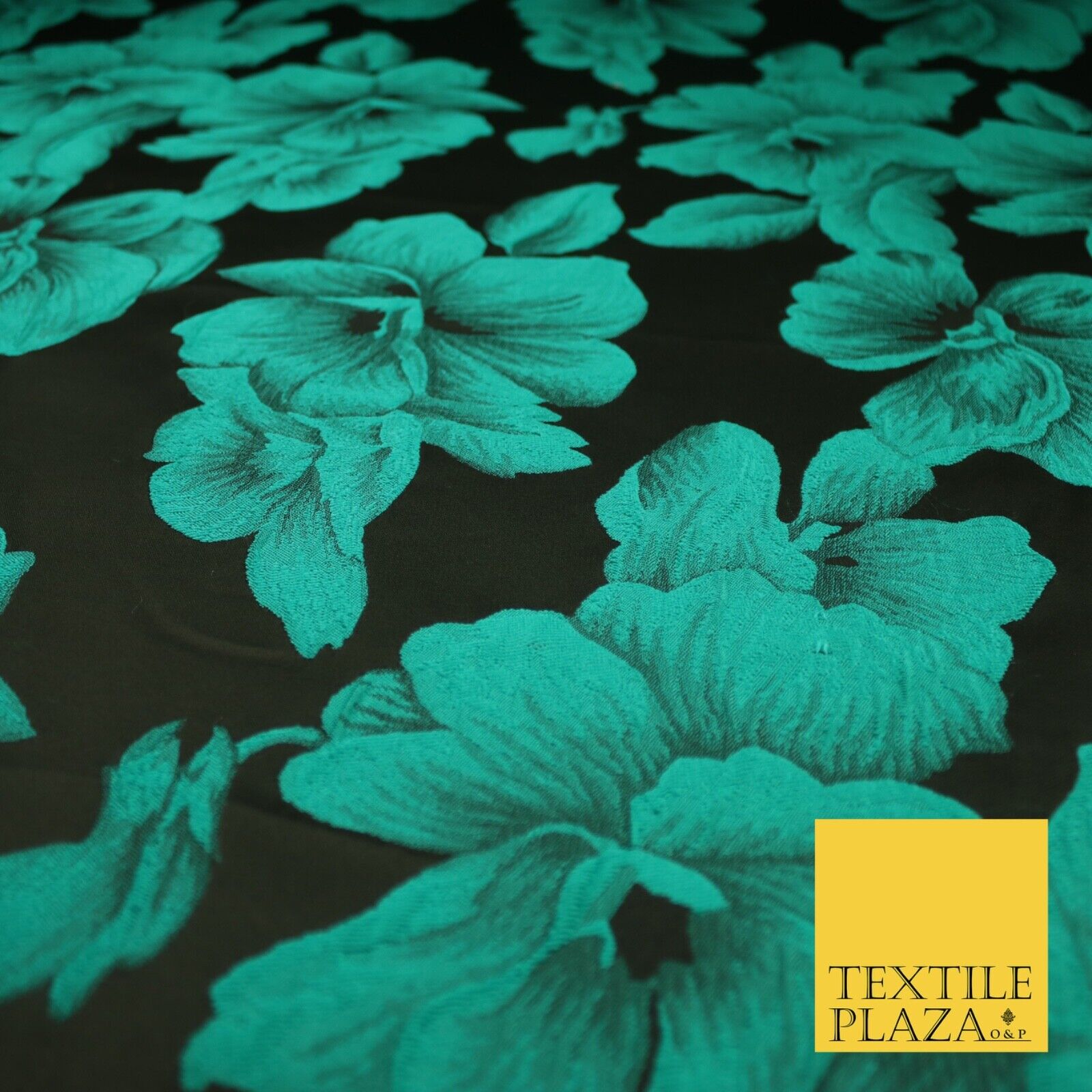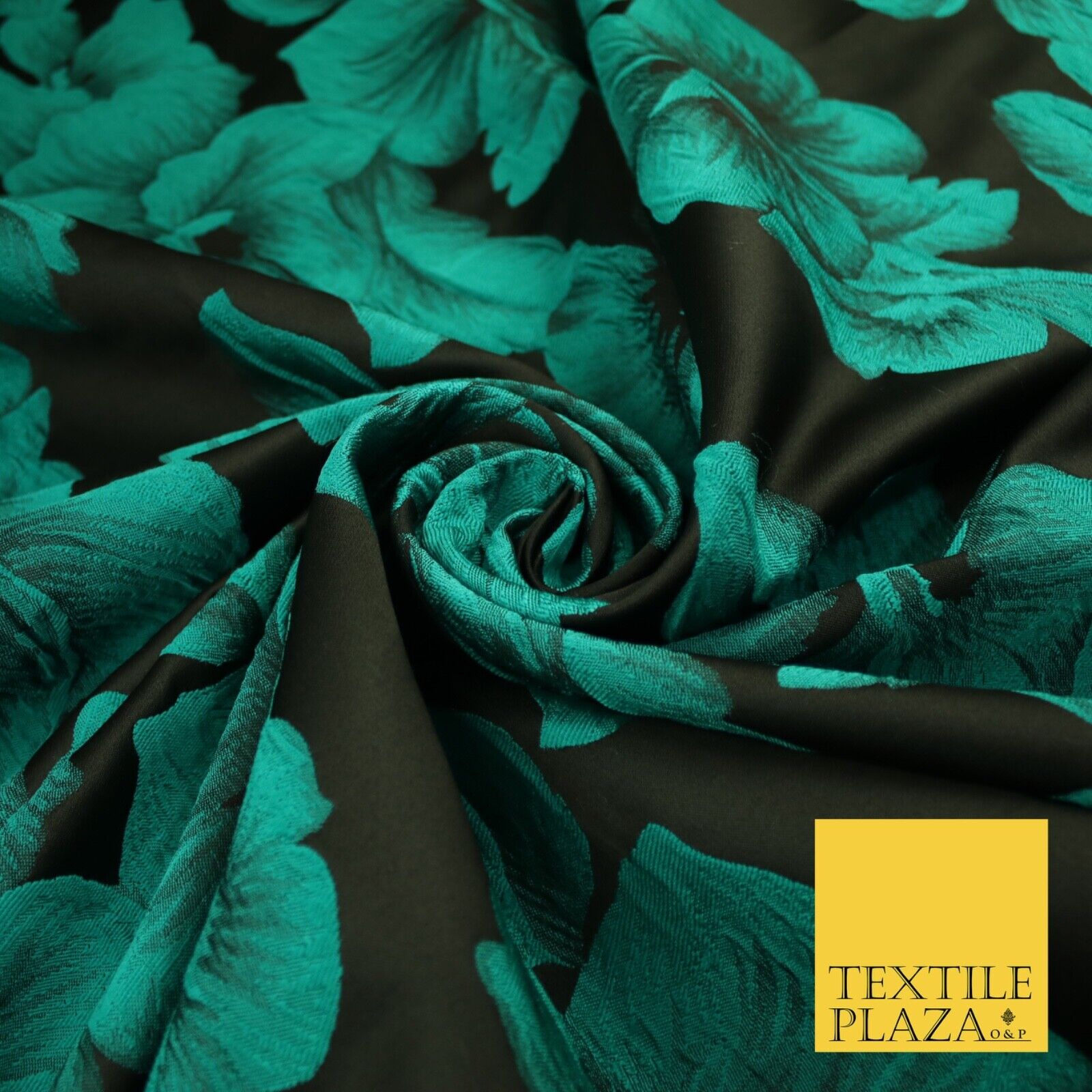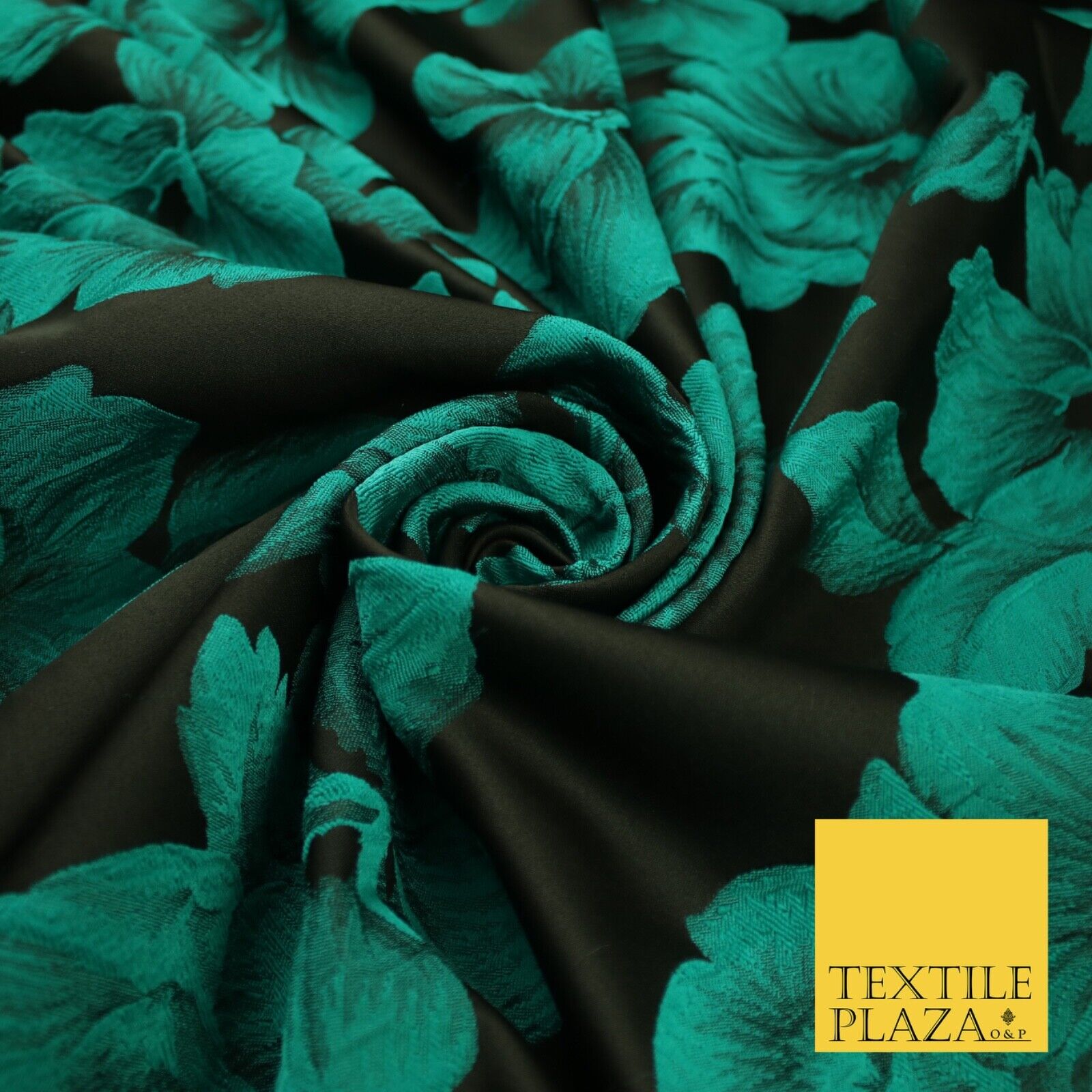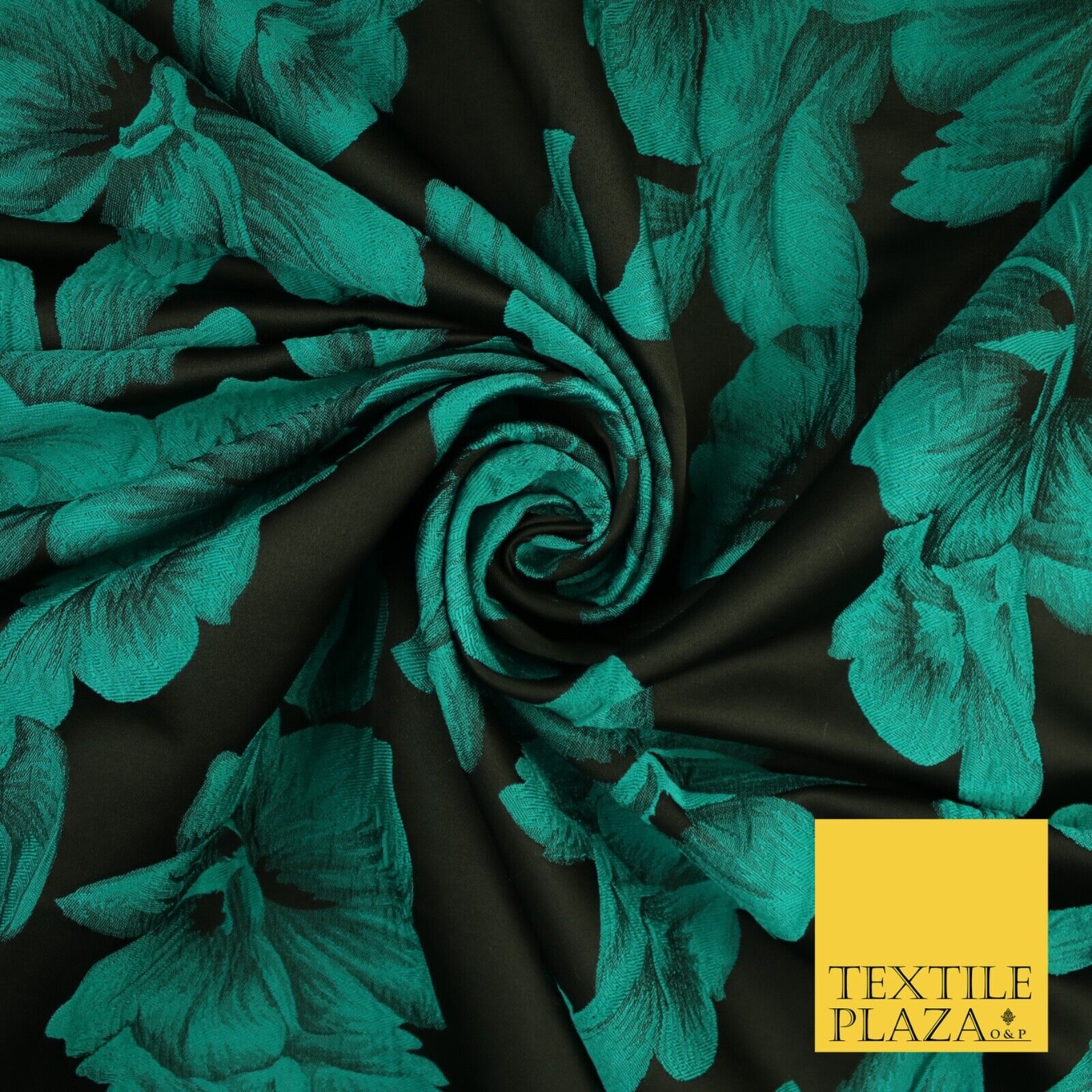 Black and Jade Floral Bunches Bloom Metallic Textured Brocade Dress Fabric 9961