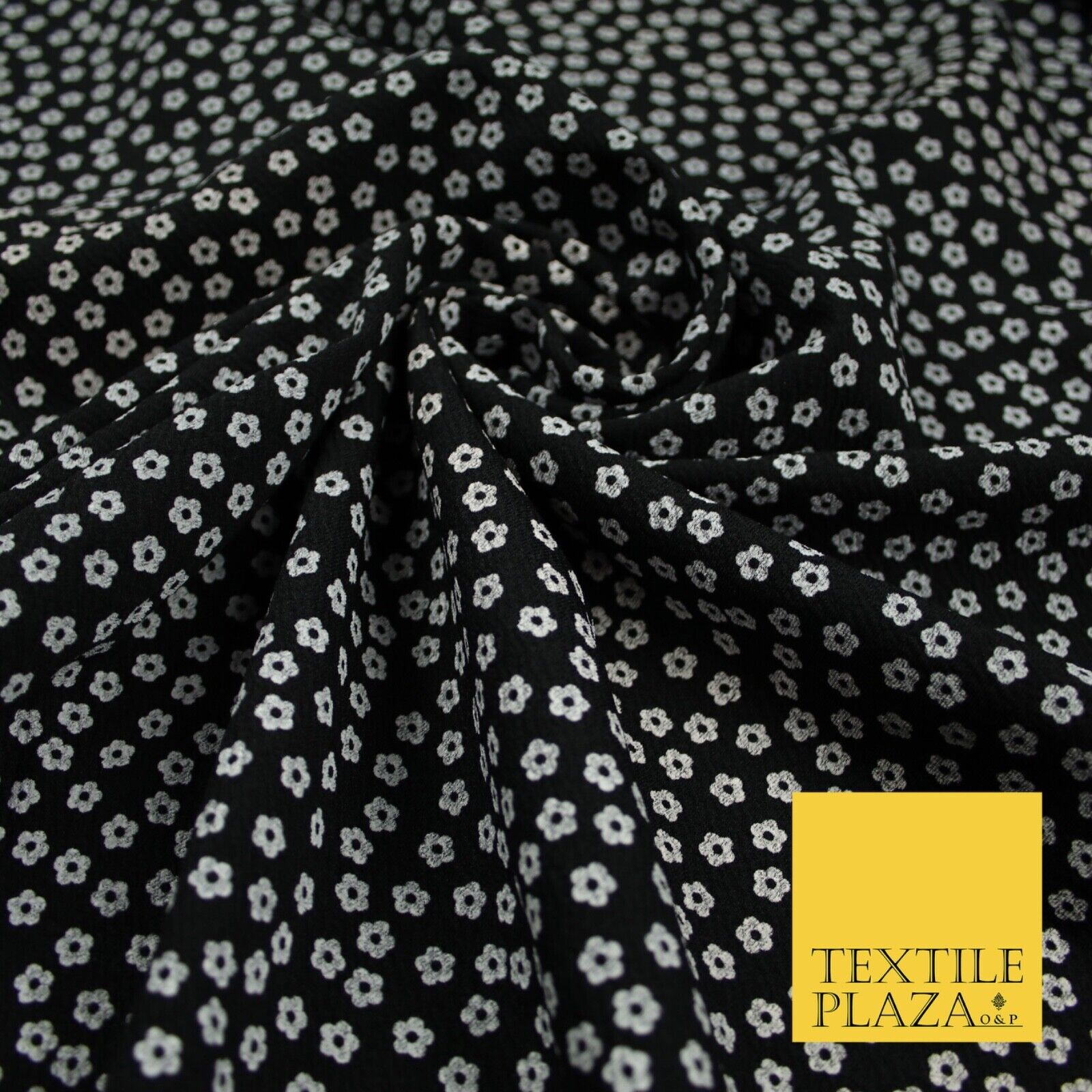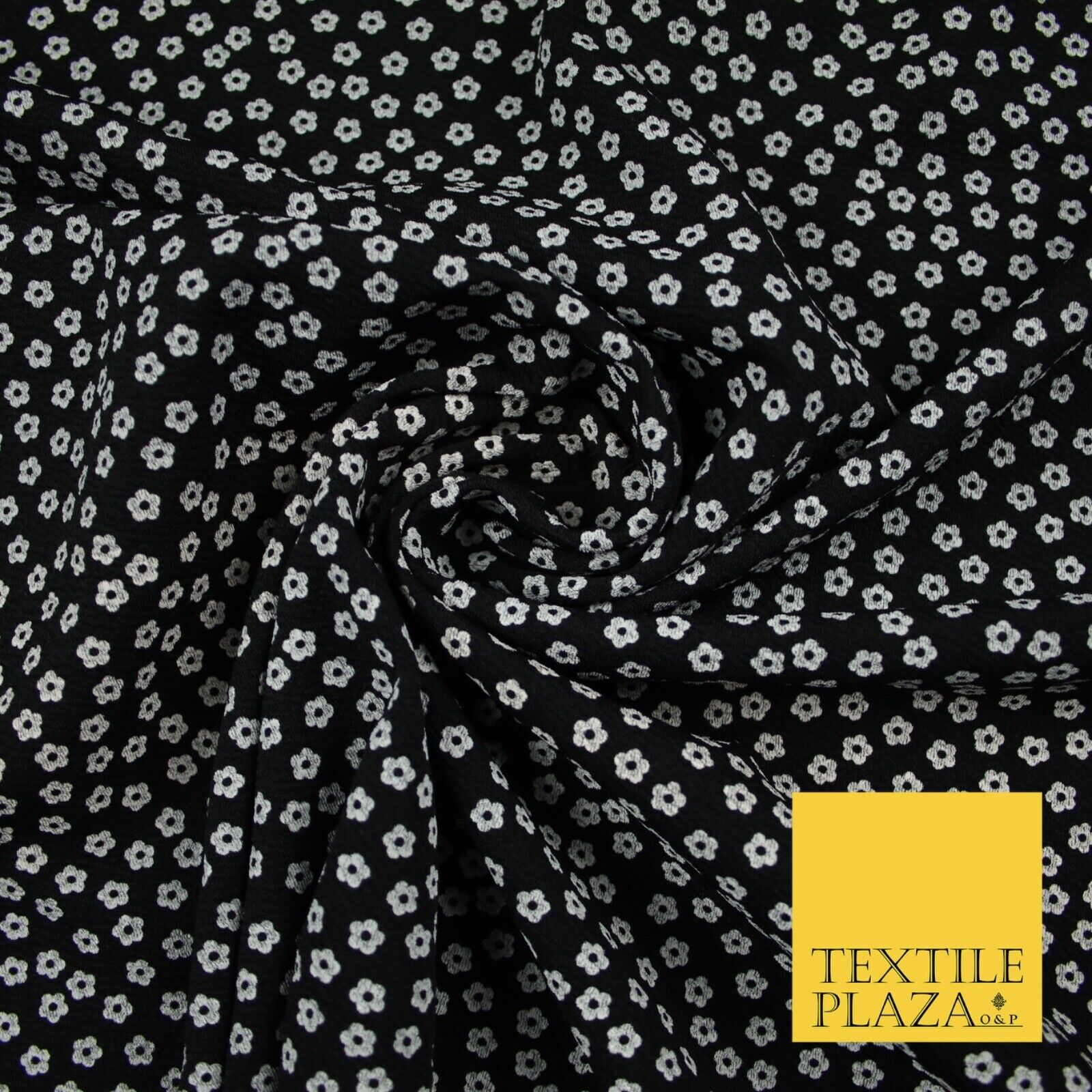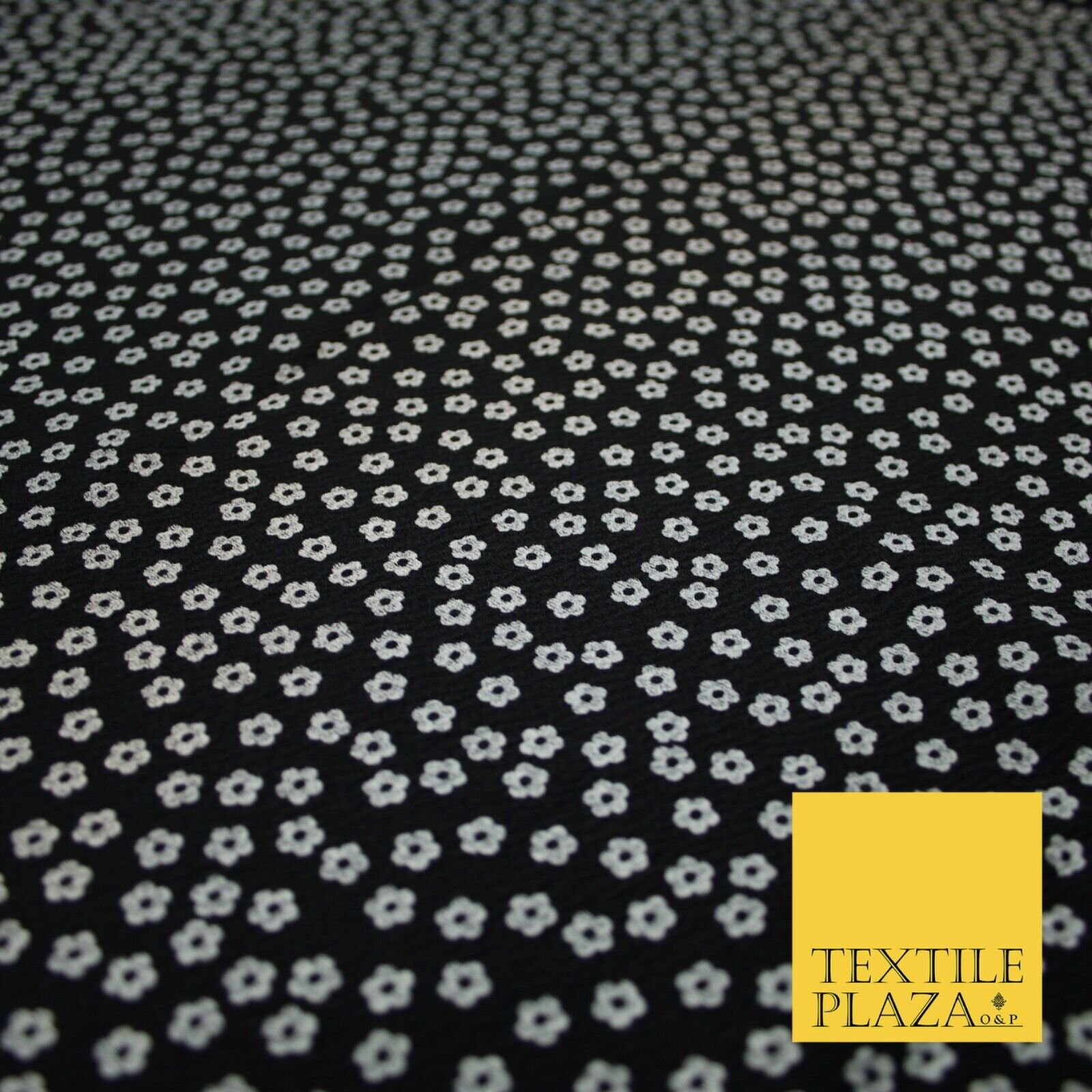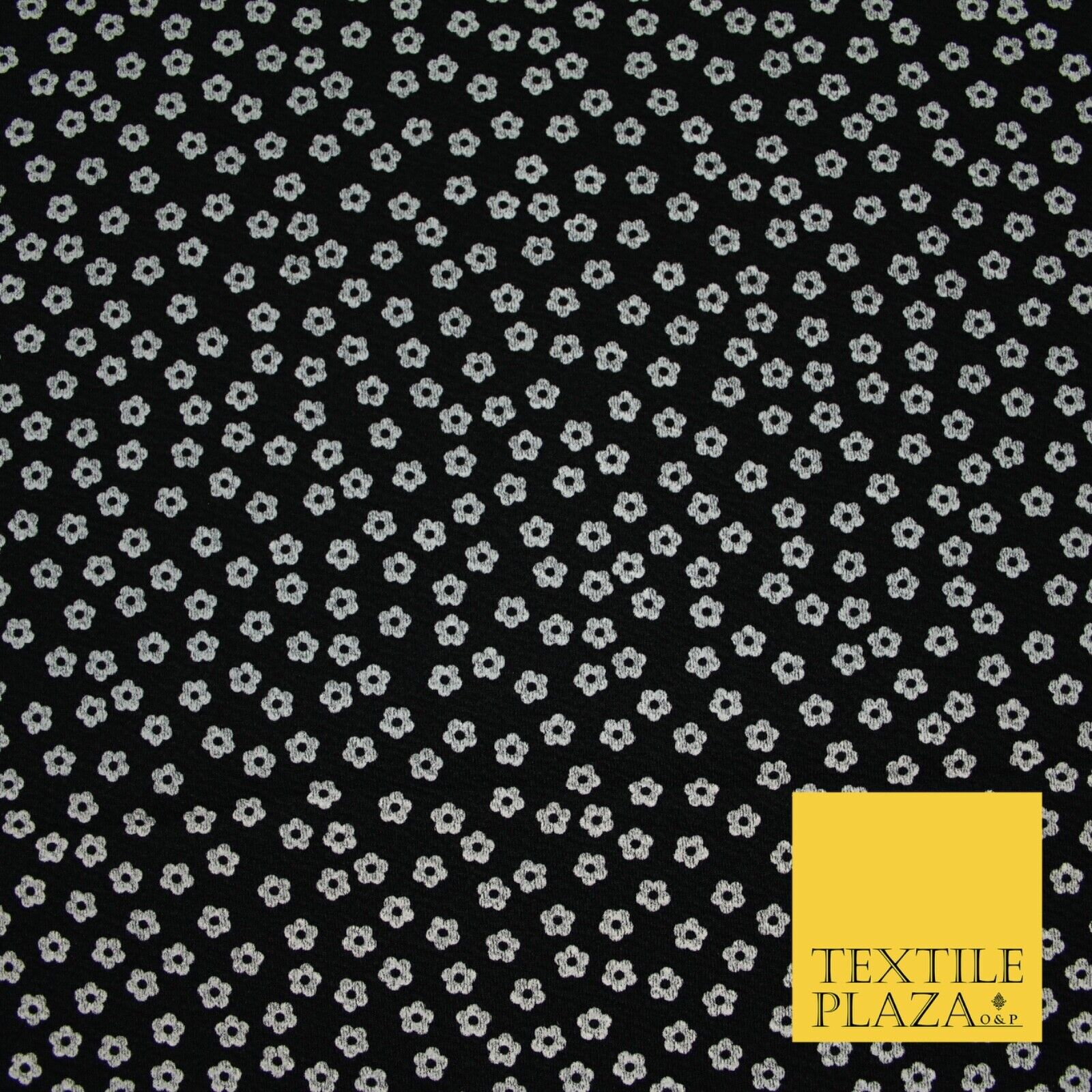 Black and White Ditsy Floral Print Soft Touch Stretch Jersey Fabric 56" 6737