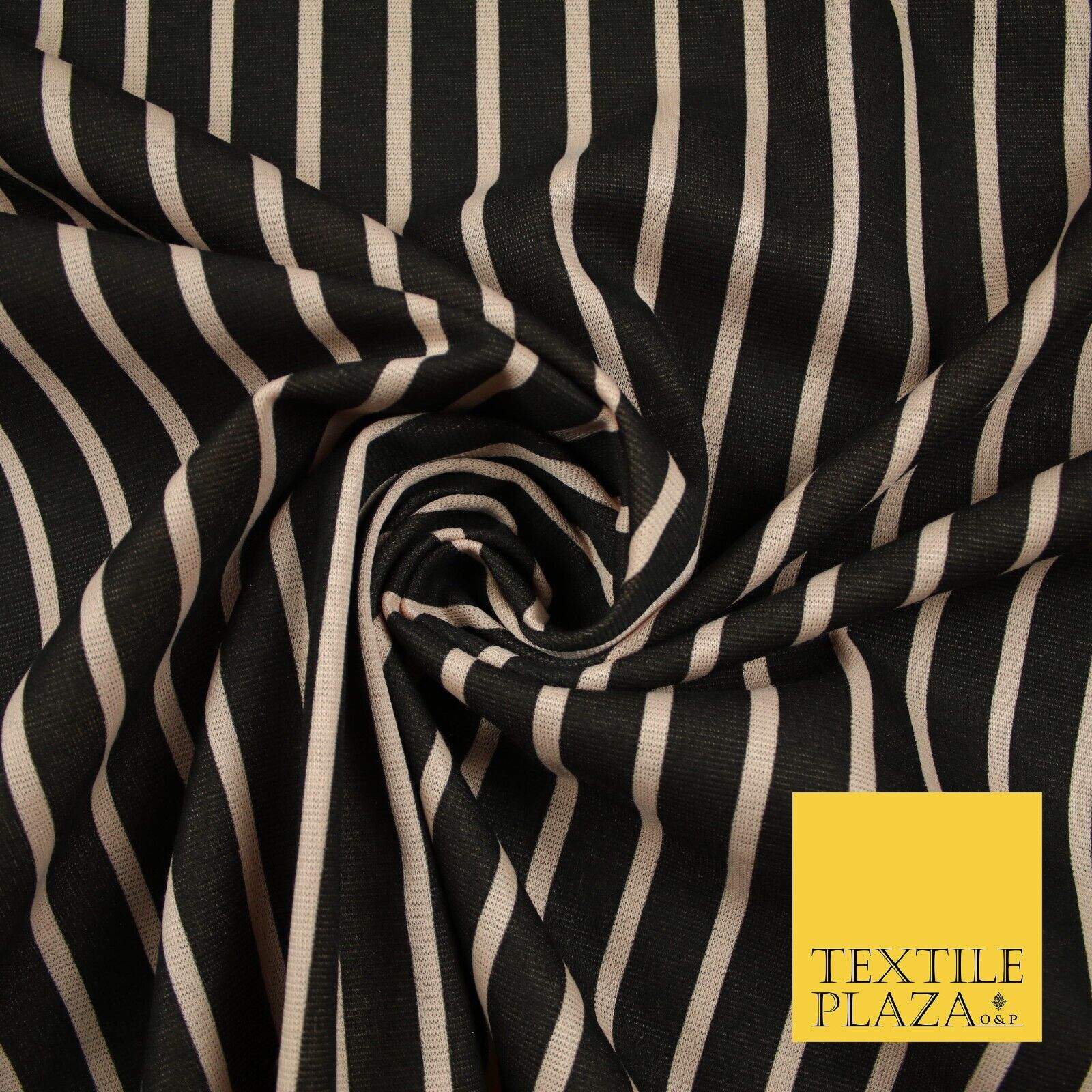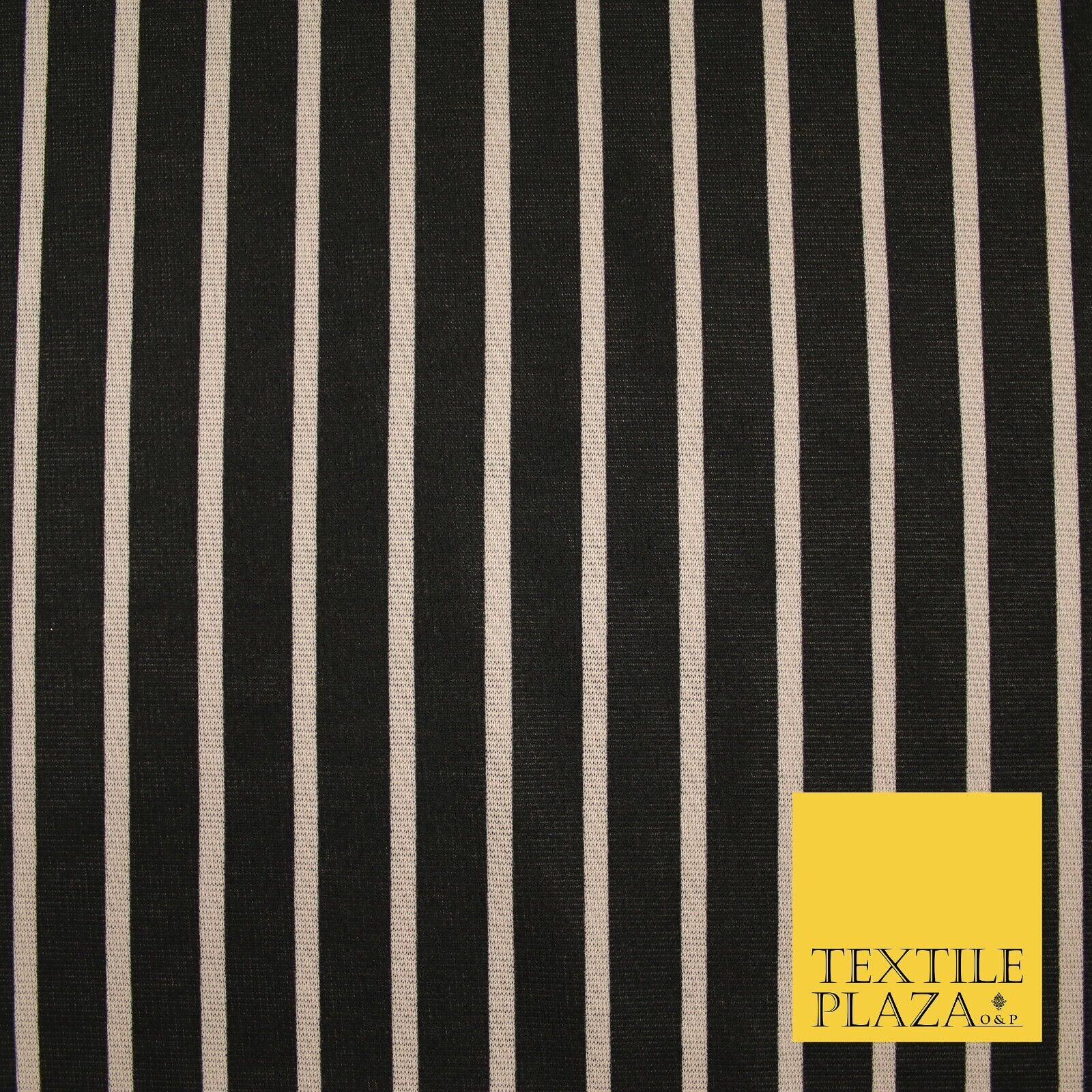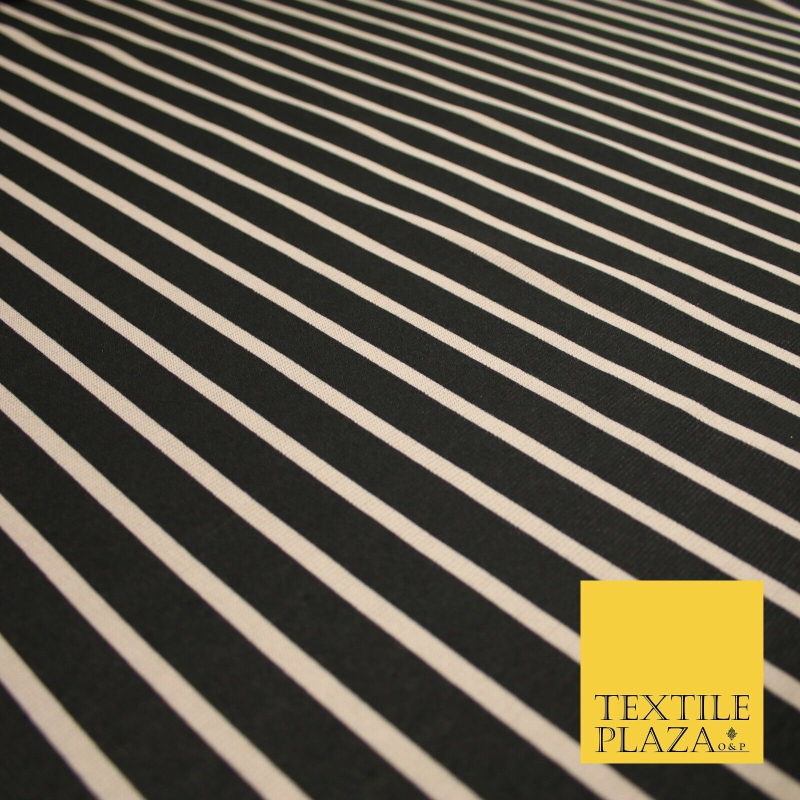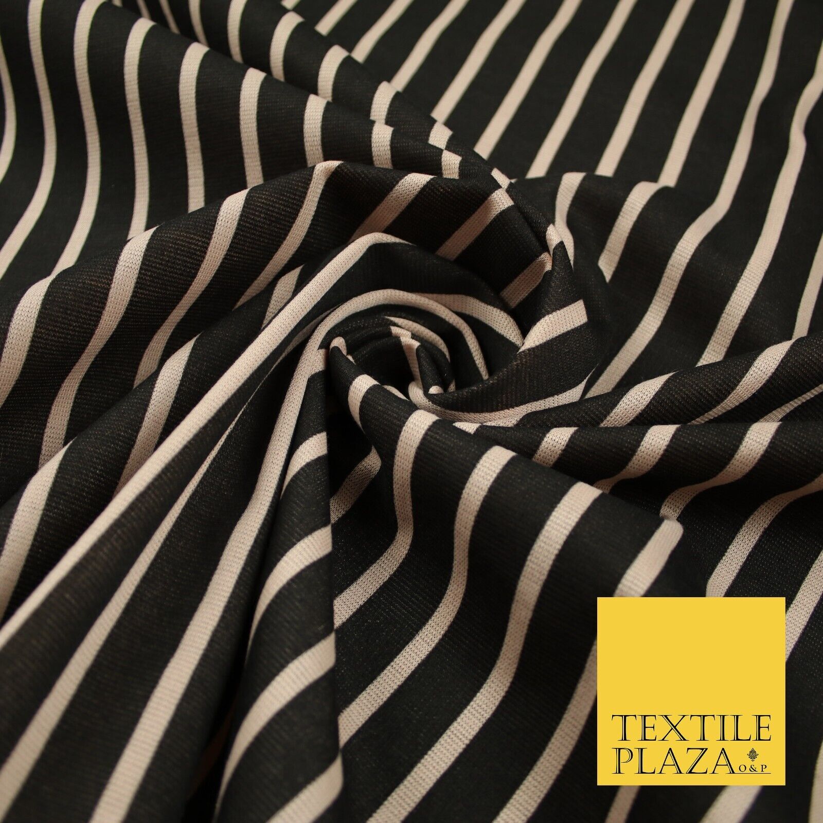 Black & Beige Stripe Print Soft Touch Stretch Jersey Fabric 56" 6623