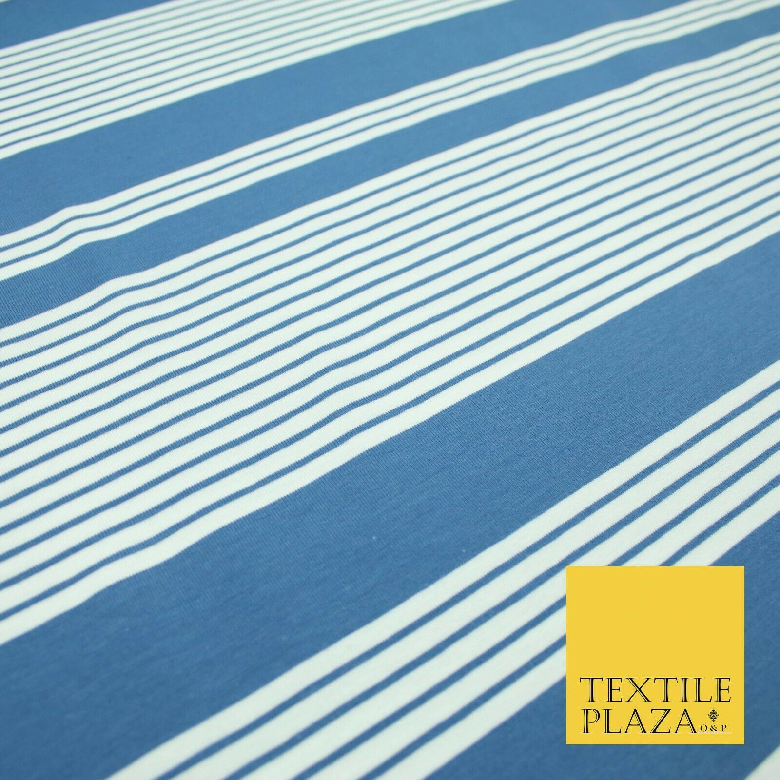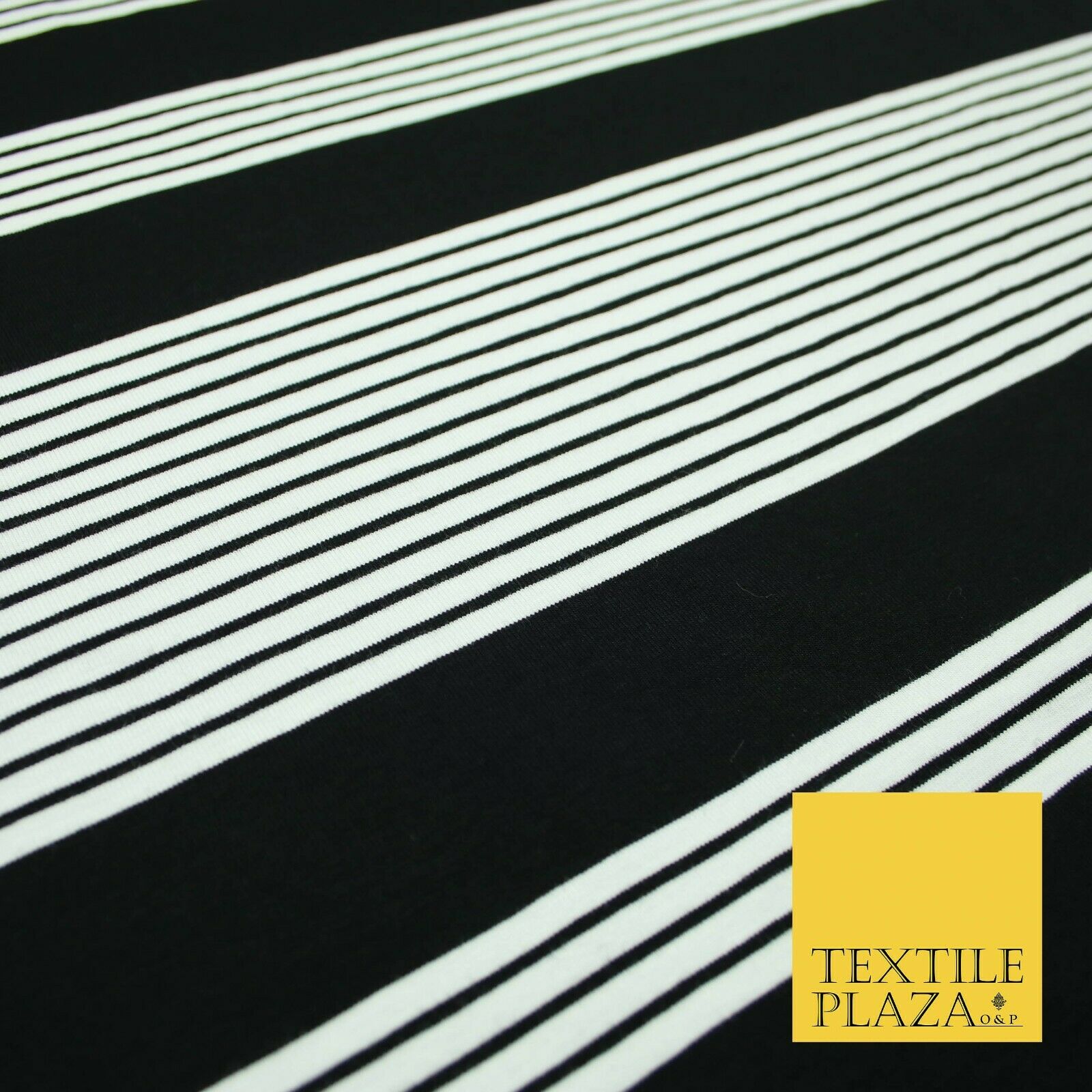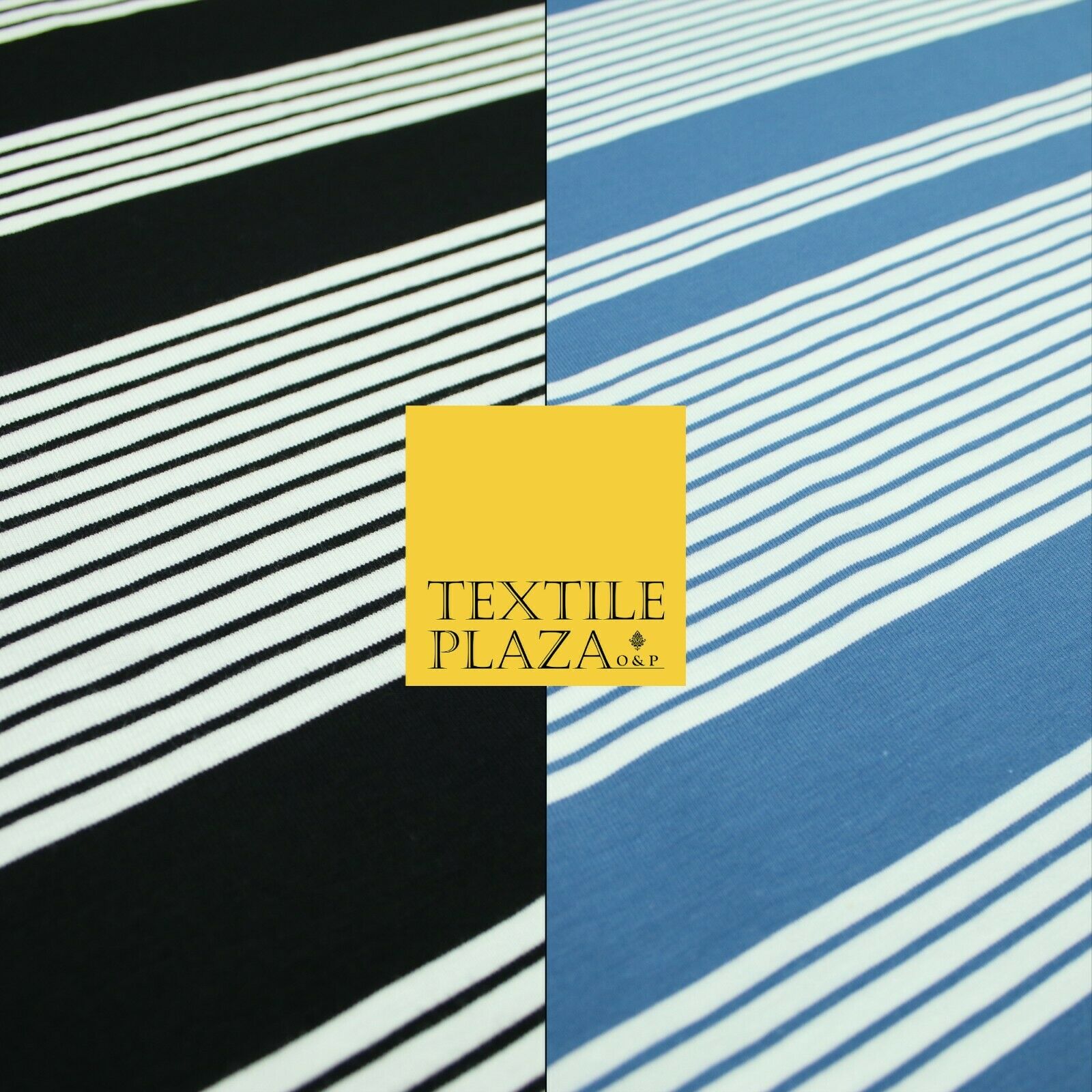Black Blue Block Pinstriped Lines Printed Soft Organic Cotton Jersey Fabric 59"