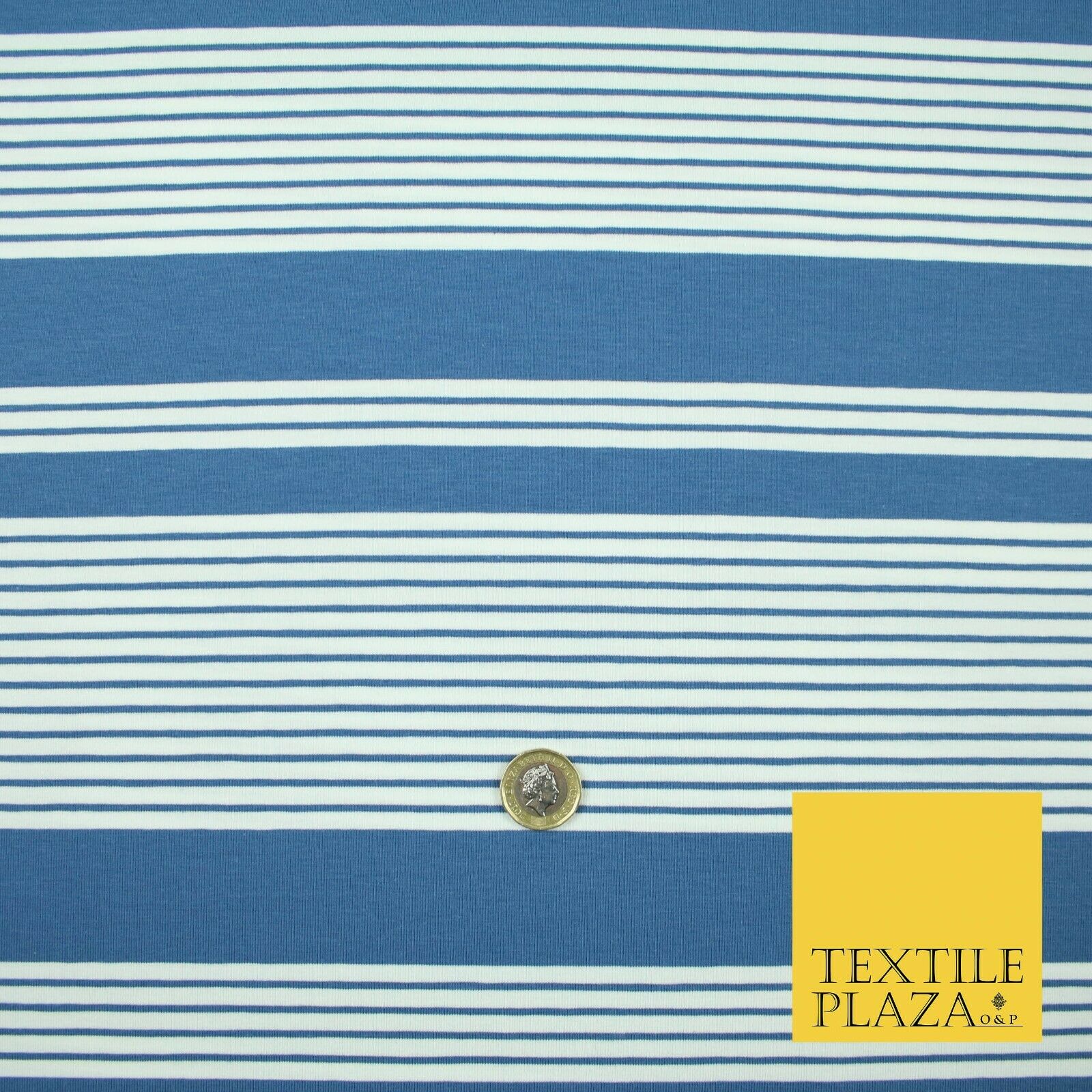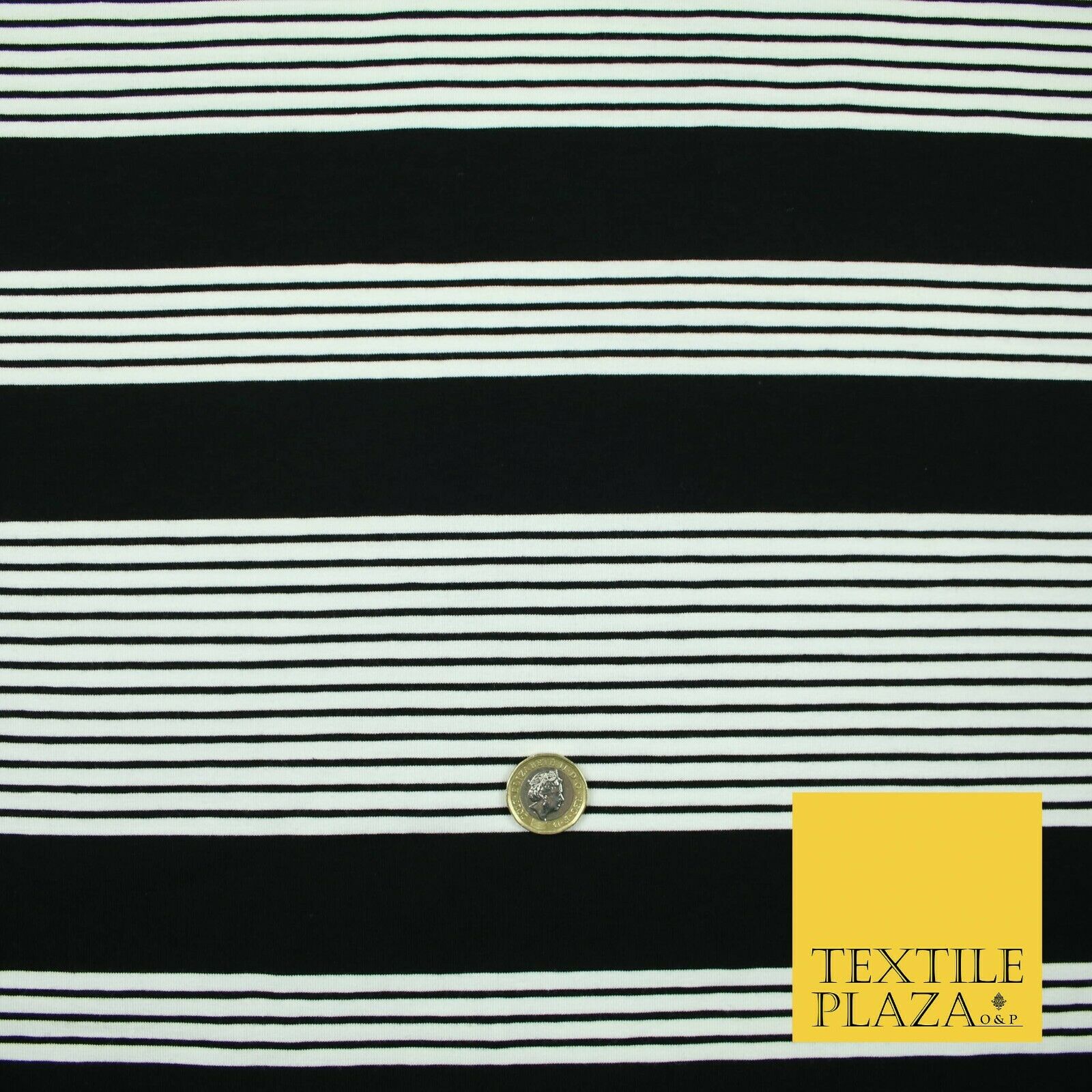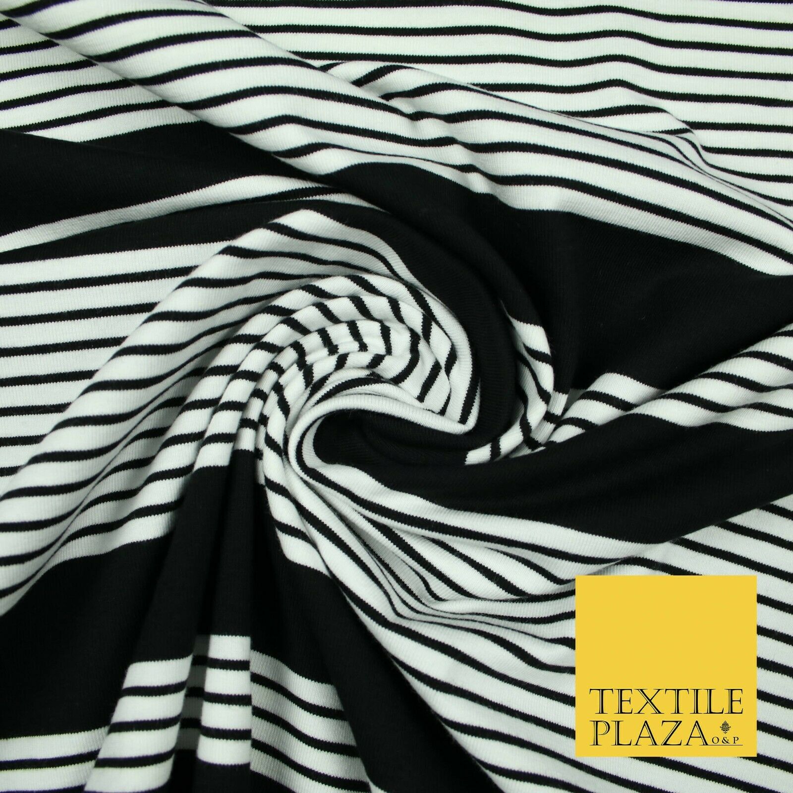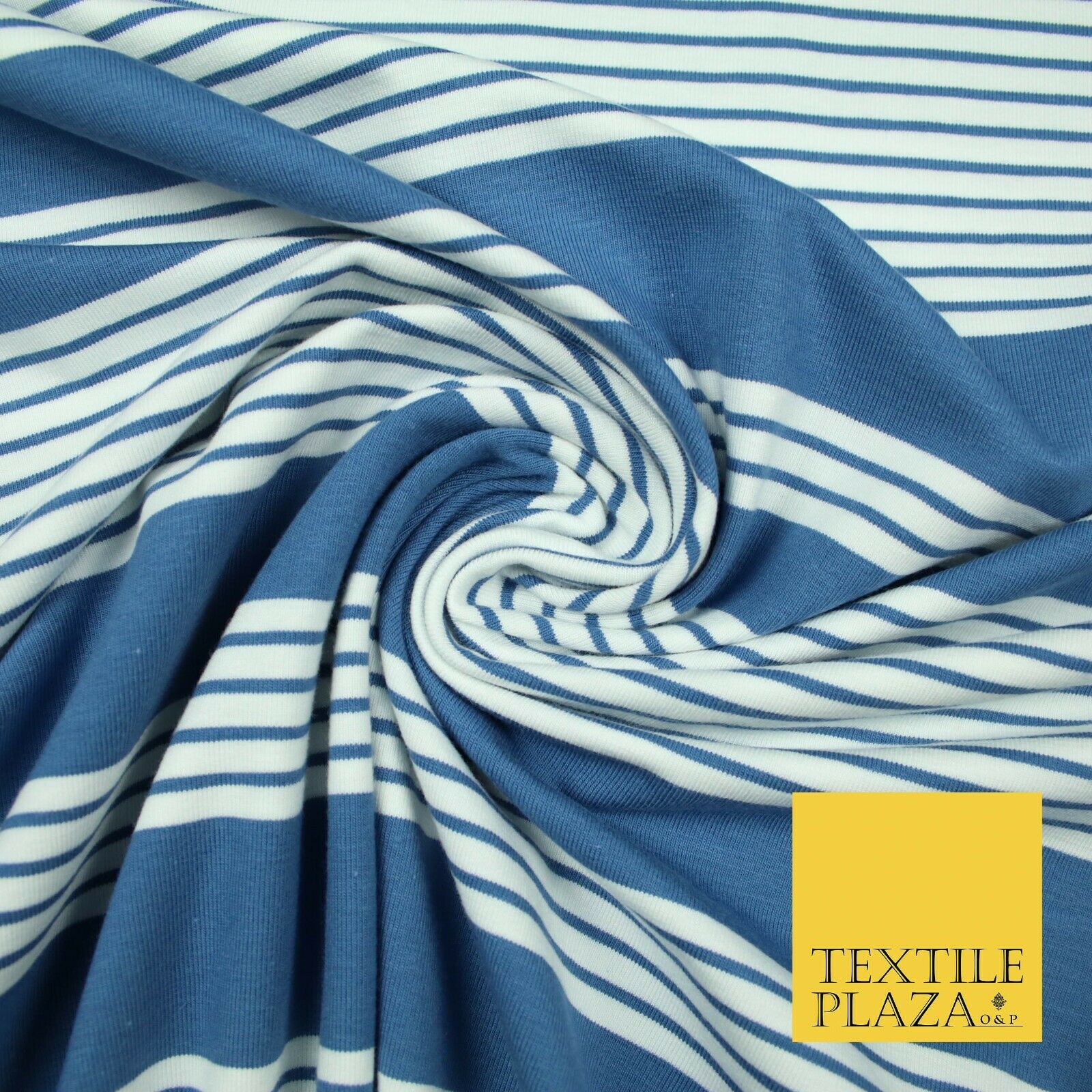 Black Blue Block Pinstriped Lines Printed Soft Organic Cotton Jersey Fabric 59"