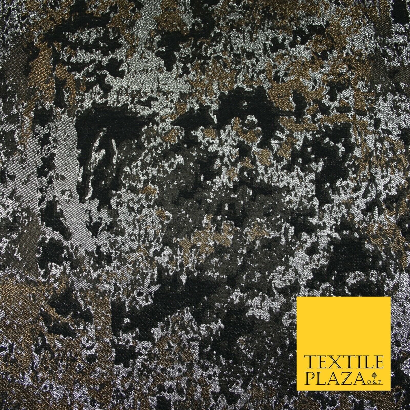 Black Coffee Silver Metallic Artsy Abstract Speckle Textured Brocade Fabric 7154