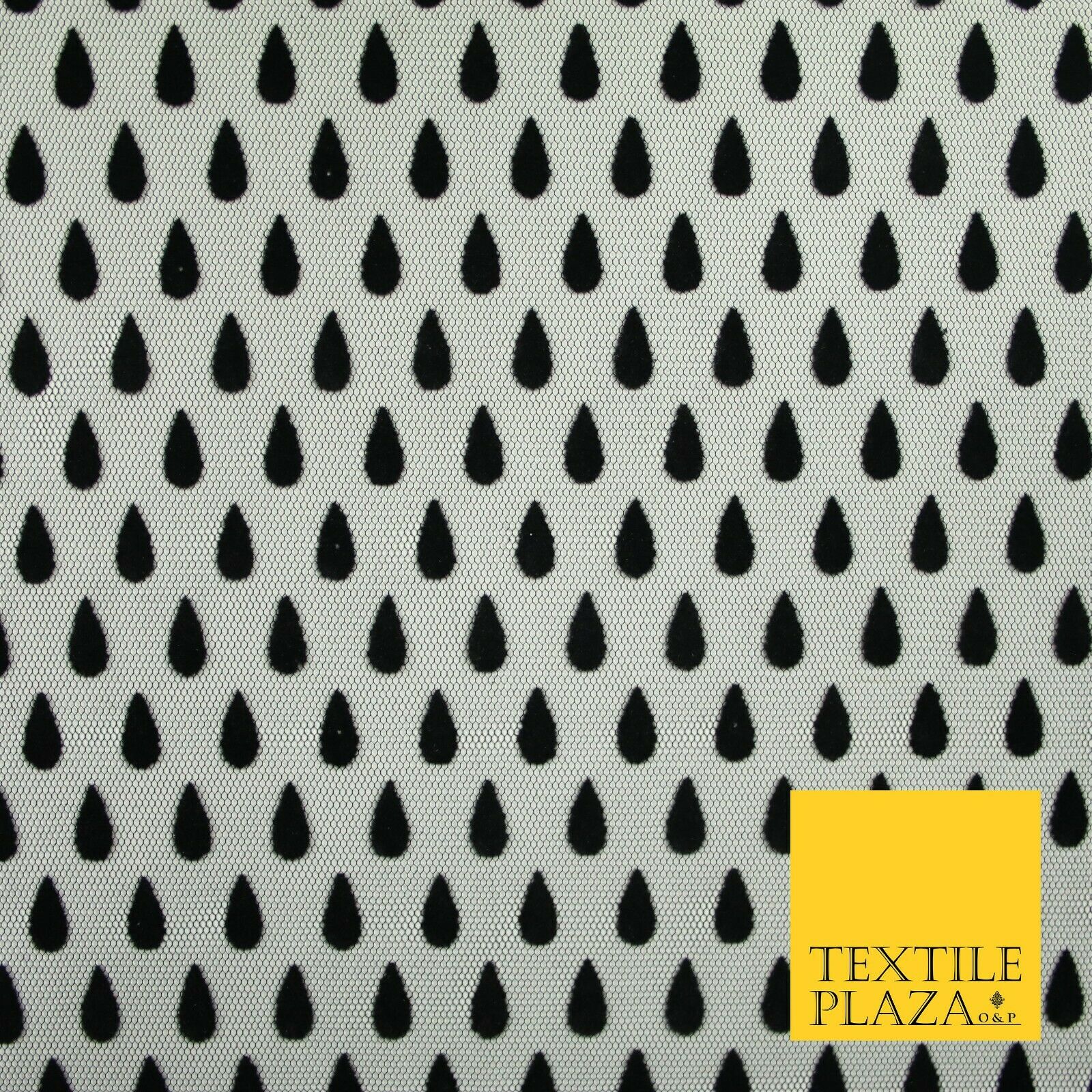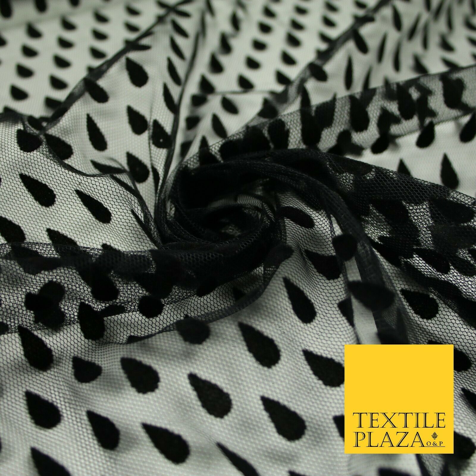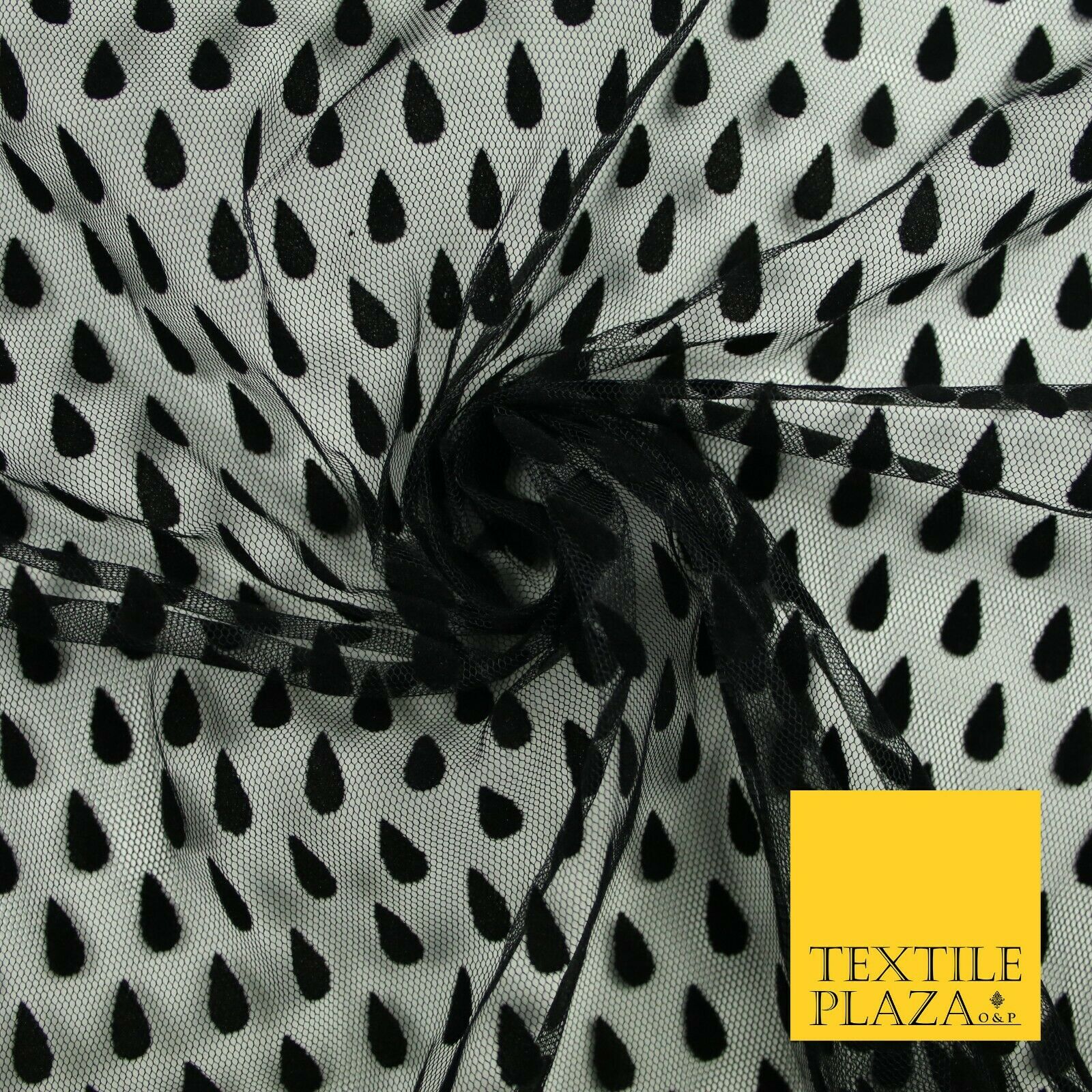Black Falling Teardrops Flocked Power Mesh Net Stretch Dress Fabric 58" 7069