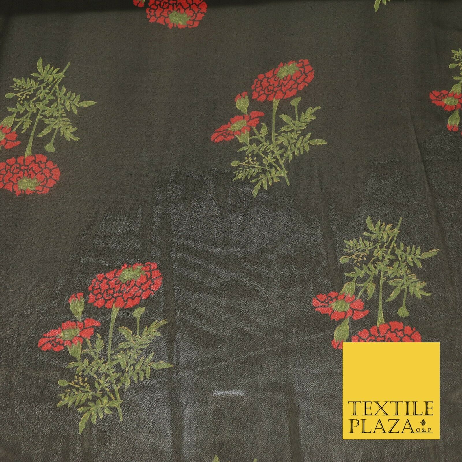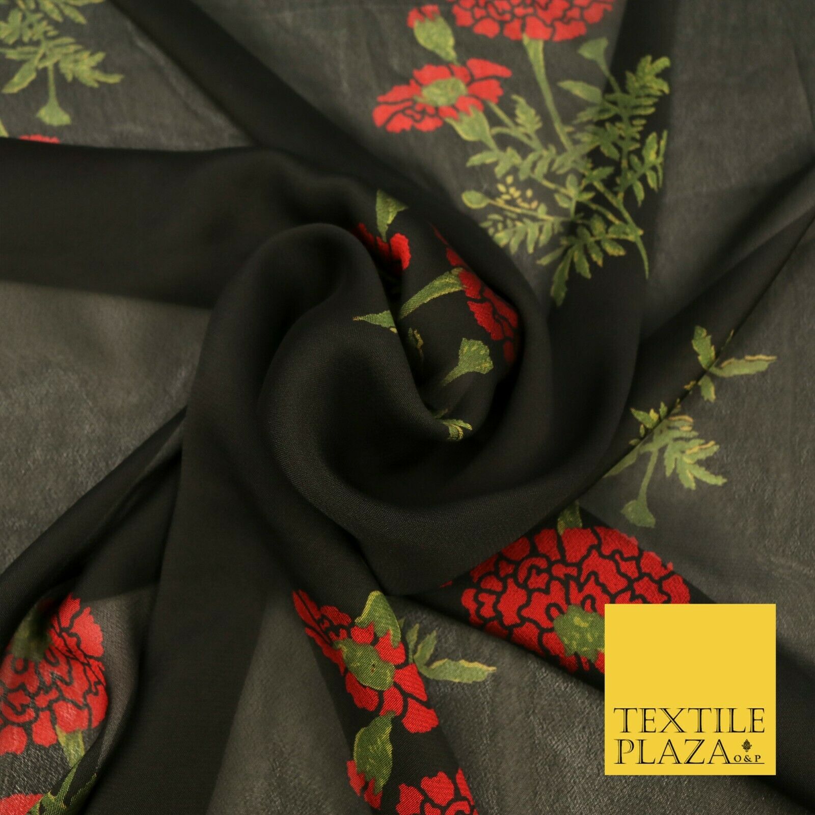 BLACK Floral Marigold Premium Printed Sheen Georgette Dress Fabric Drape 1666