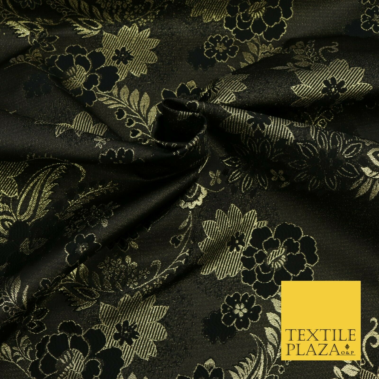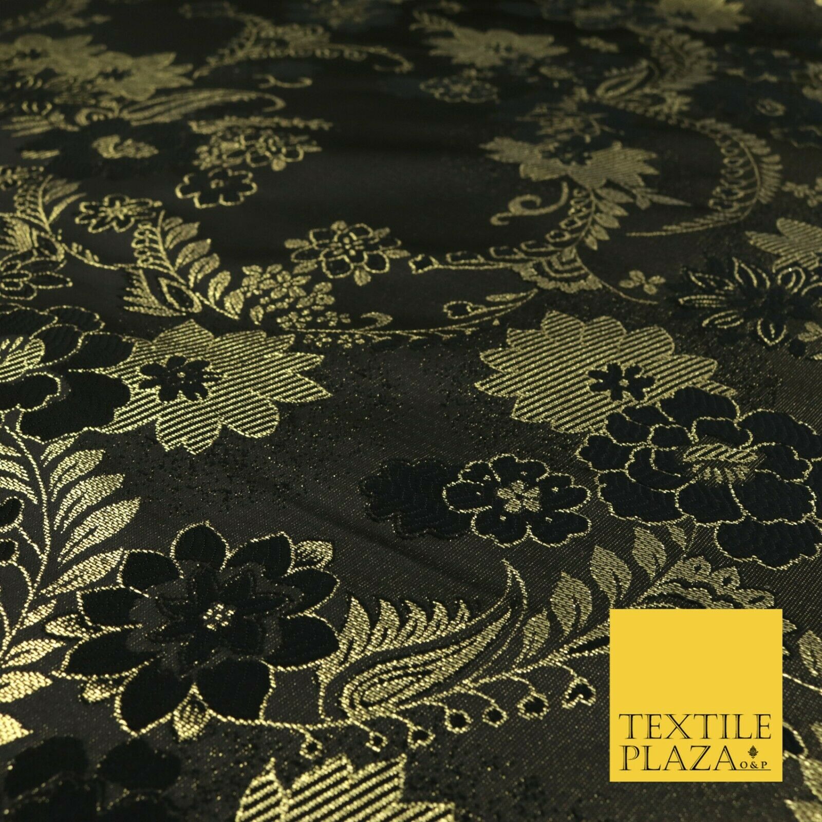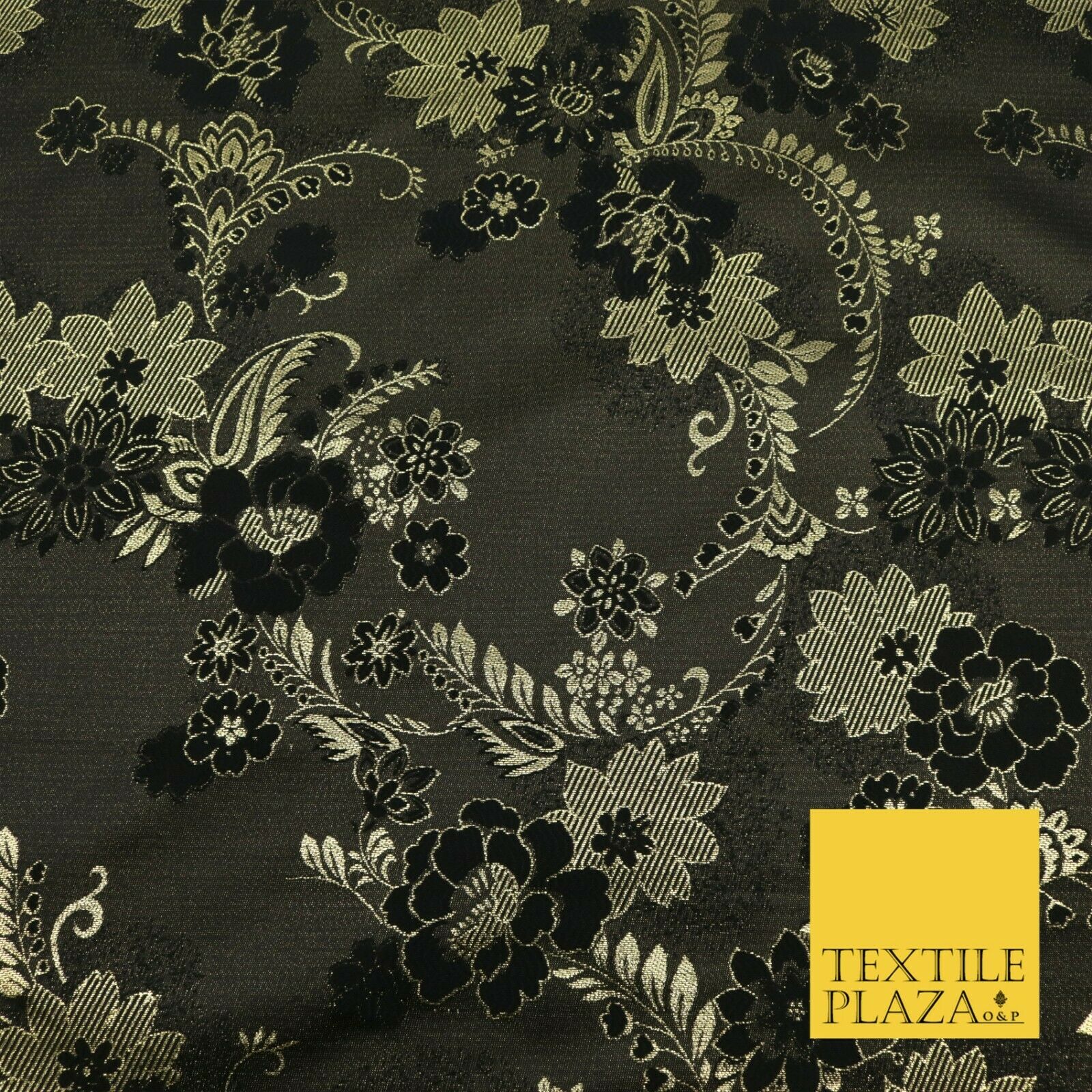 BLACK GOLD Ornate Floral Brocade Dress Fabric Metallic Woven Fancy 1531