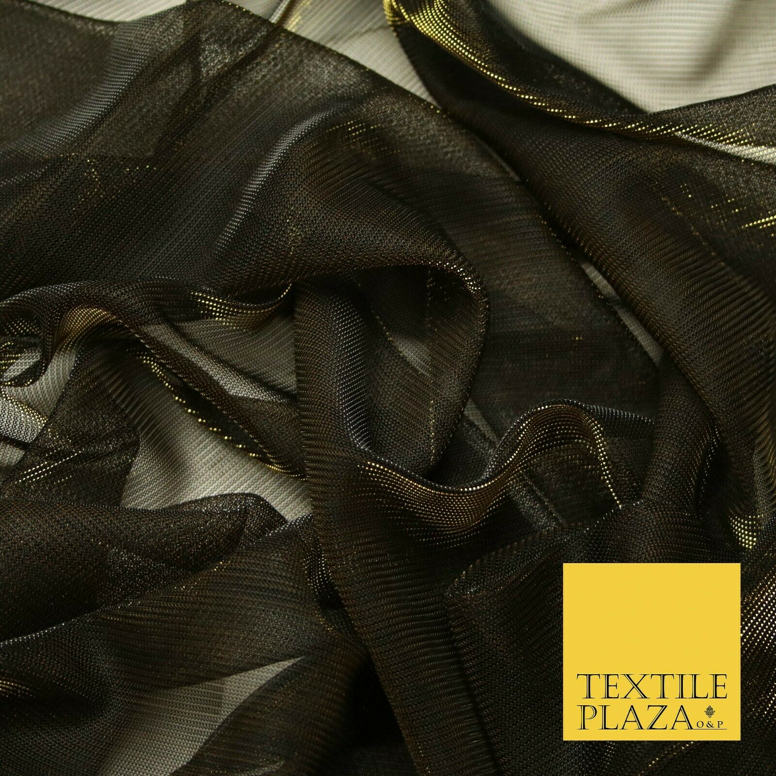 Black Gold Slinky Shiny Sheer Mesh Net Dress Fabric Dancewear 60" Wide 4301