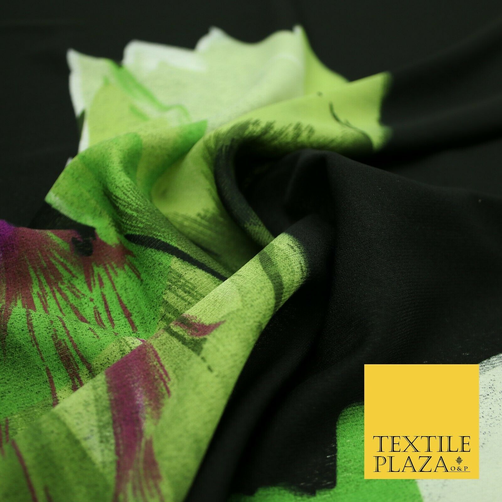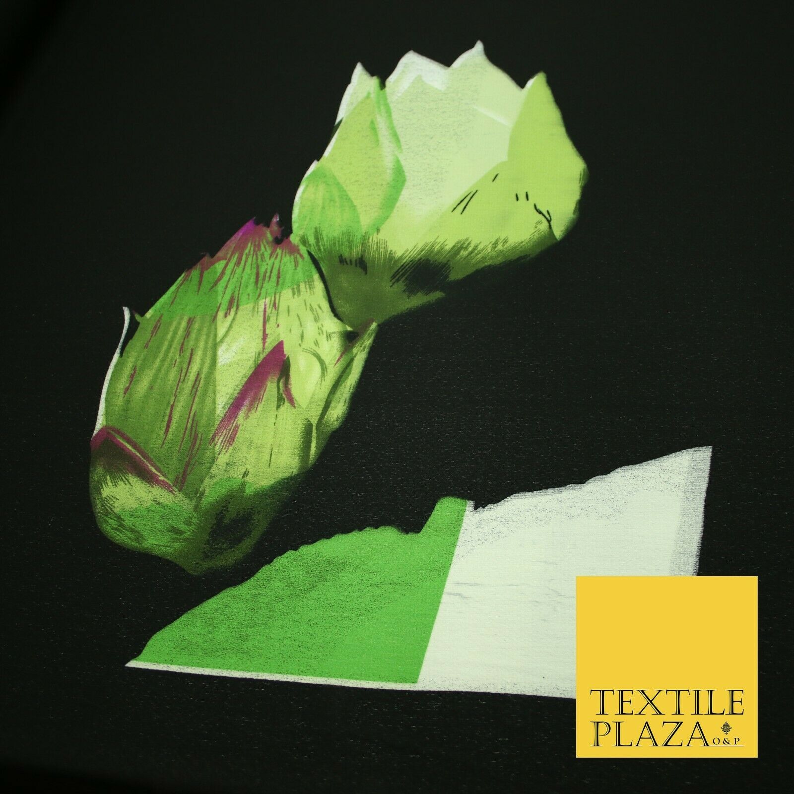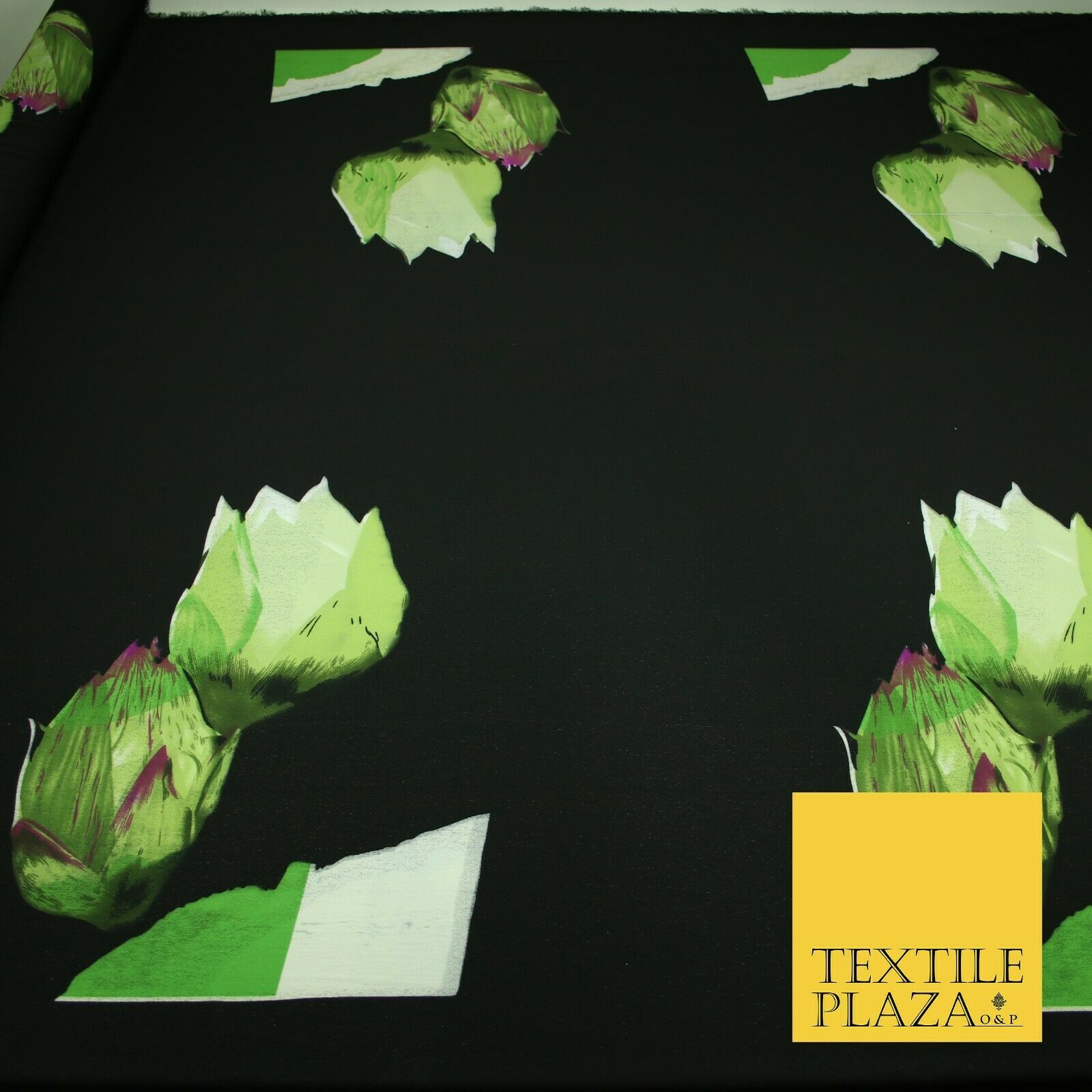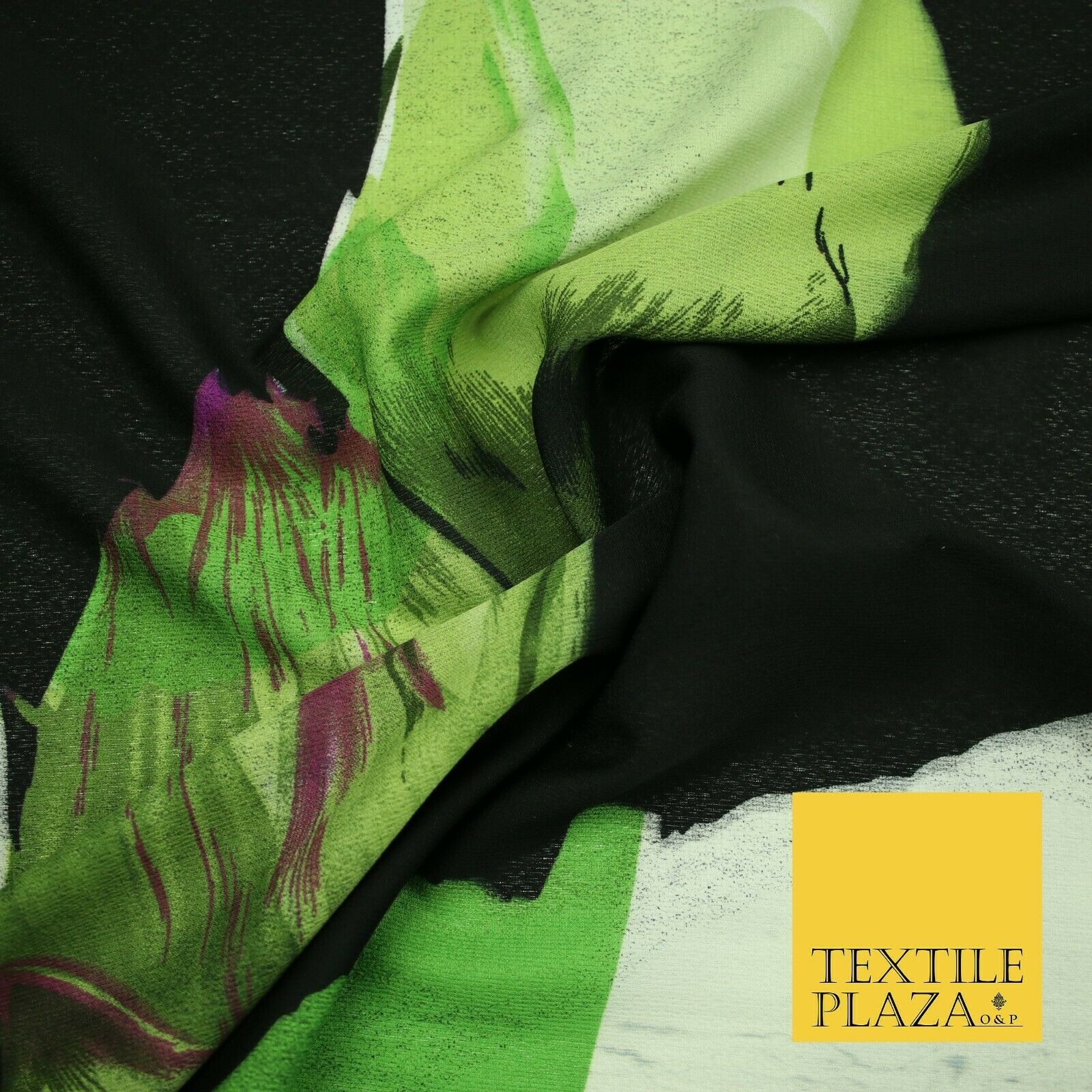 Black Green Flower 'Front Back Blouse' Printed Crepe Polyester Dress Fabric 2828