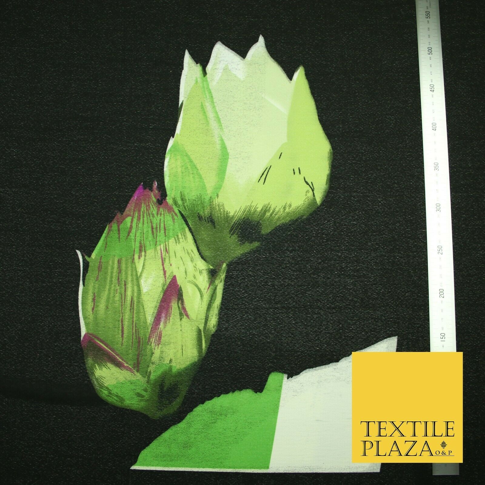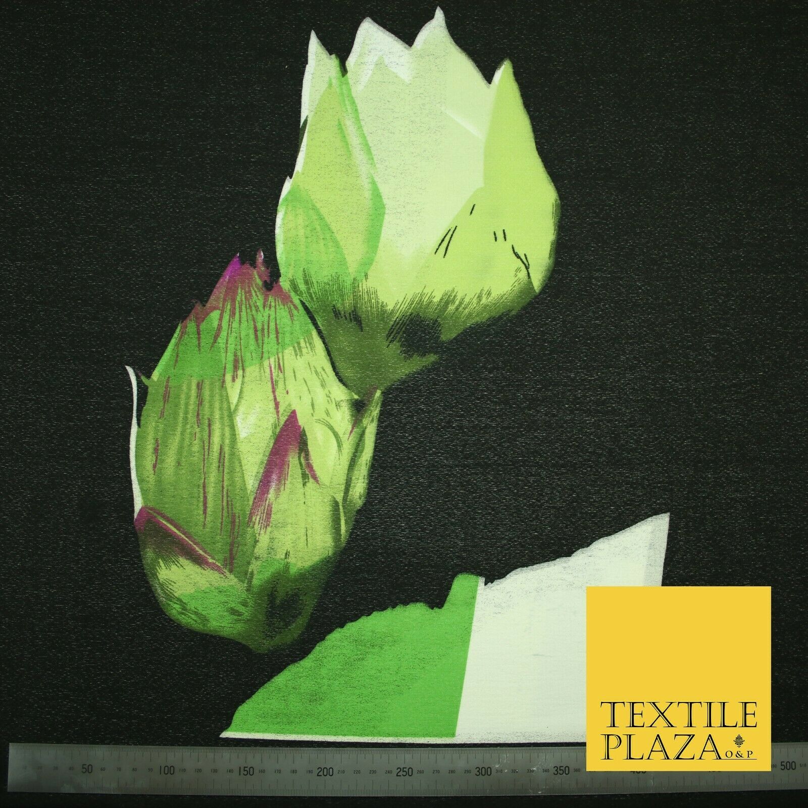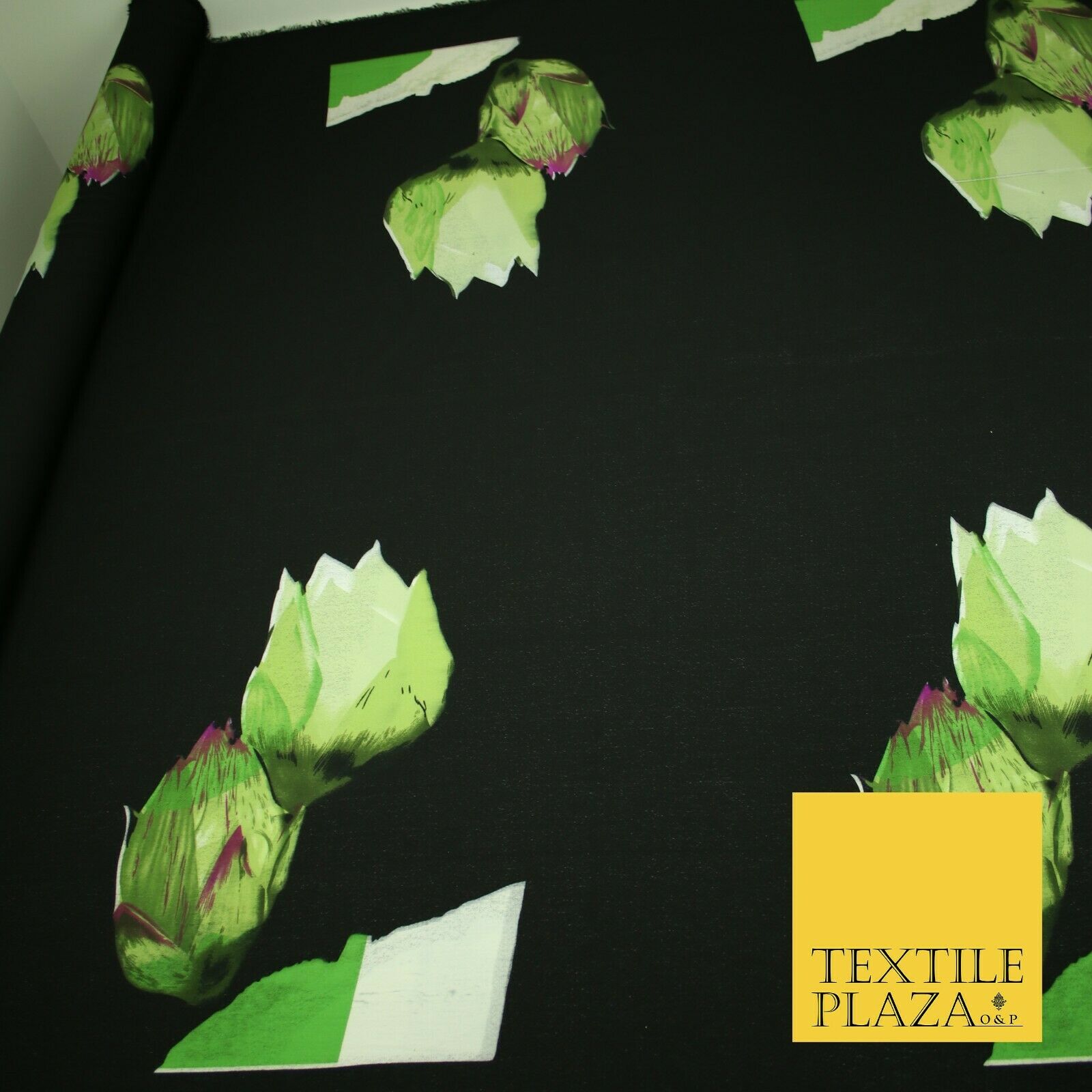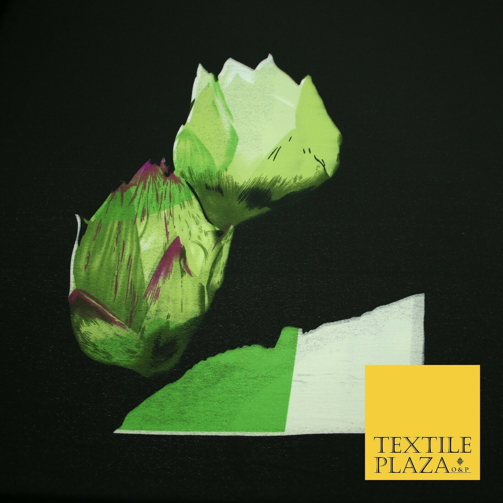 Black Green Flower 'Front Back Blouse' Printed Crepe Polyester Dress Fabric 2828