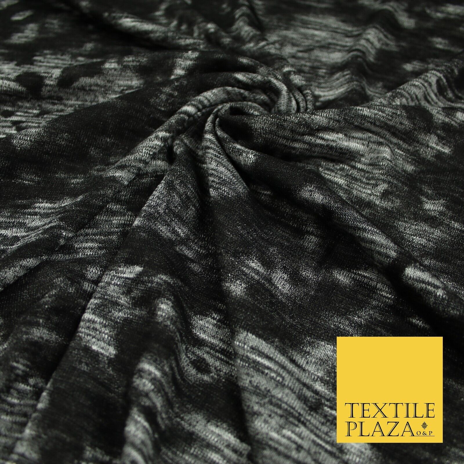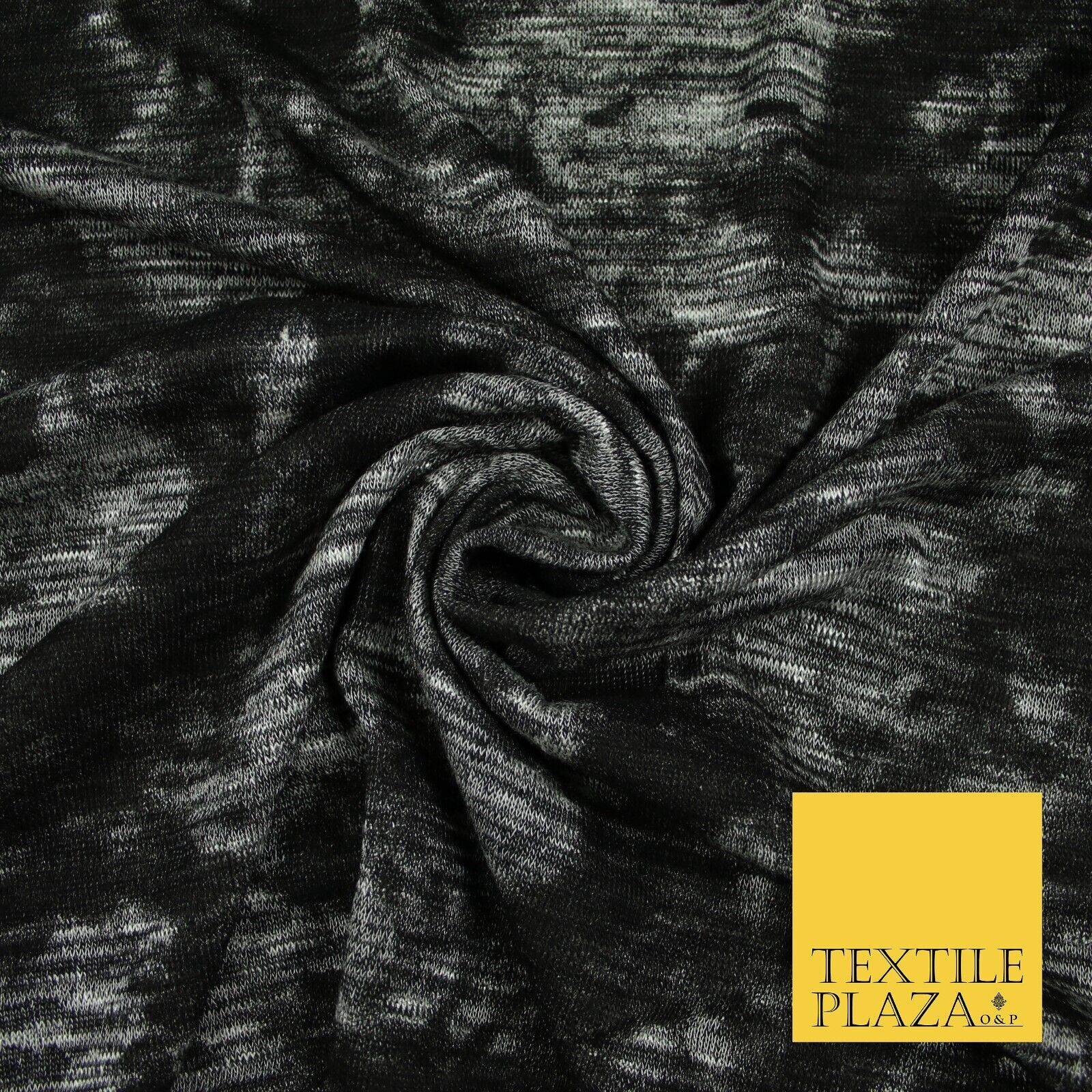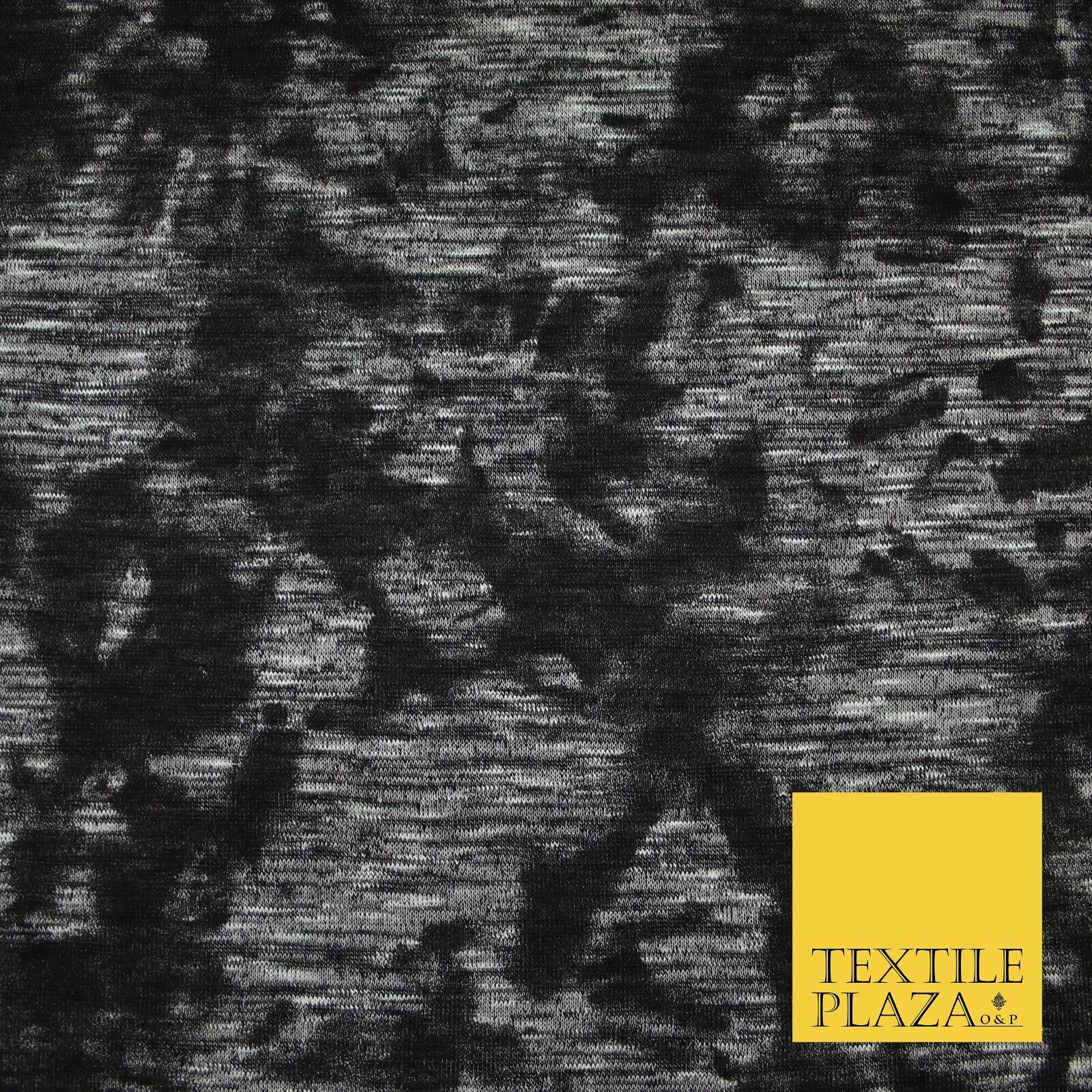 Black & Grey Faded Floral Marl Knitted Soft Touch Stretch Jersey Fabric 56" 6590