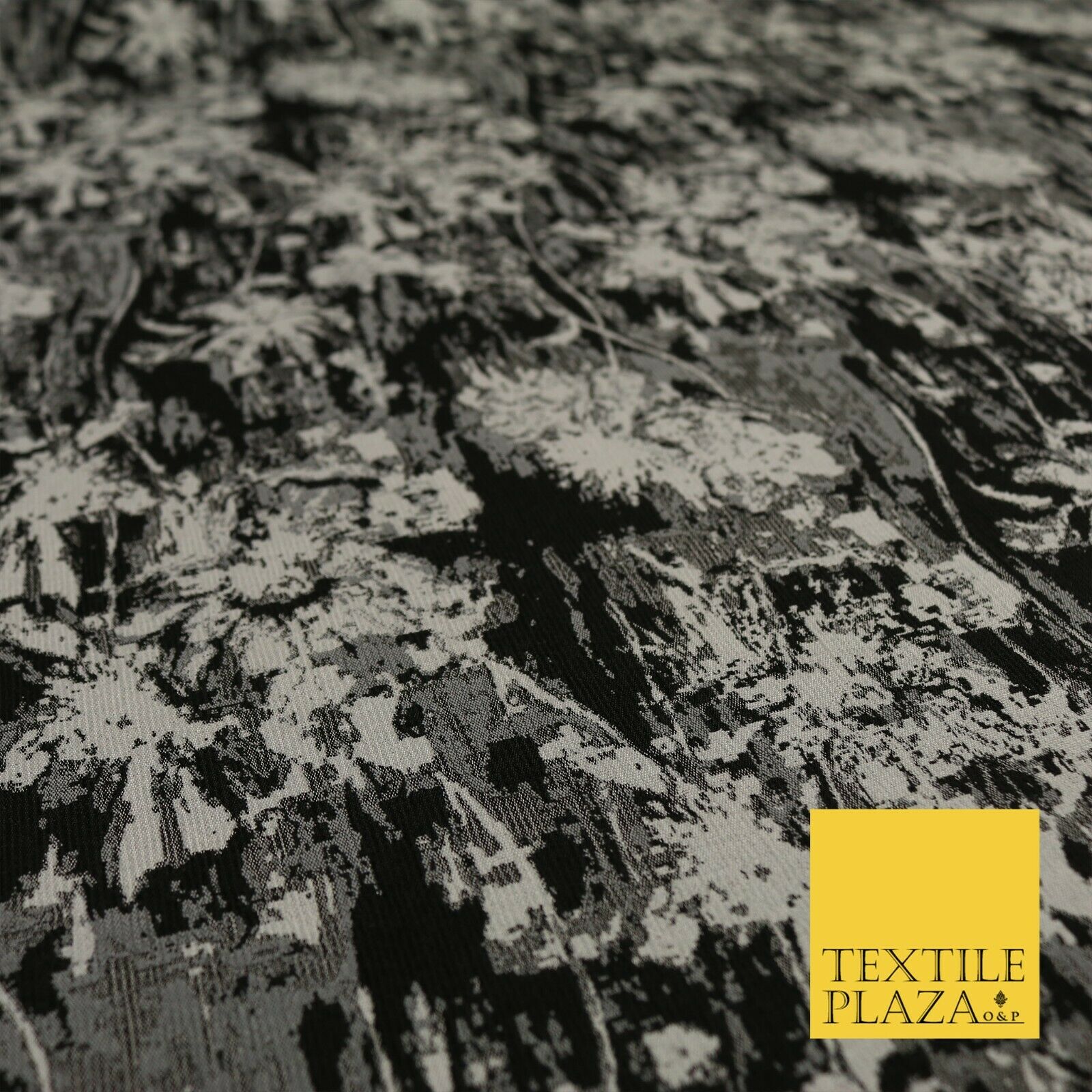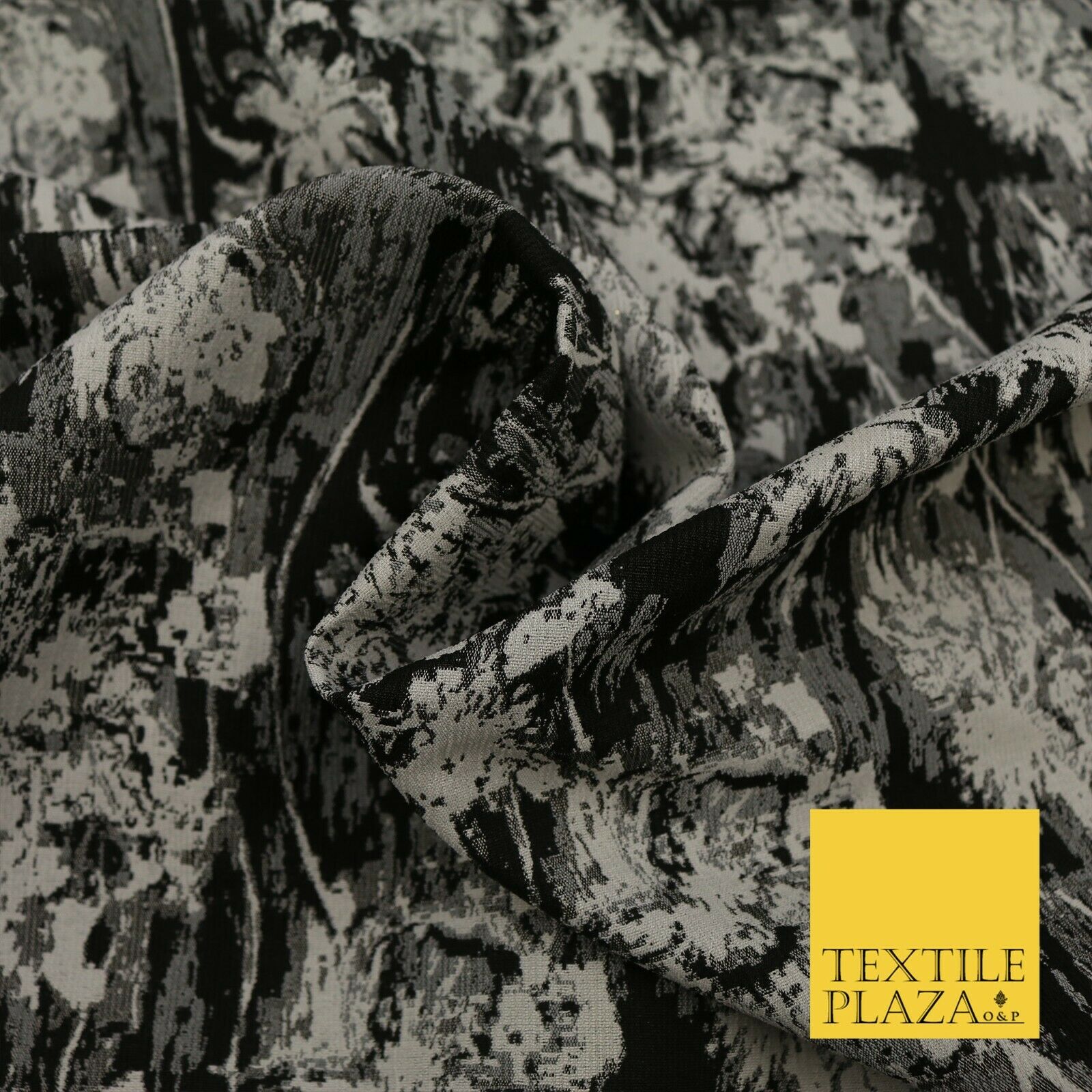BLACK GREY Luxury Rainstorm Textured Brocade Jacquard Dress Fabric 1671