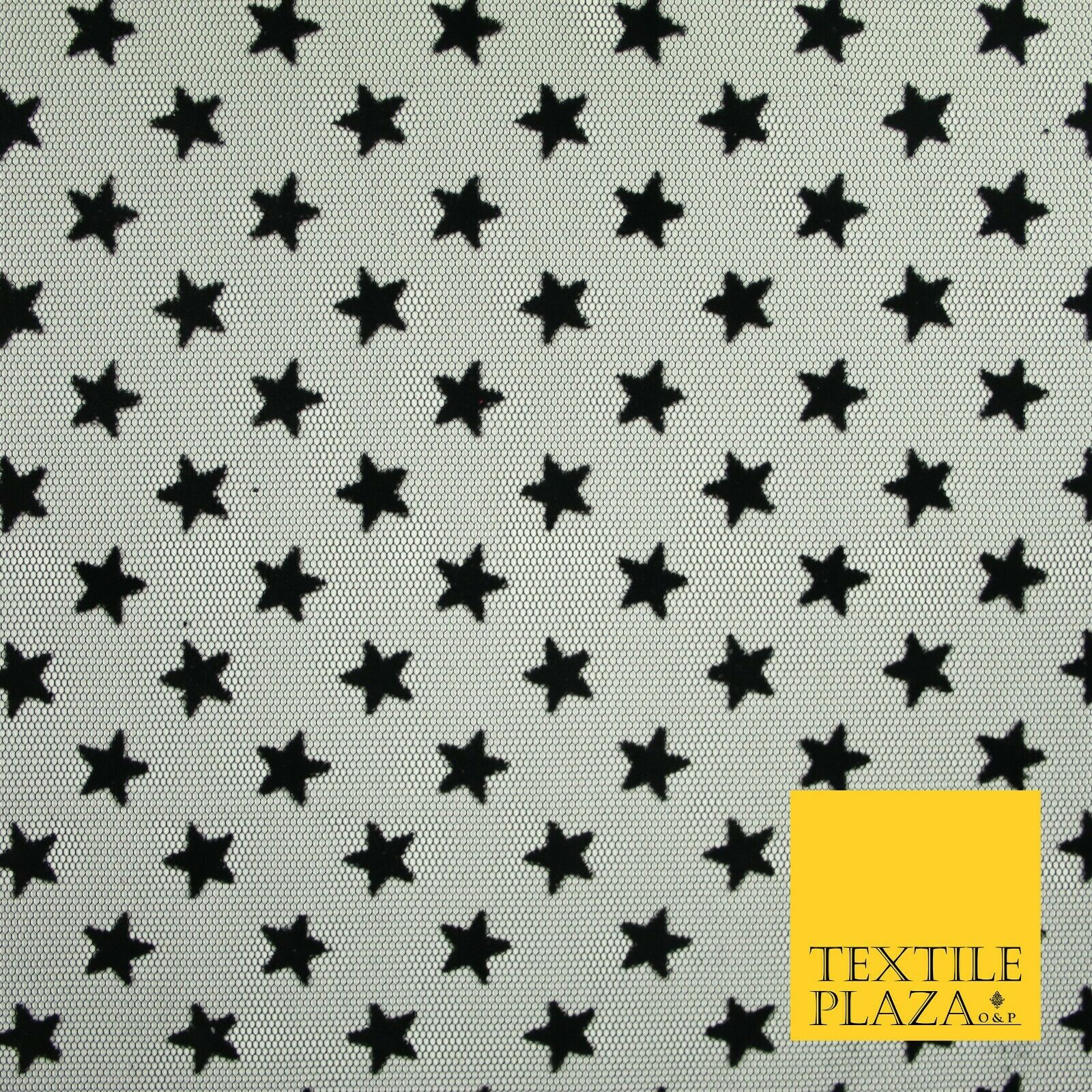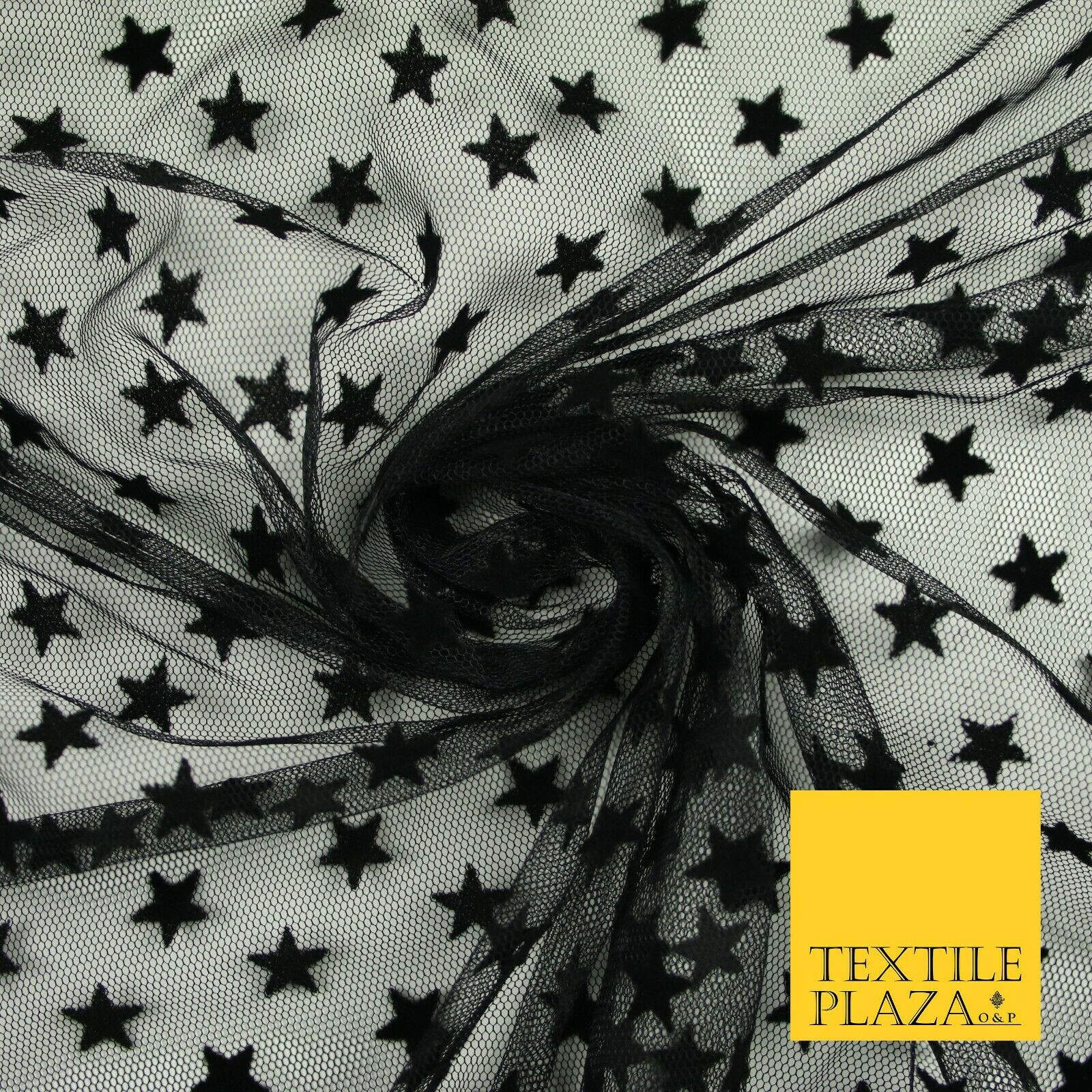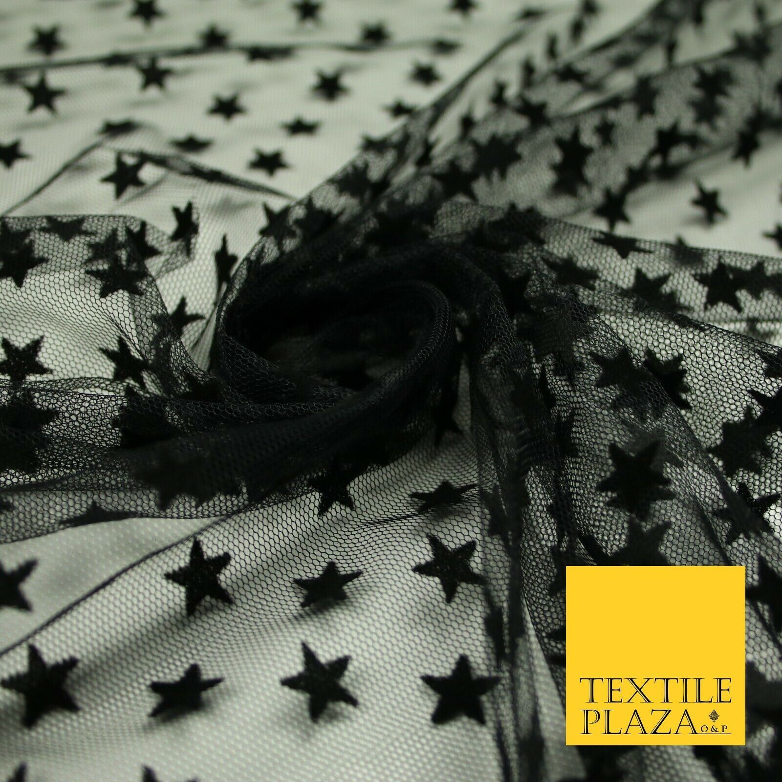 Black Intense Falling Stars Flocked Power Mesh Net Stretch Dress Fabric 58" 7067