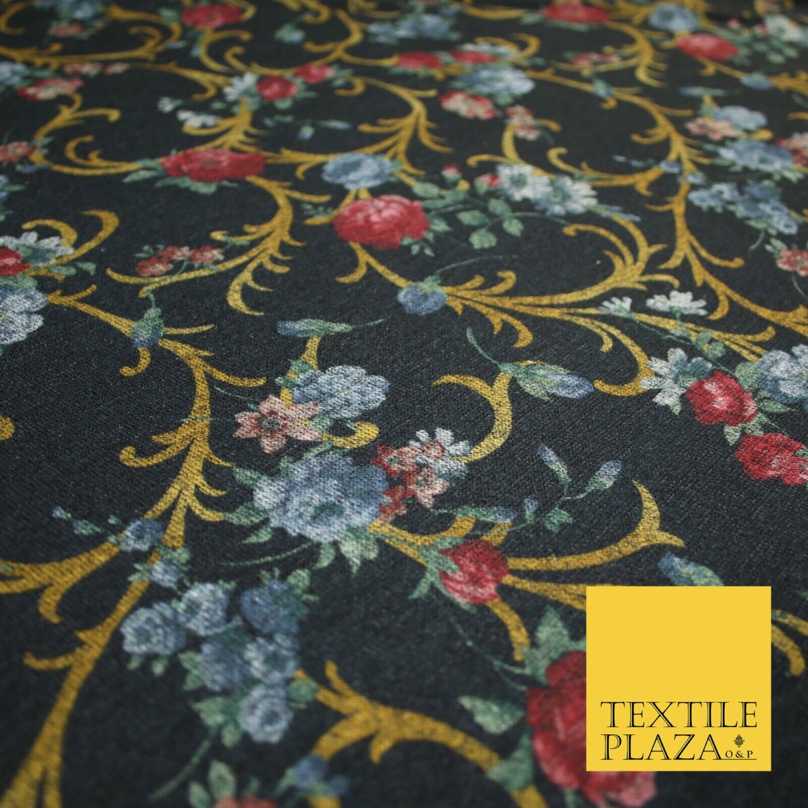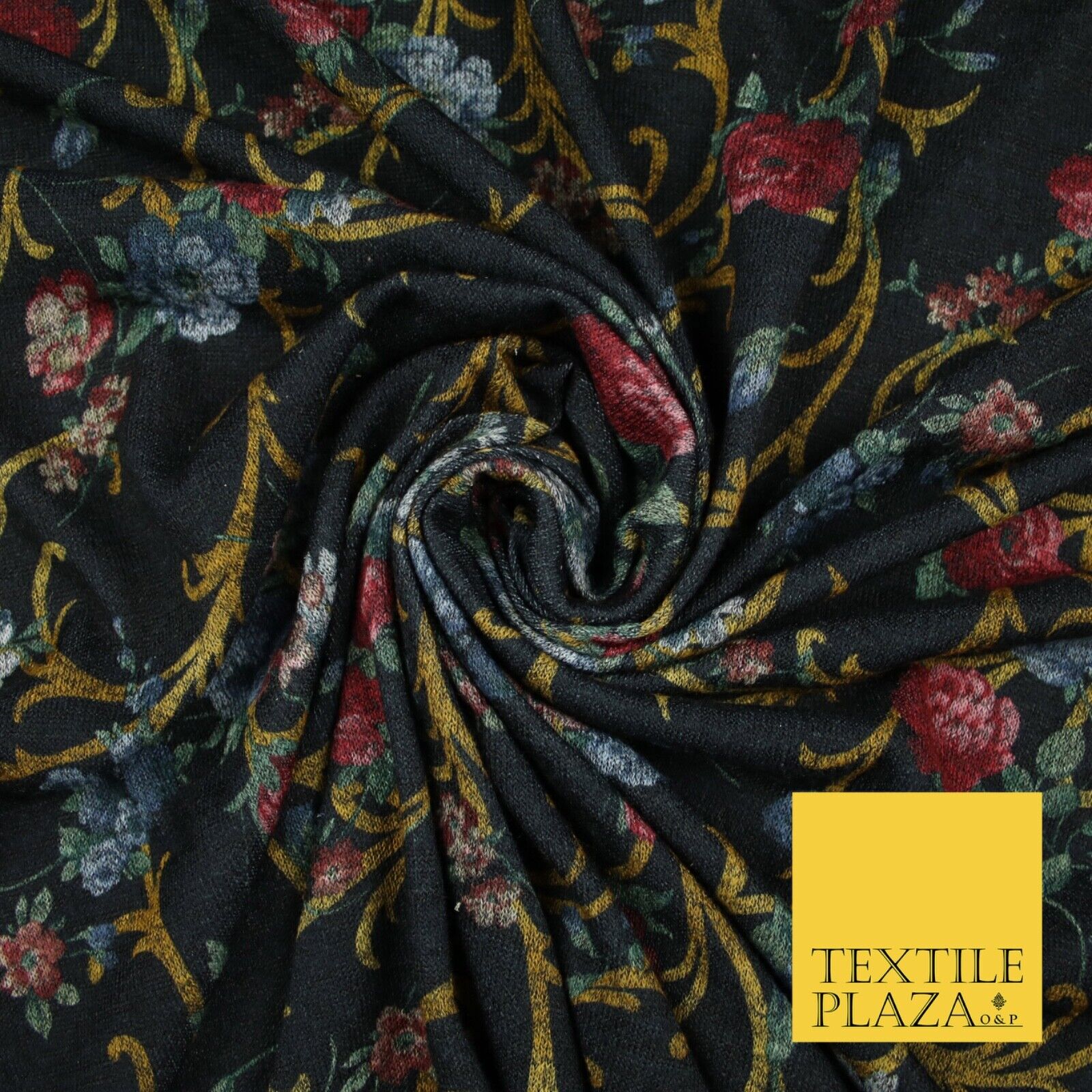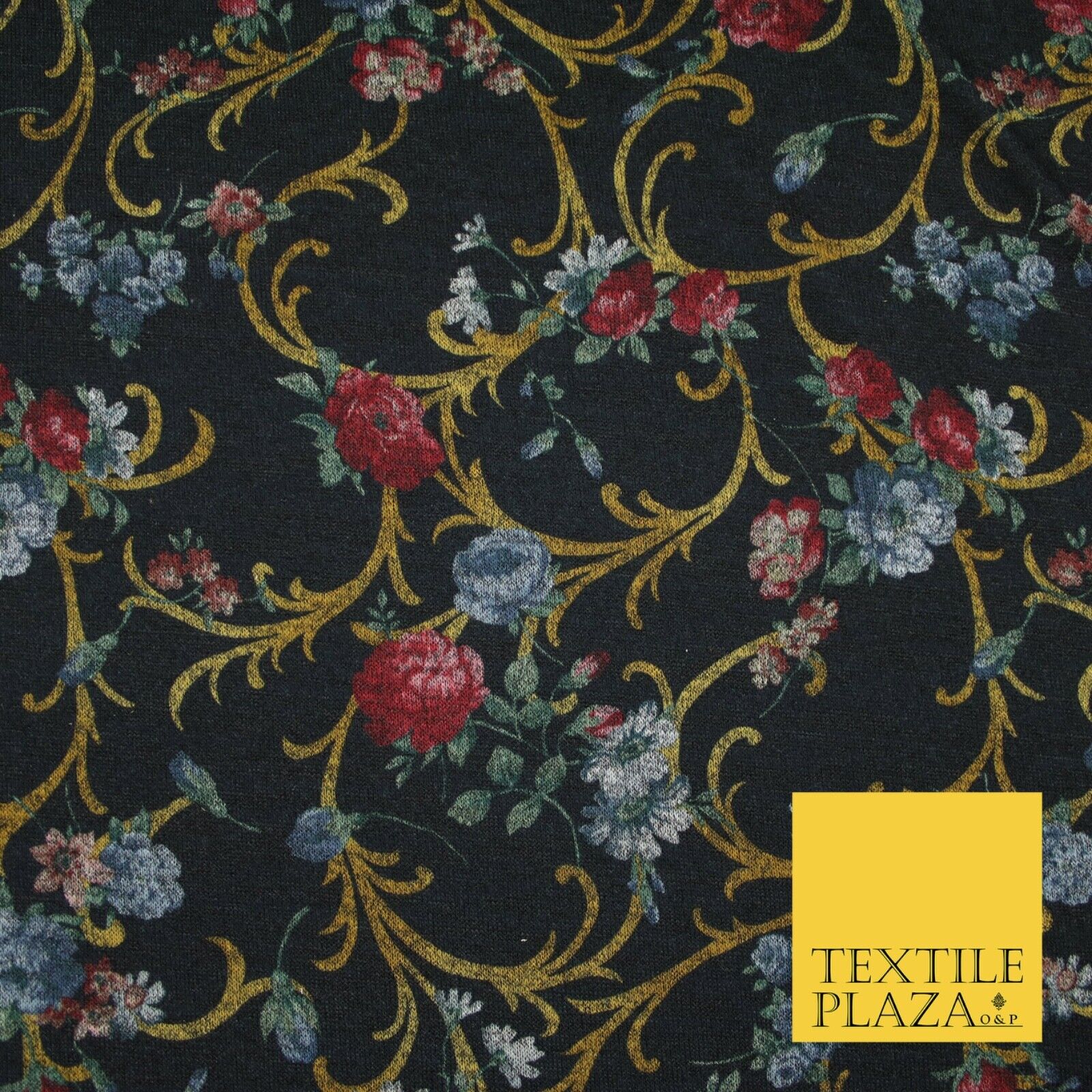 Black Marl Vintage Floral Print Soft Touch Stretch Jersey Fabric 56" 6727