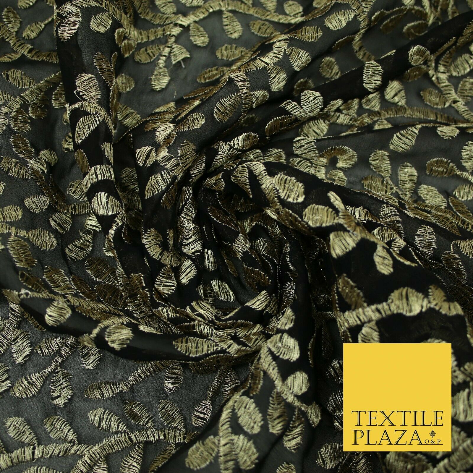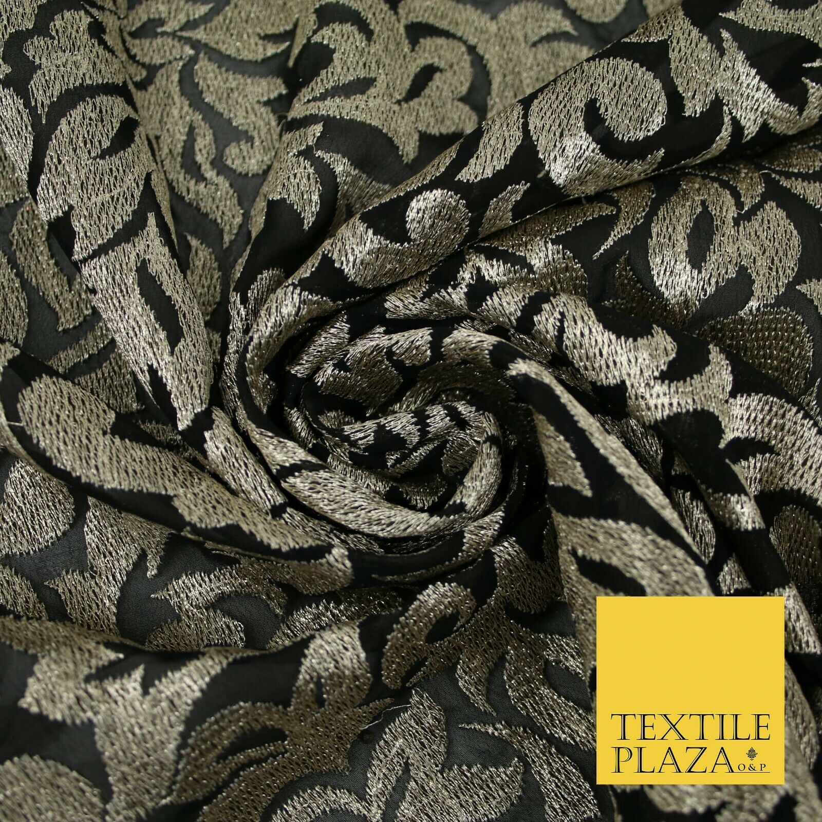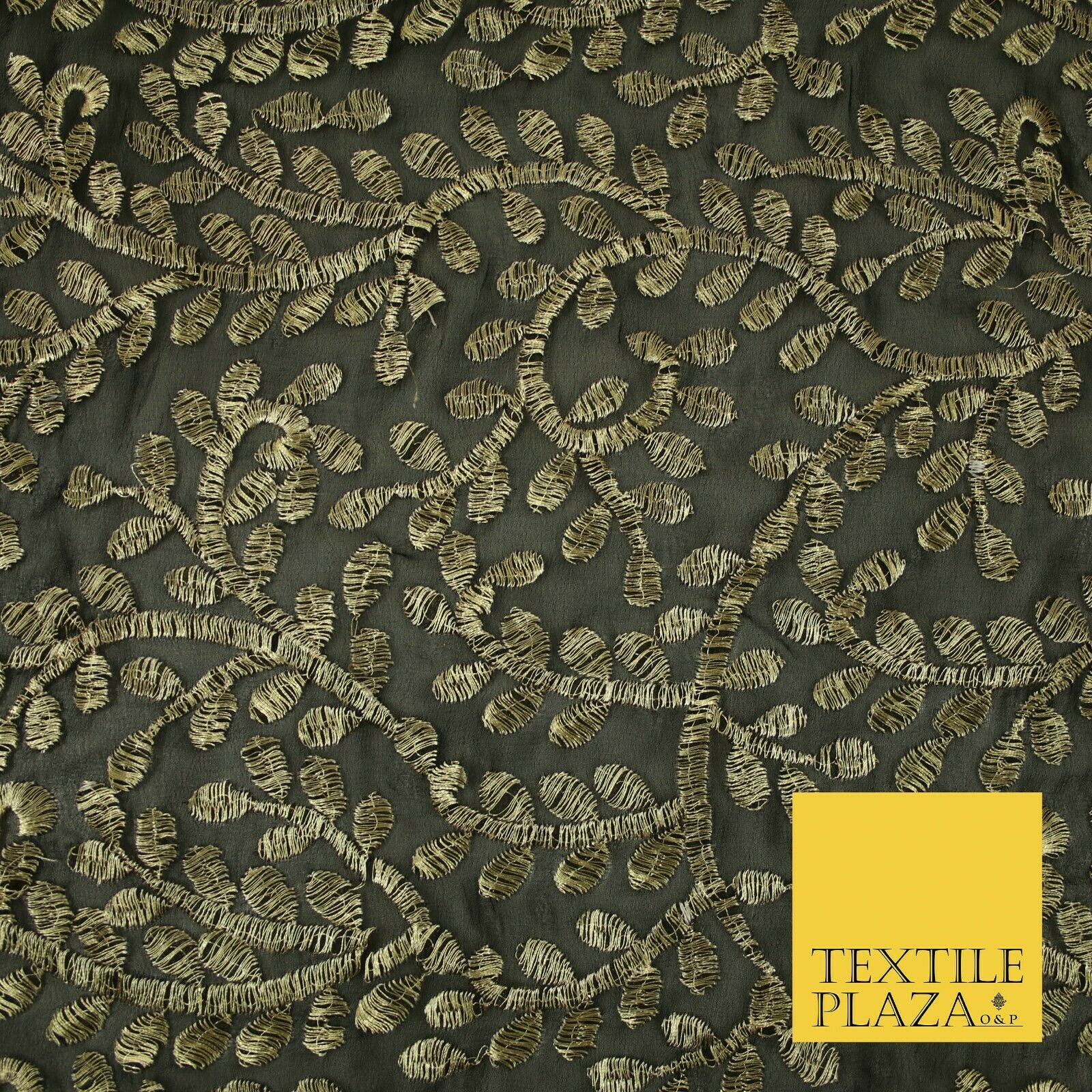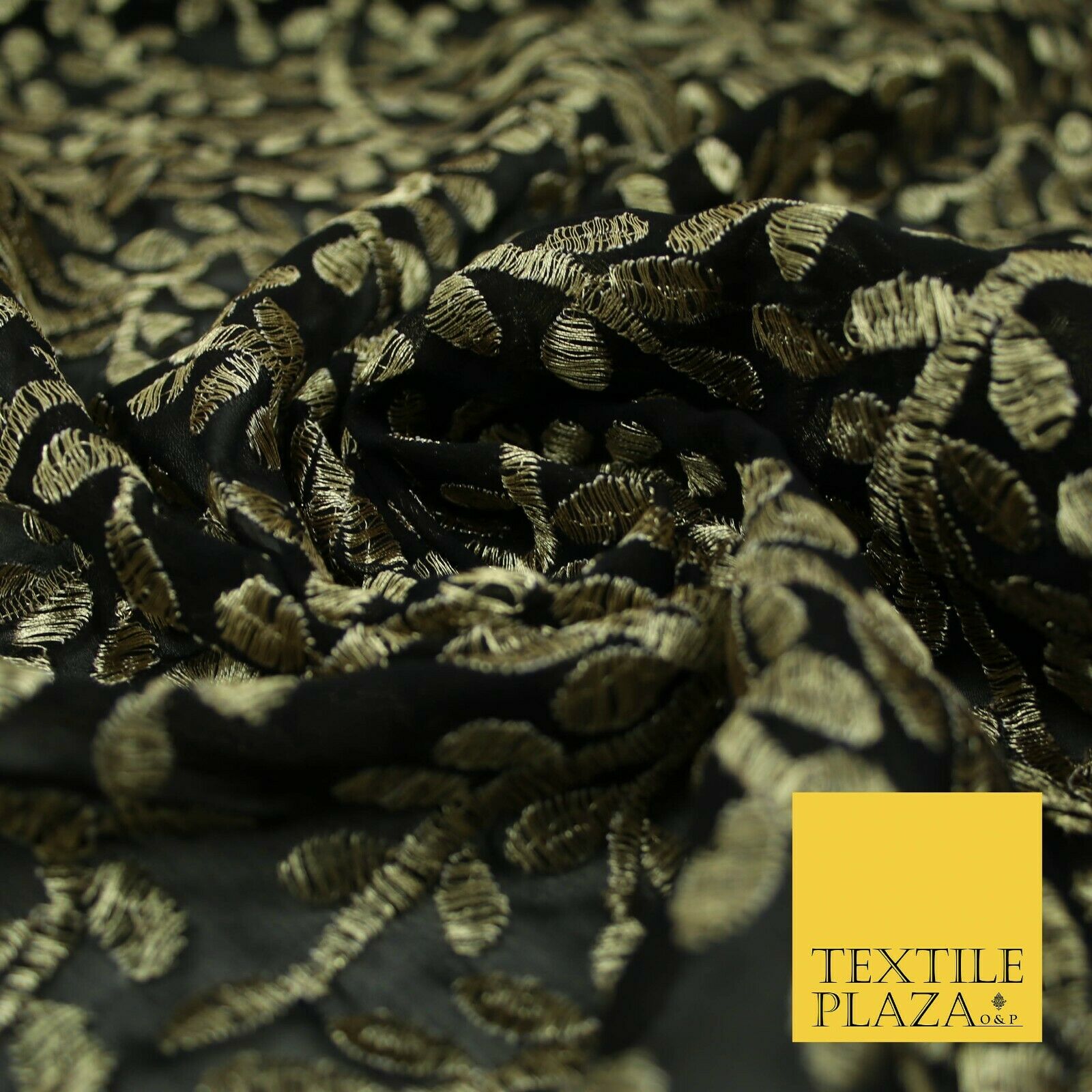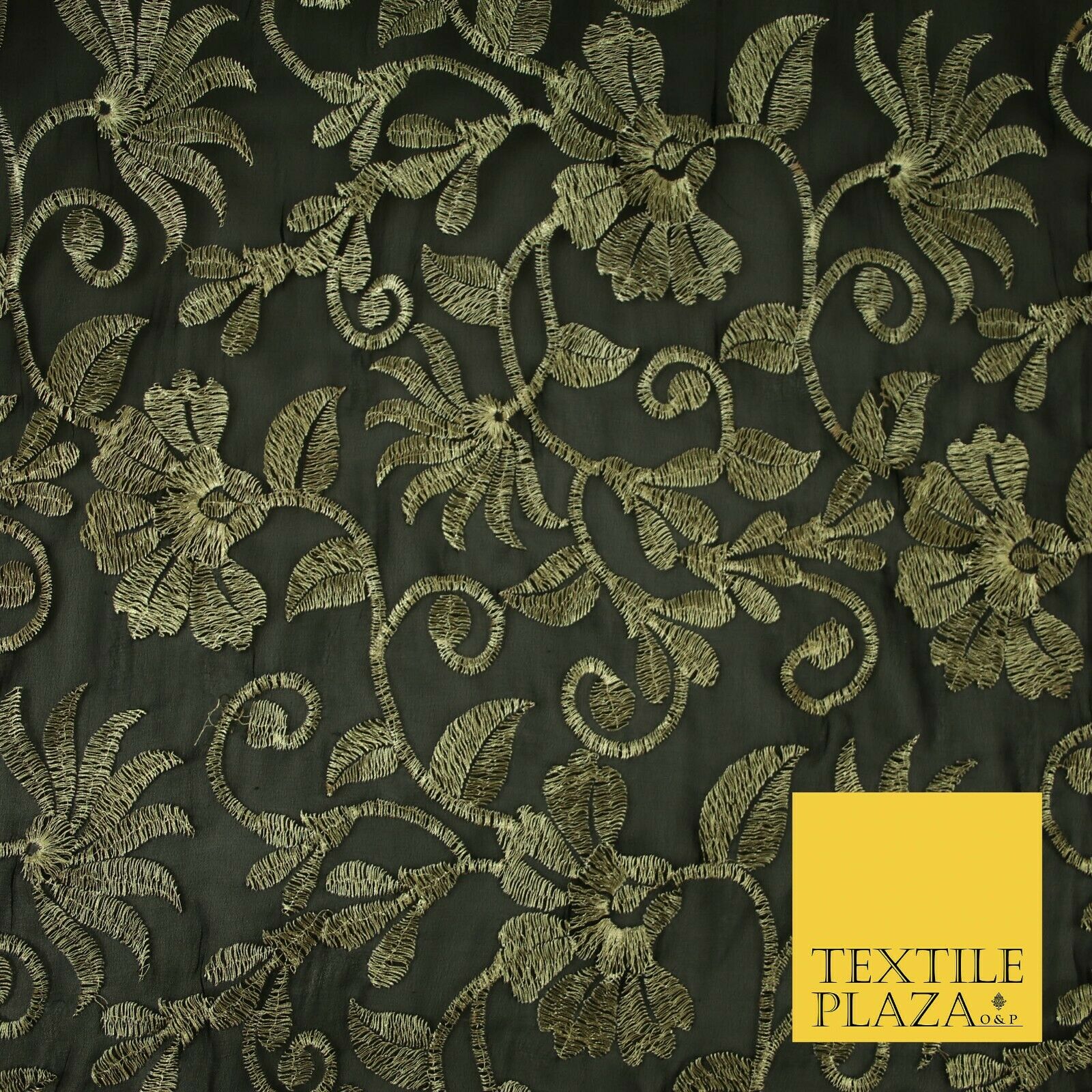 Black Metallic Floral Swirl Embroidery Bridal Wedding Dress Georgette Fabric