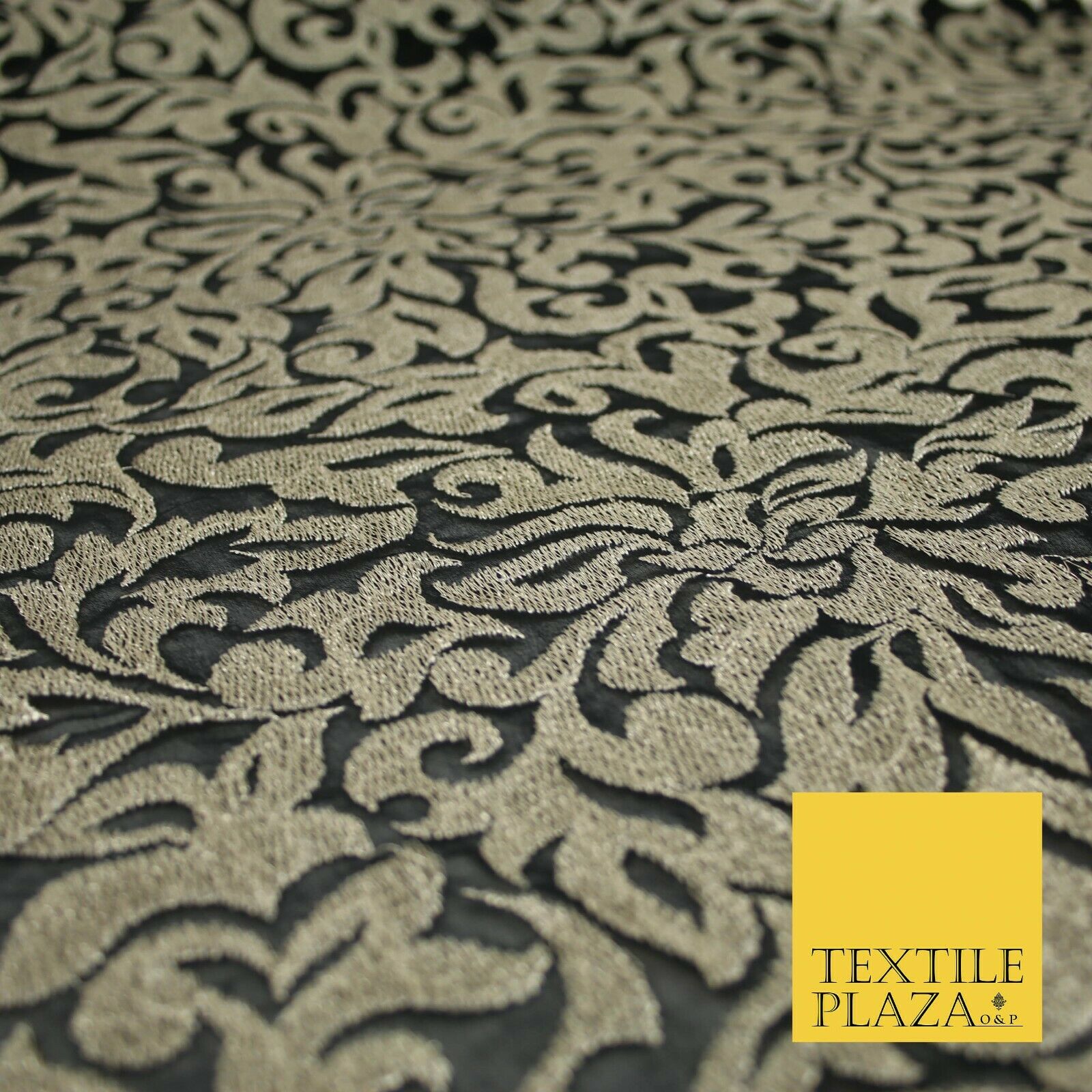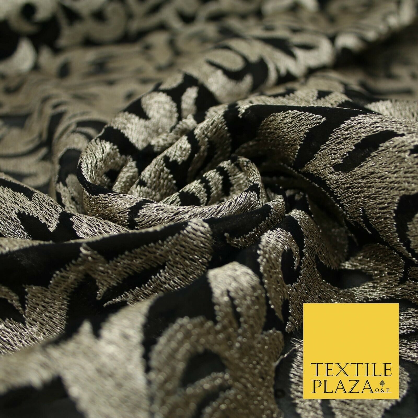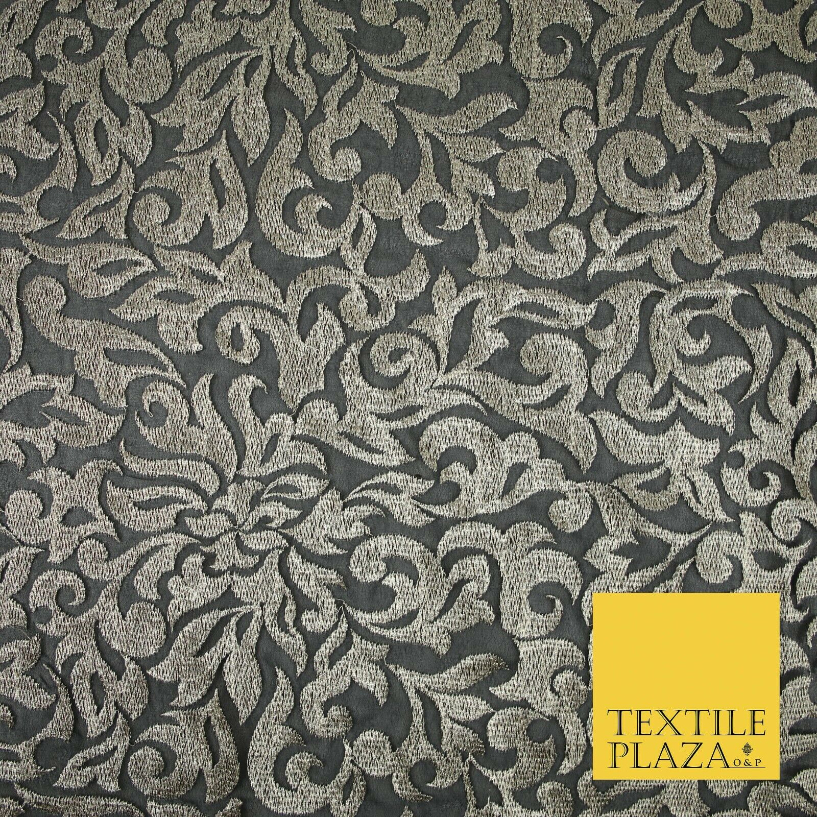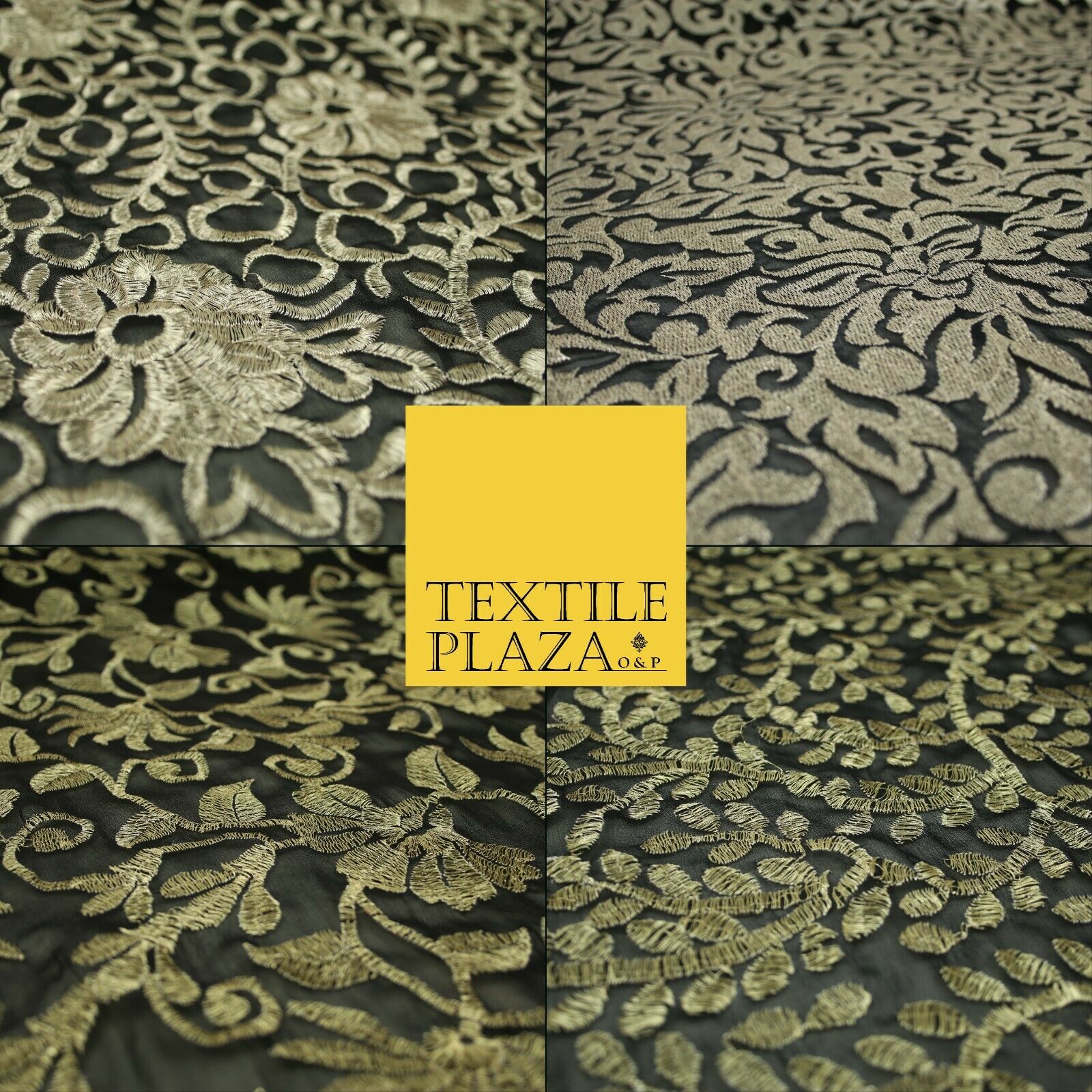 Black Metallic Floral Swirl Embroidery Bridal Wedding Dress Georgette Fabric