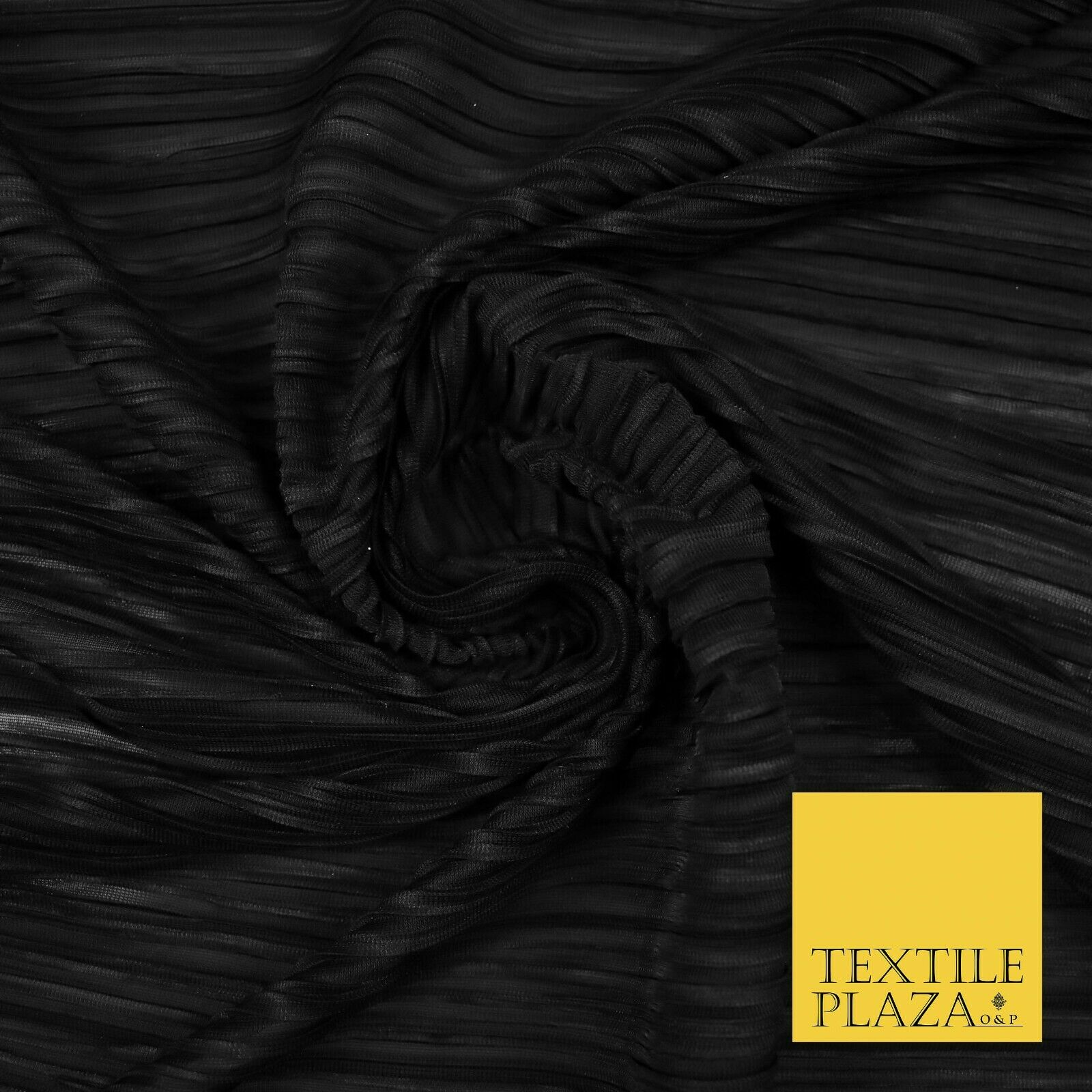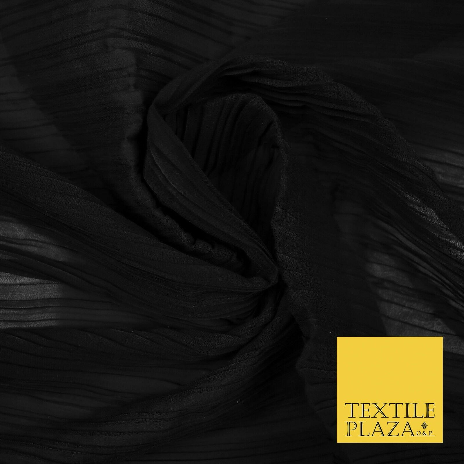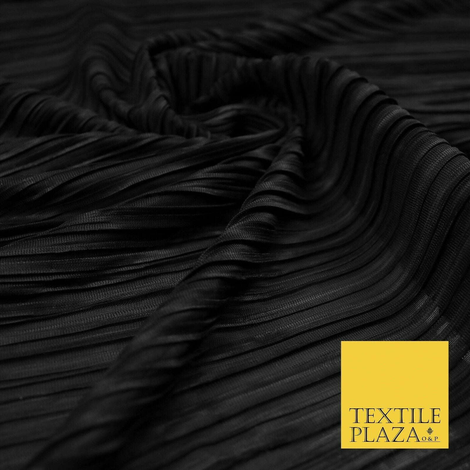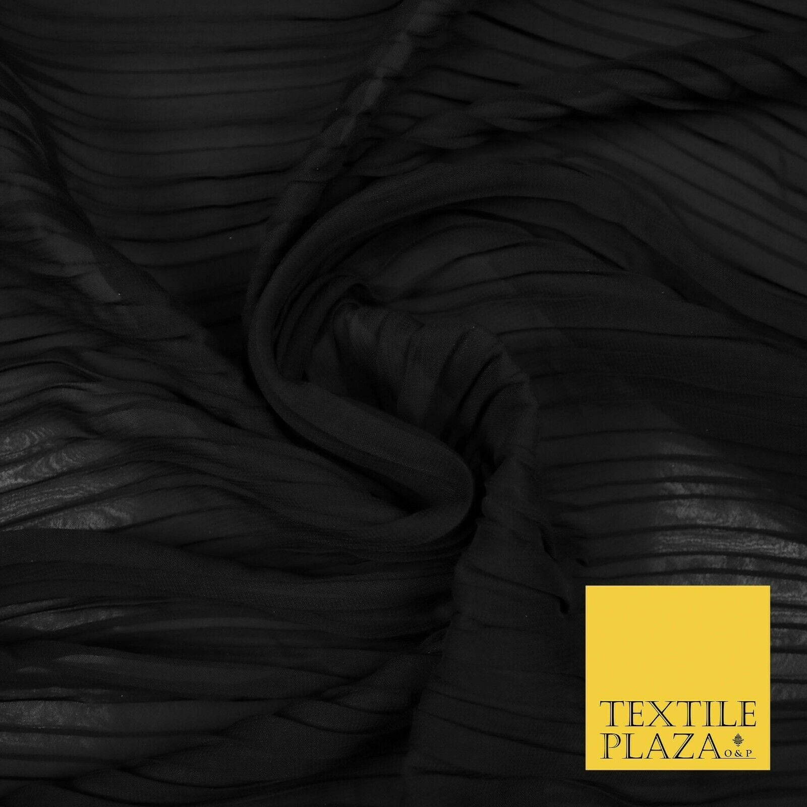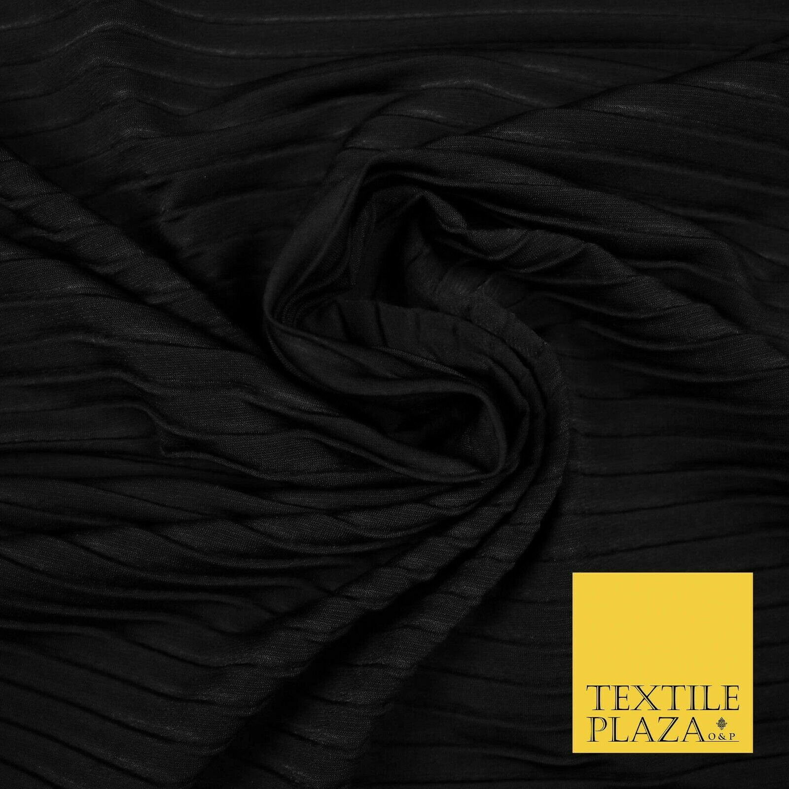 BLACK Mix Variety of Pleated Crinkle Striped Plisse Dress Fabrics 58" 13 DESIGNS
