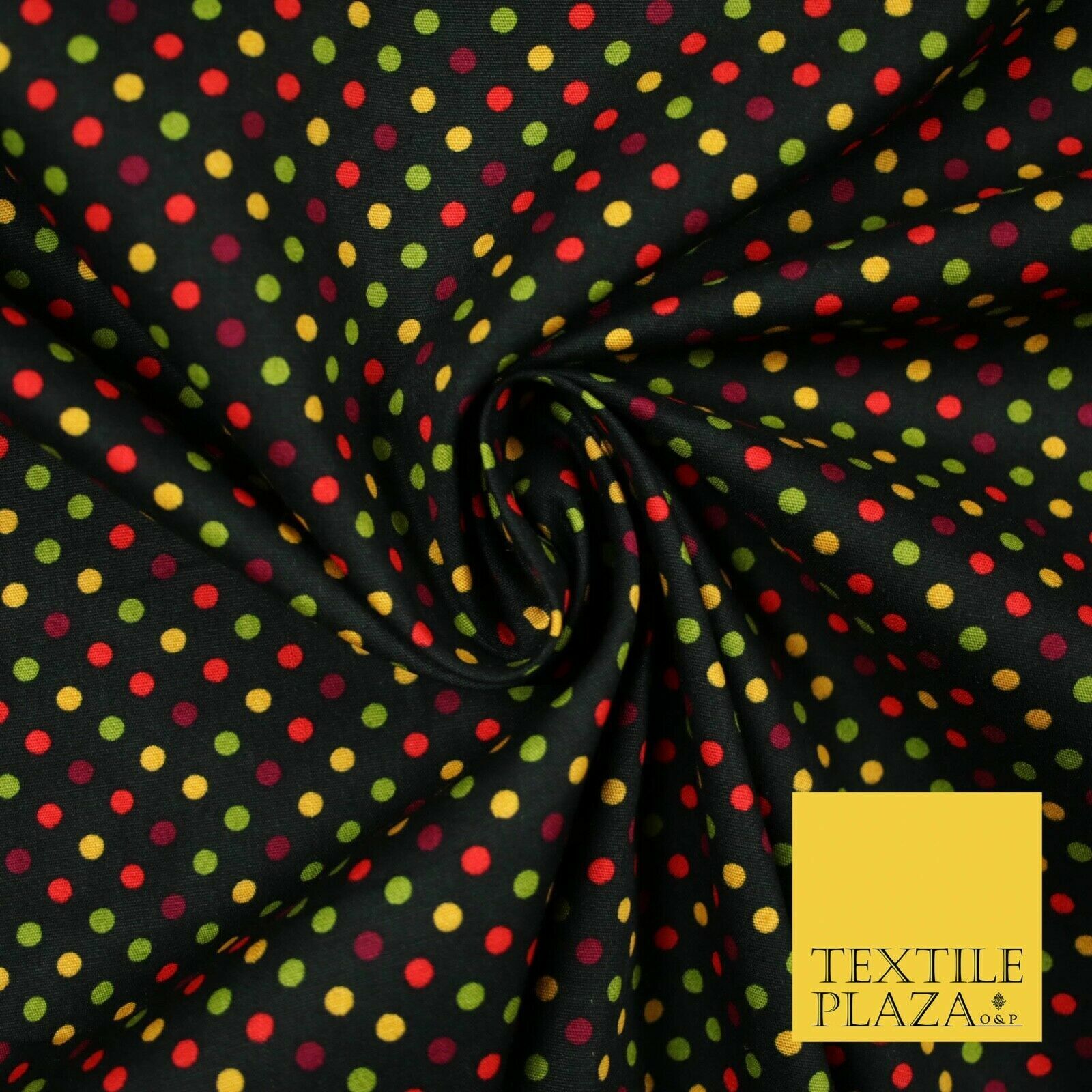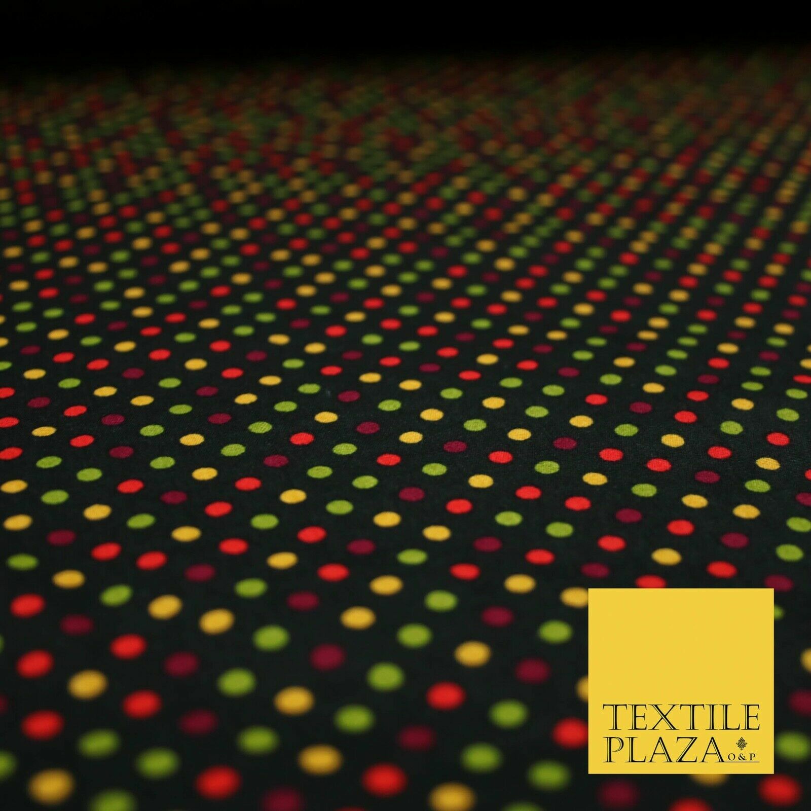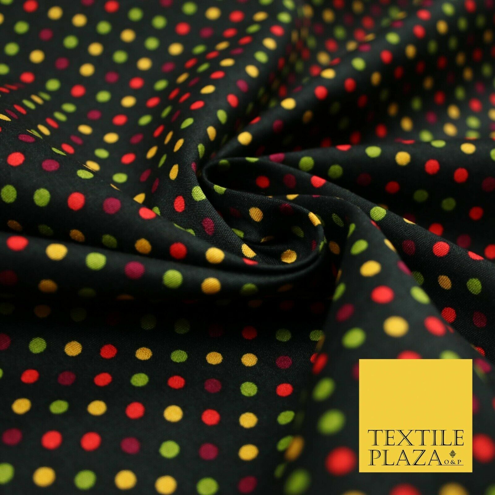 Black Multicolour Spots Polka Printed 100% Cotton Poplin Dress Fabric 59" 5535
