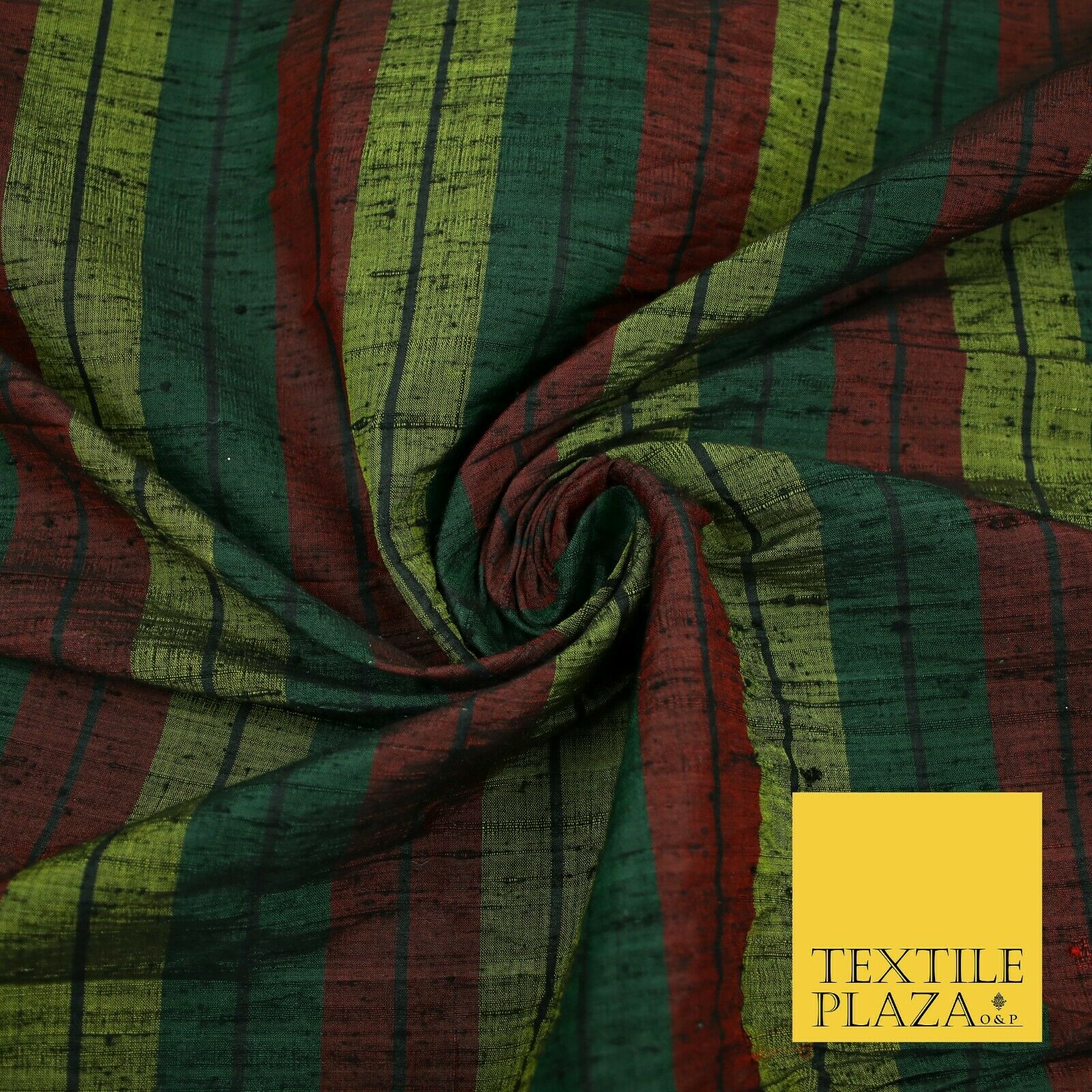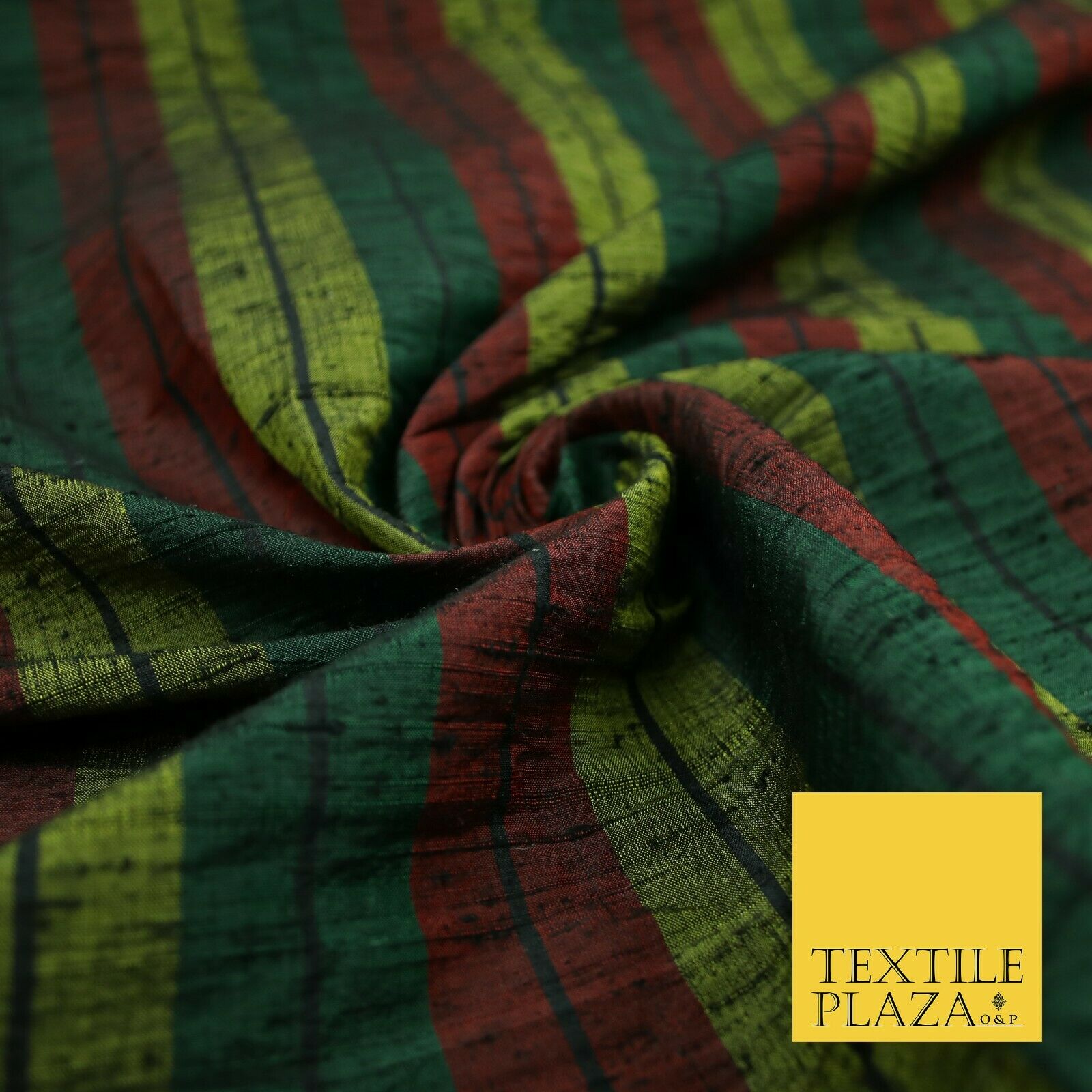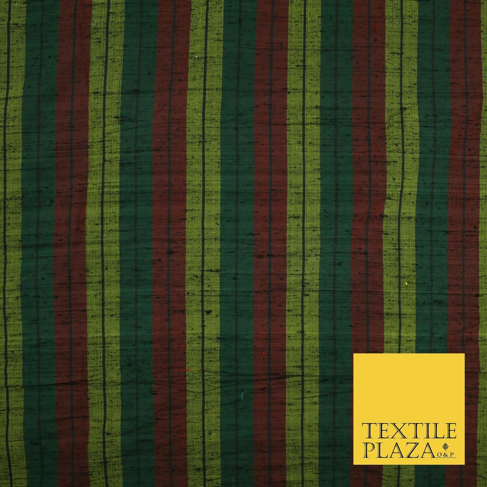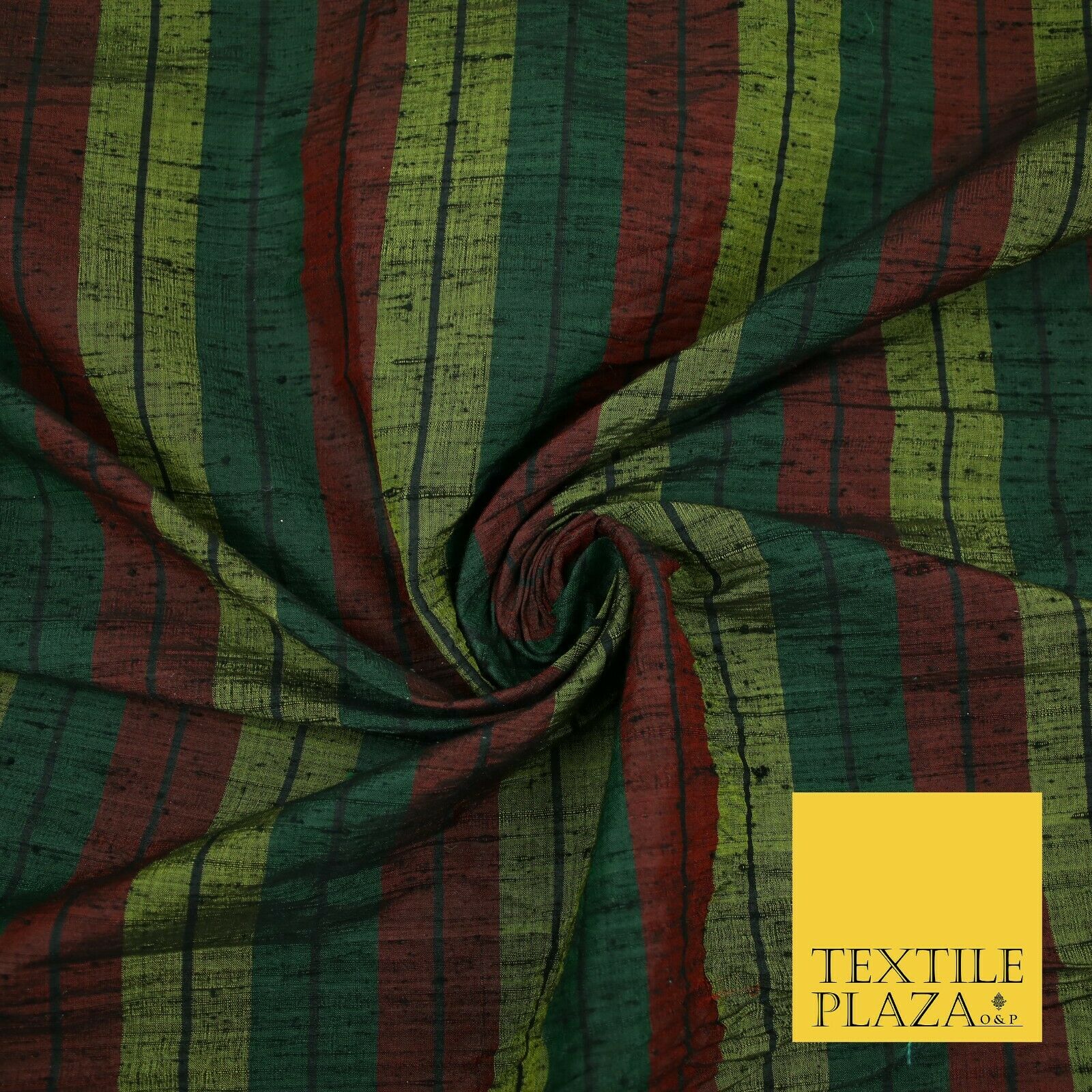 Black Olive Green Maroon Check Stripe Woven 100% PURE Dupion Raw Silk Fabric2485