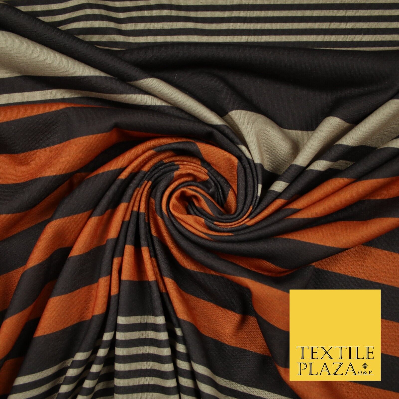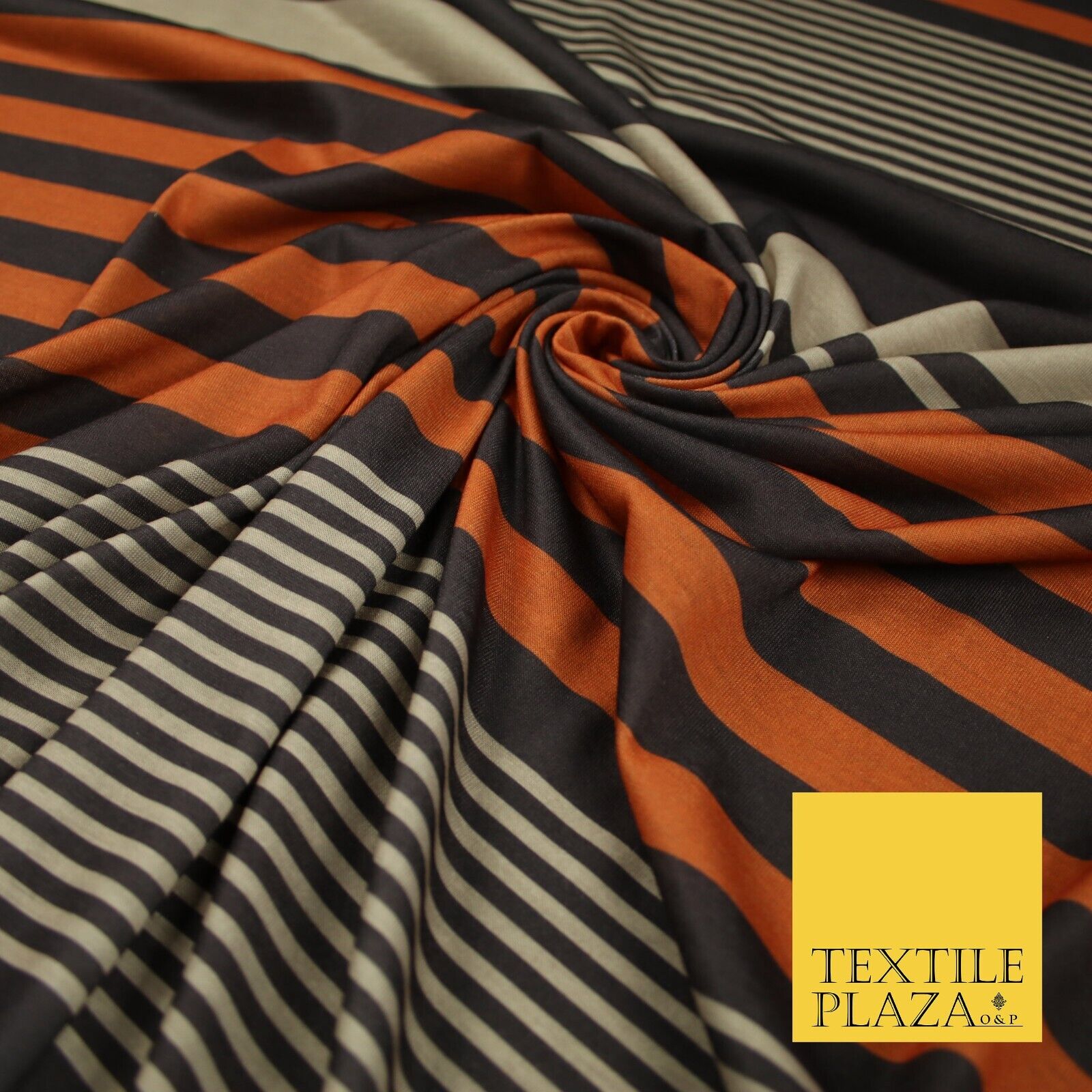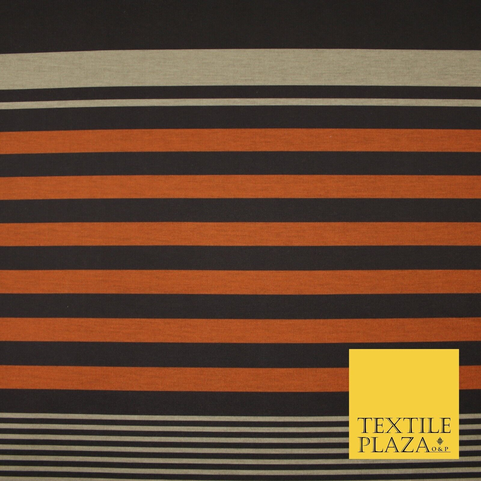 Black Orange Beige Multi Stripe Print Soft Touch Stretch Jersey Fabric 56" 6624