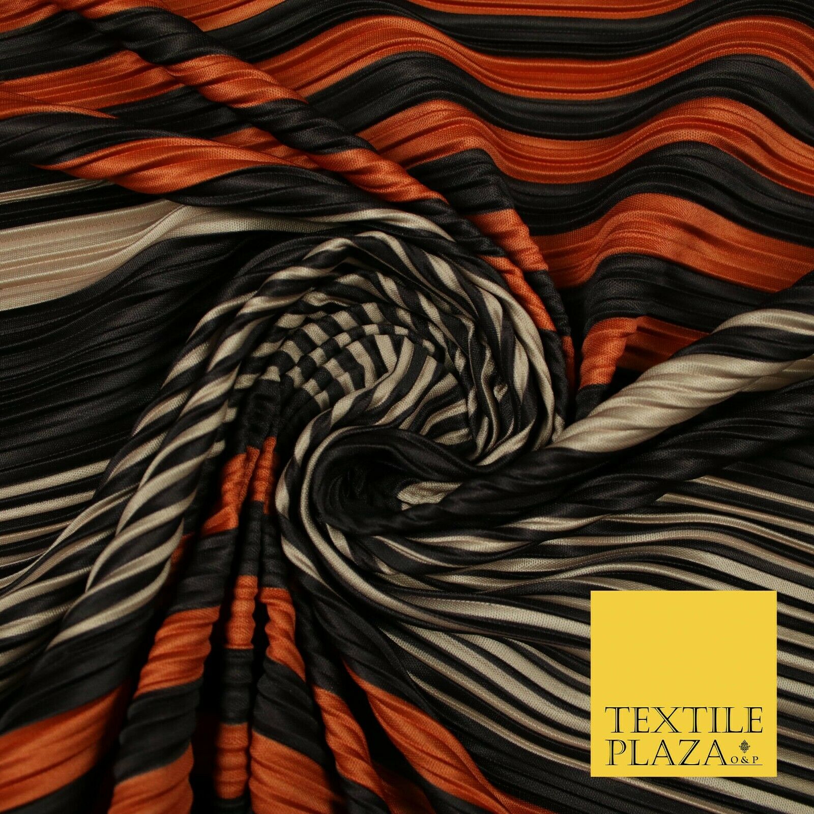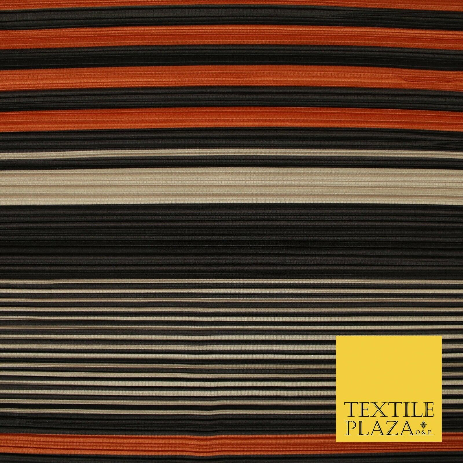 Black Orange Nude Mix Stripe Lines Printed Pleated Plisse Jersey Fabric 5407