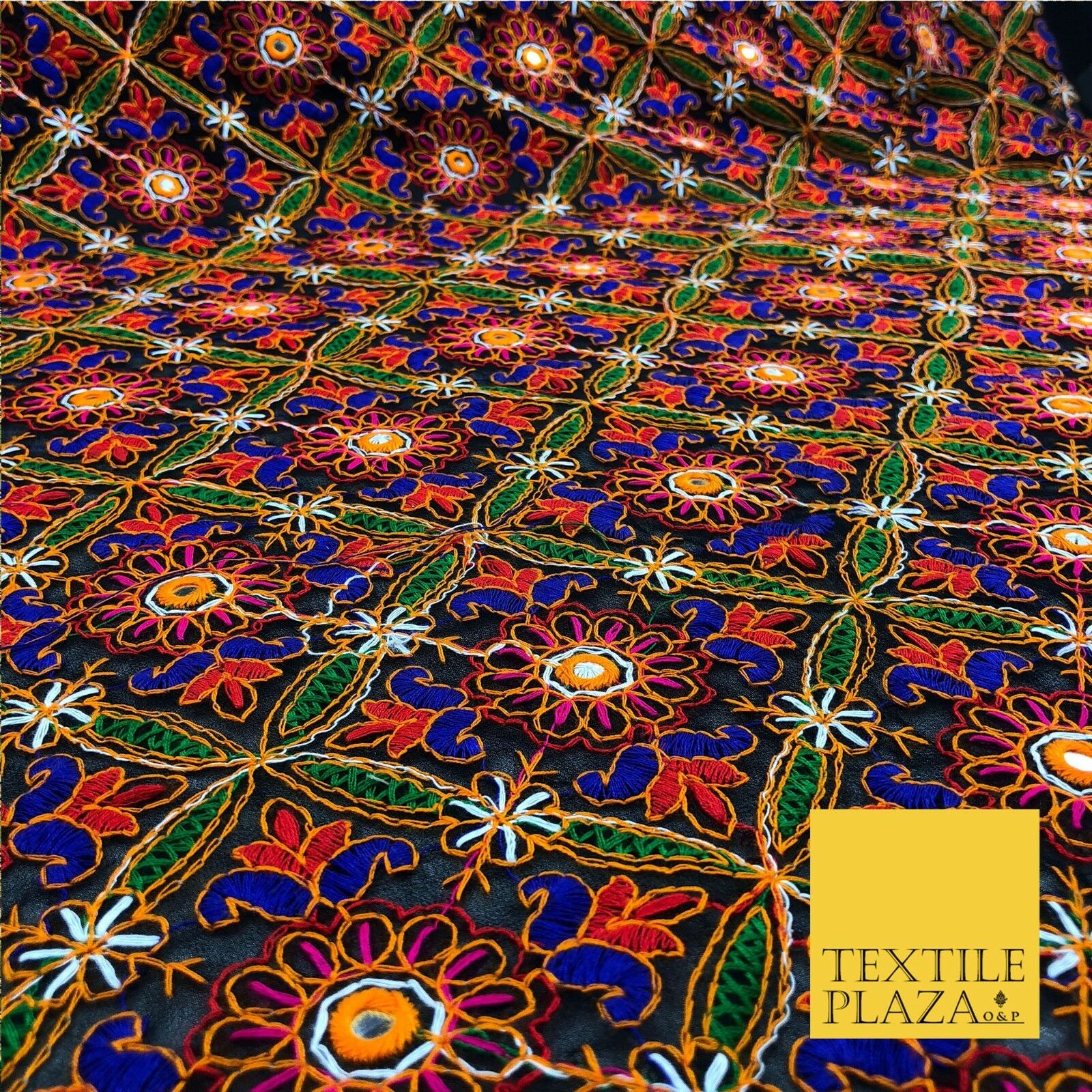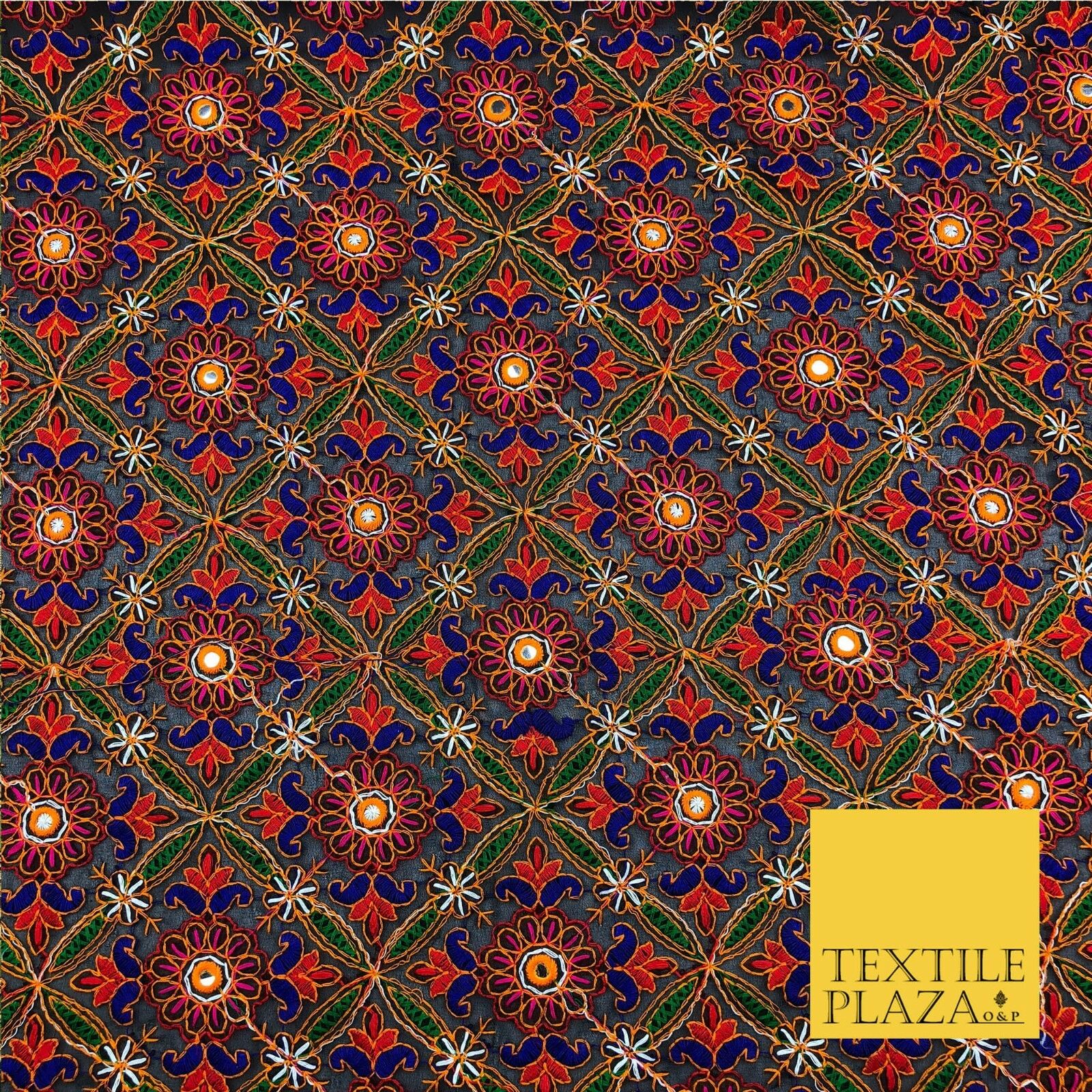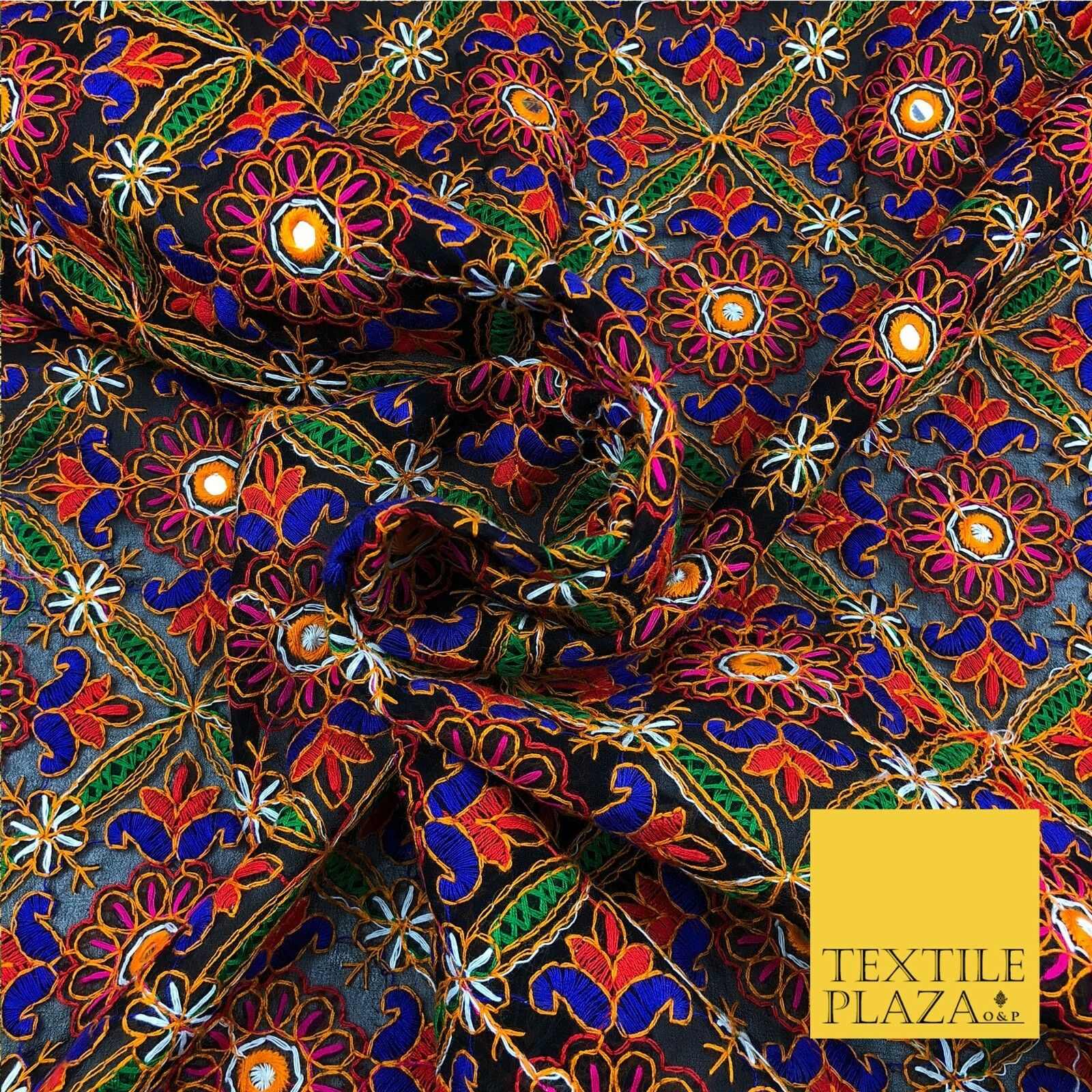 Black Phulkari Georgette Fancy Colourful Threadwork Diamond Pattern Dress JE313