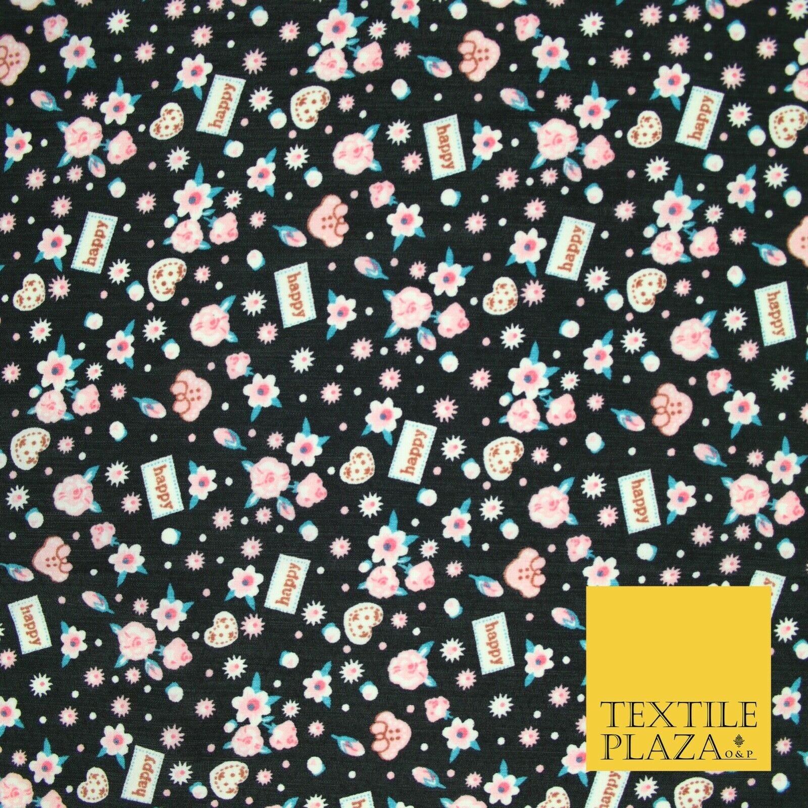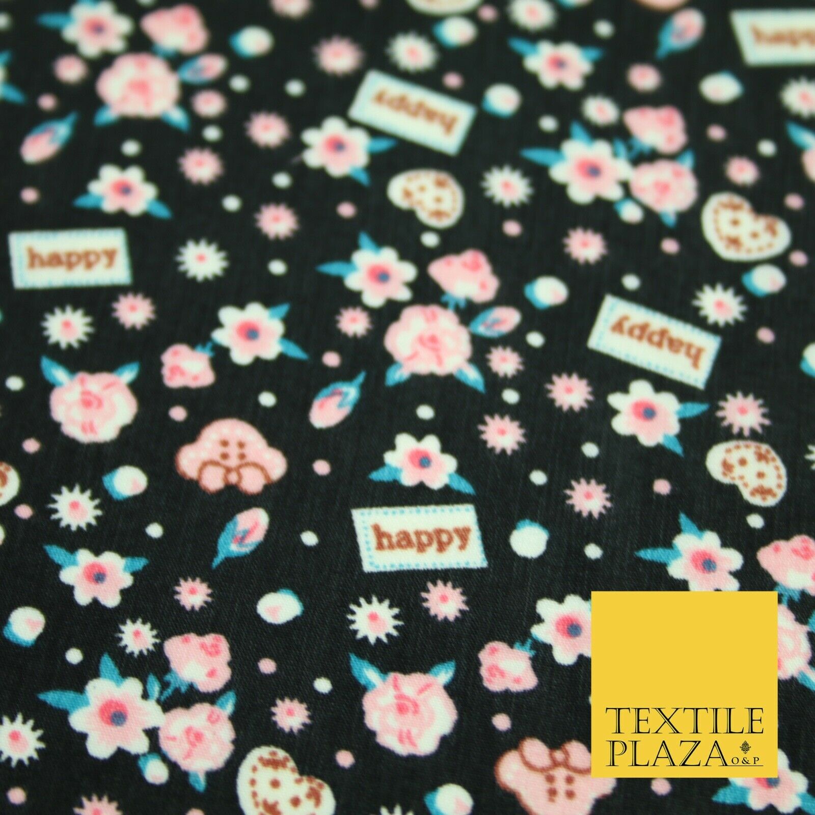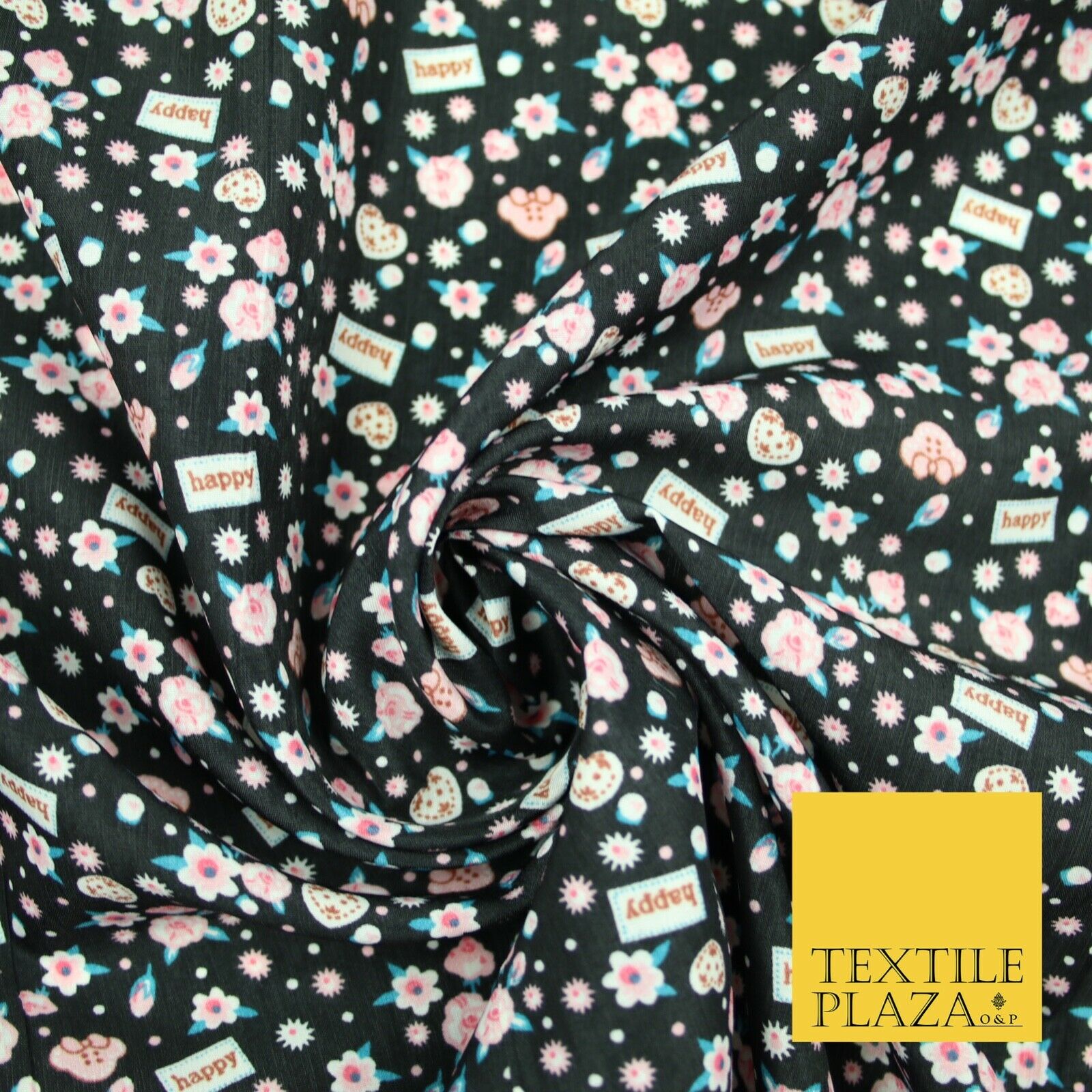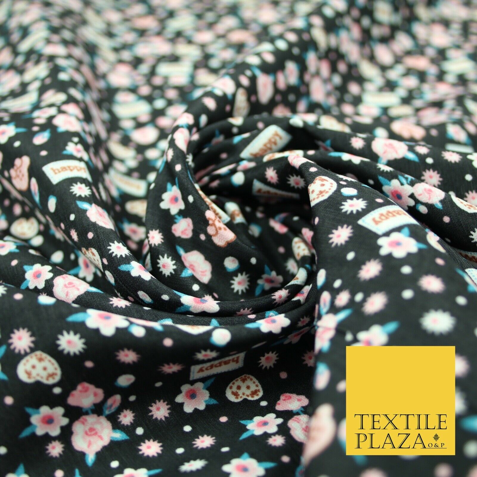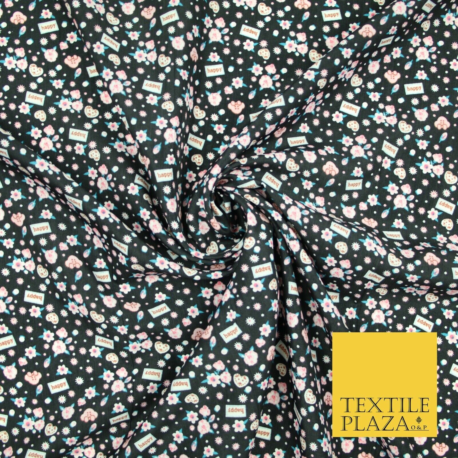 Black Pink Ditsy Small Floral Happy Printed Crepe Polyester Dress Fabric 2728