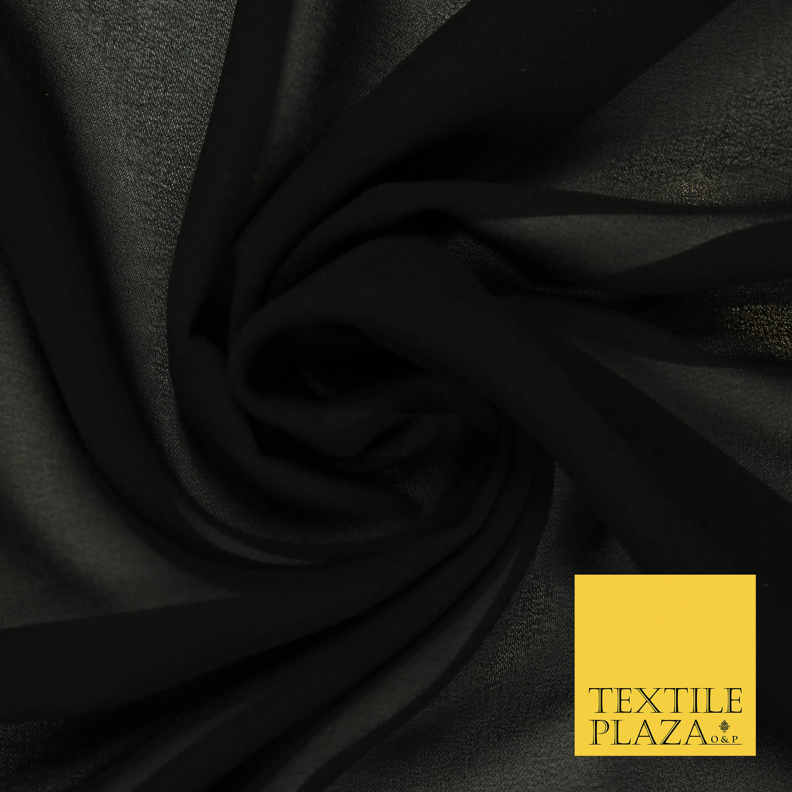 Black Premium Plain Dyed Chiffon Fine Soft Georgette Sheer Dress Fabric 5738