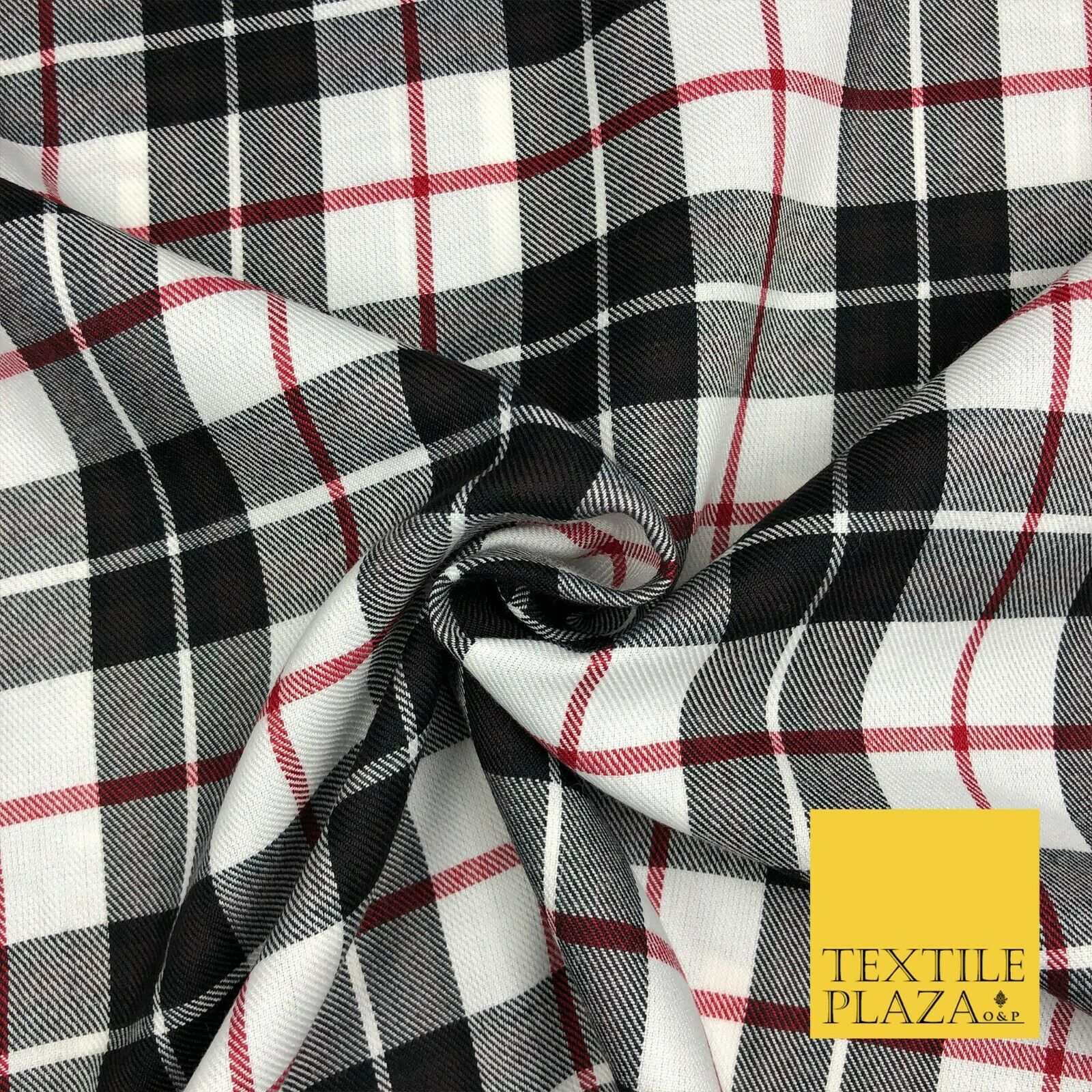Black Red White Classic TARTAN Polyester Viscose Fabric 58" Craft Dress 1289