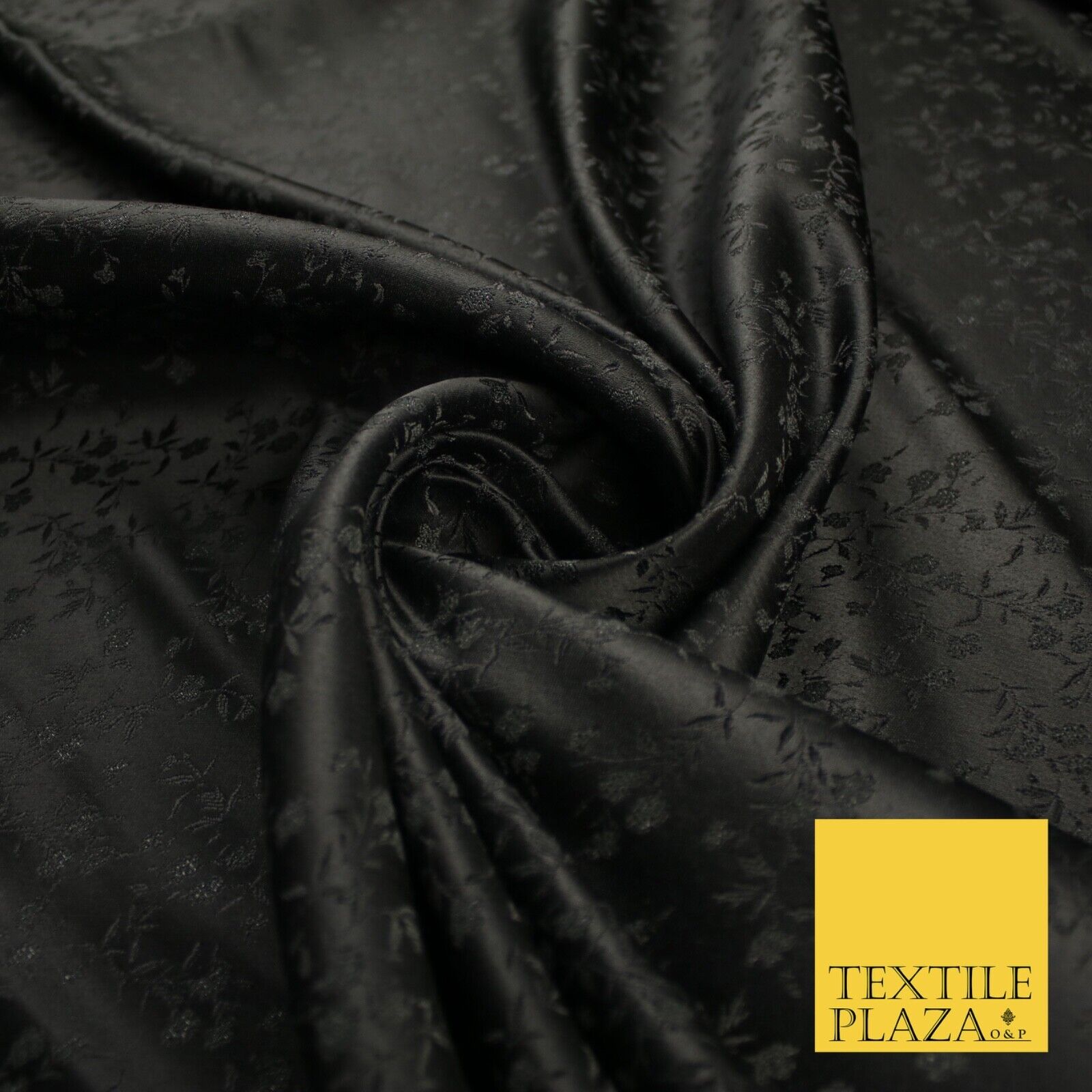 Black Self Jacquard Floral Ditsy Leaf Vine Woven Jacquard Dress Fabric 9926