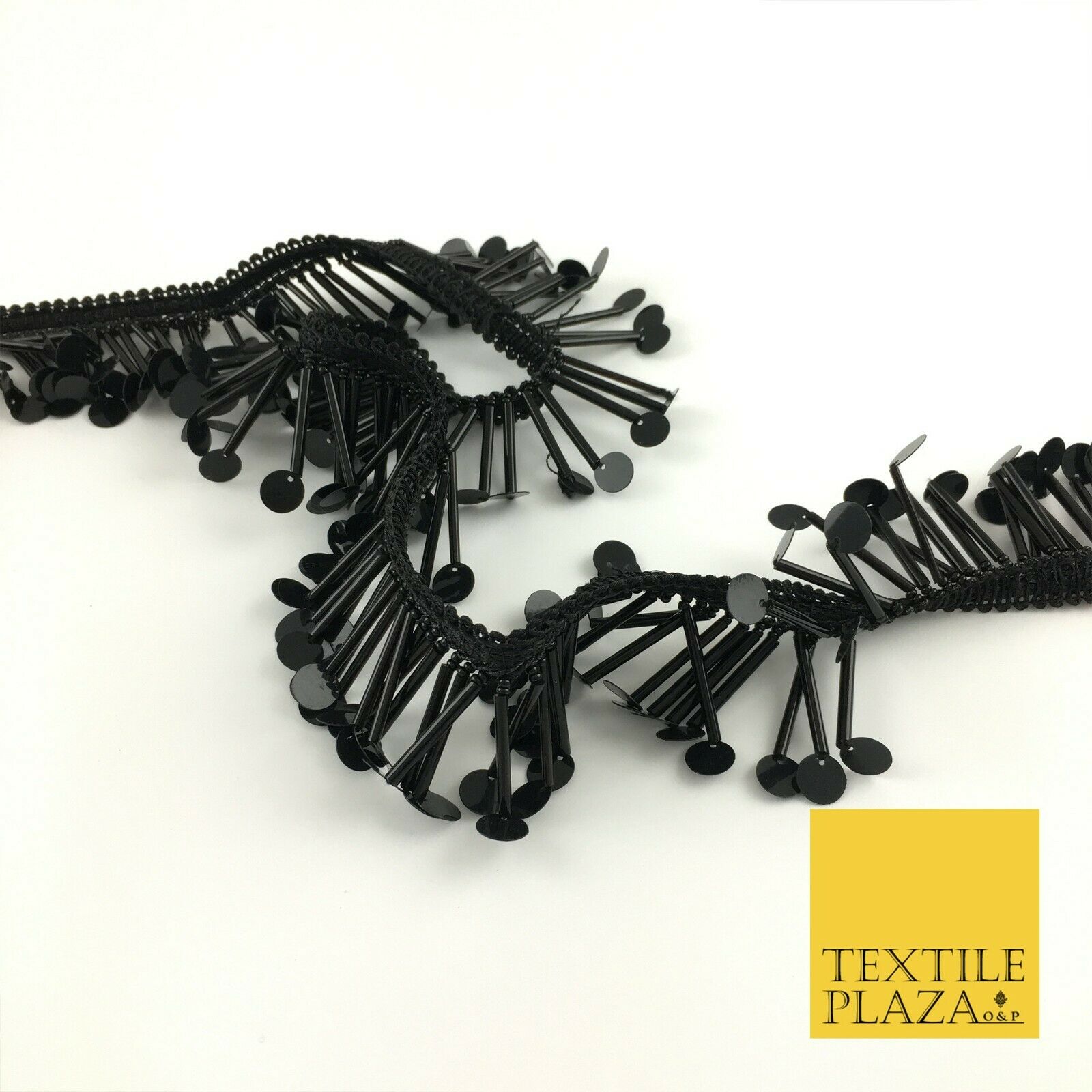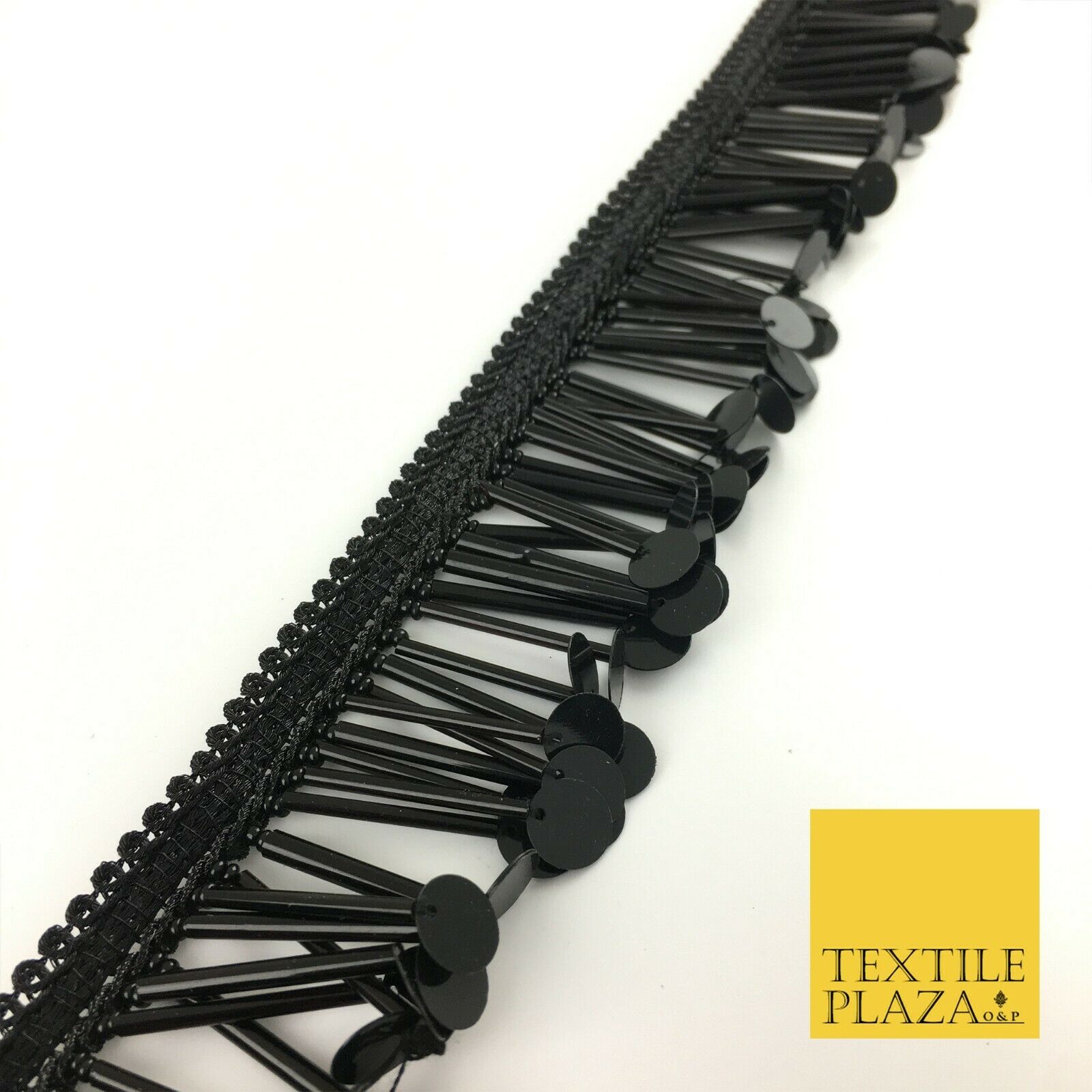 Black Sequin Glass Tube Fringe Tassel Drop Trim Ribbon Border Dance Lace (X179)