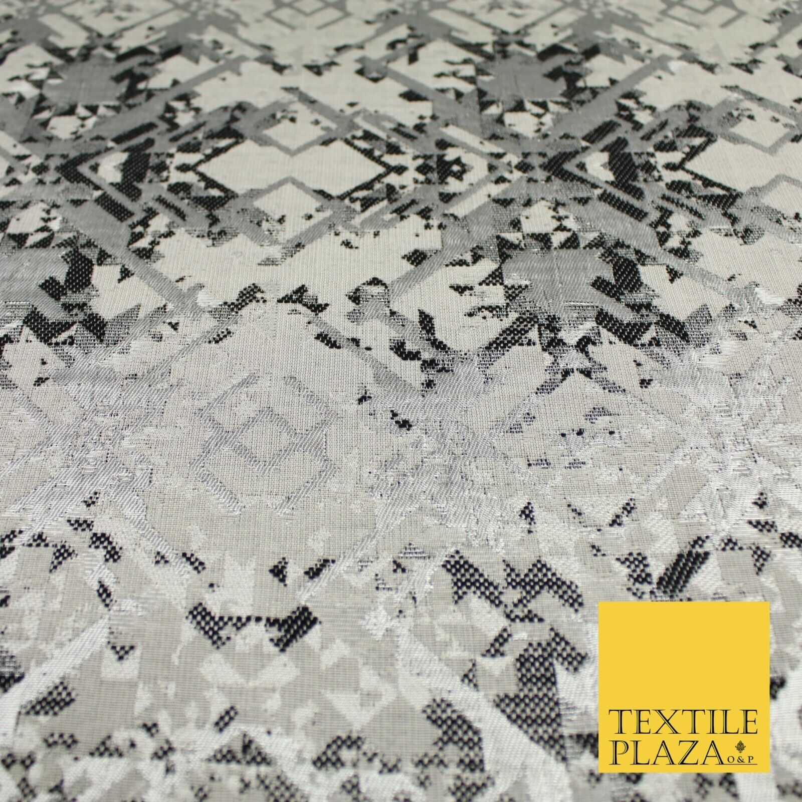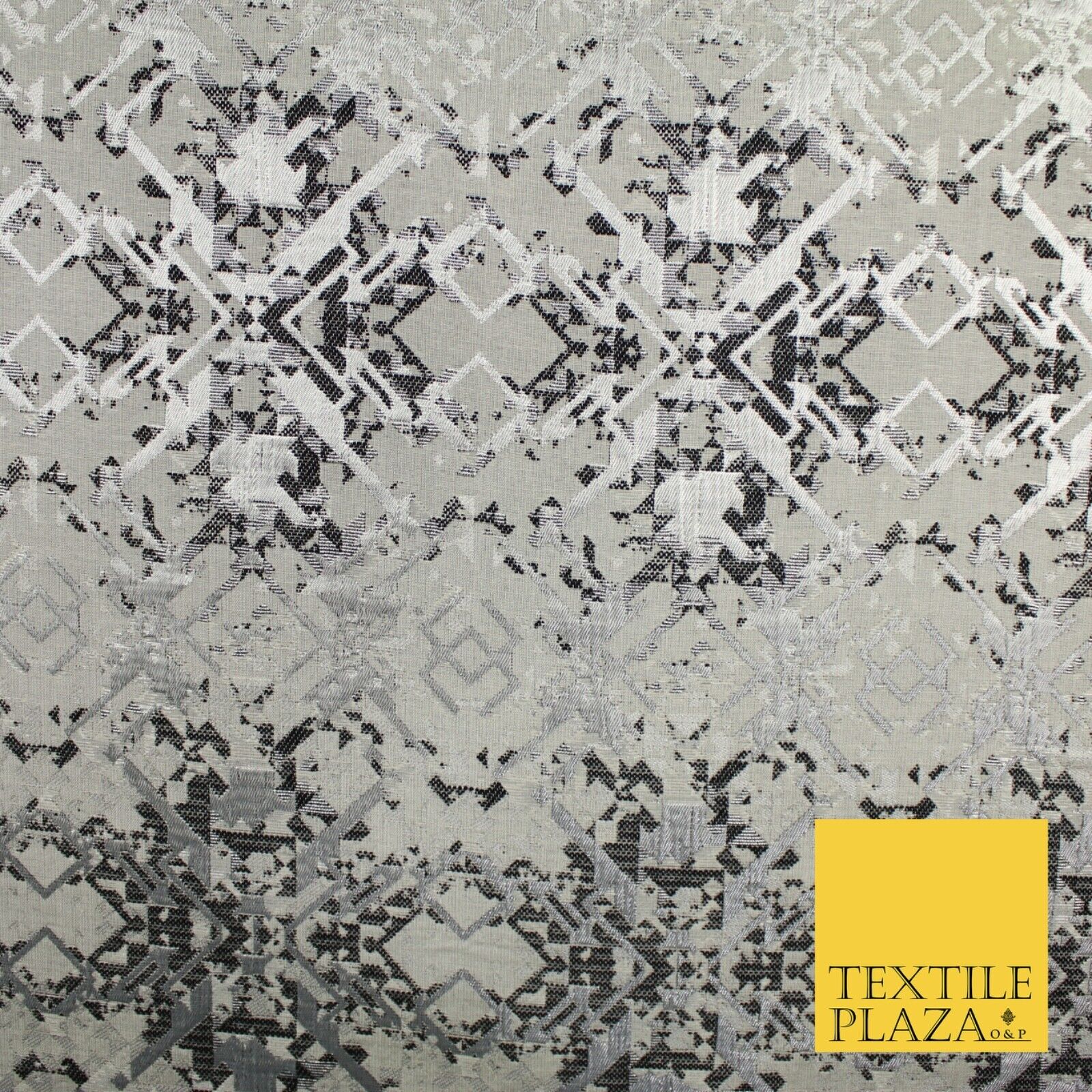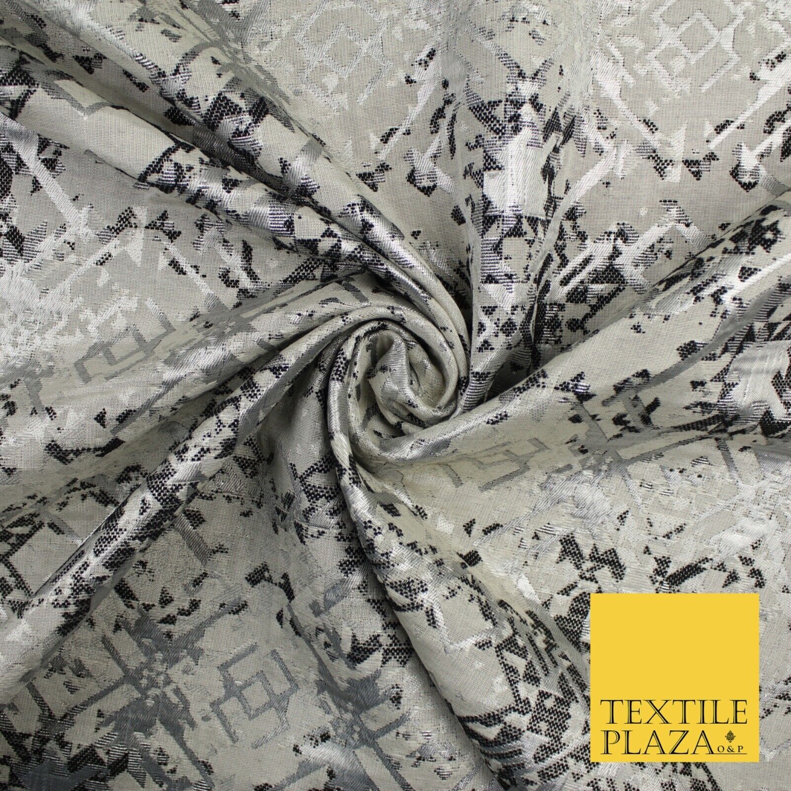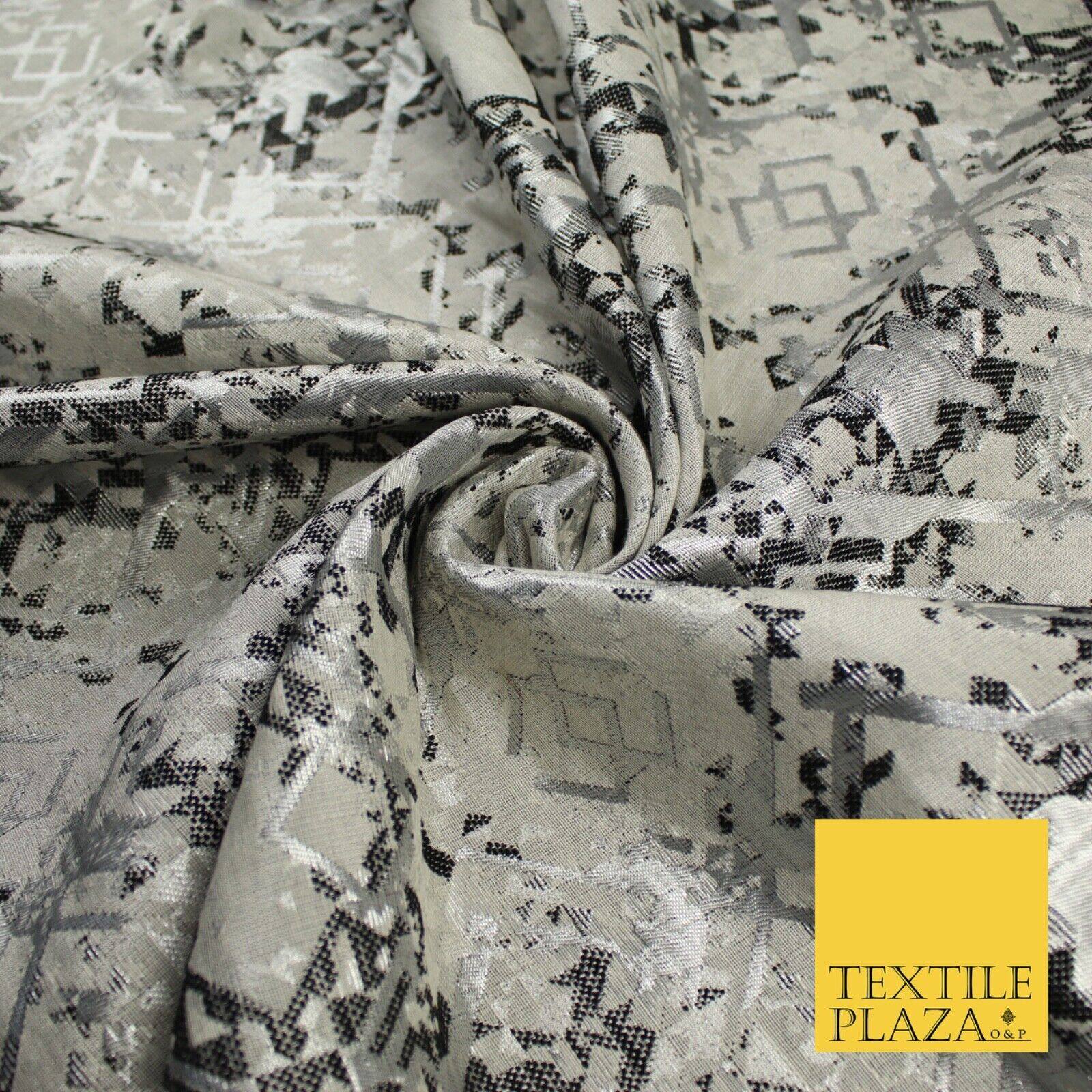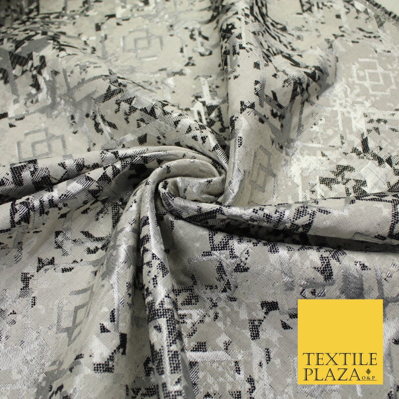 Black Silver Geometric Squares Funky Metallic Textured Brocade Dress Fabric 9922