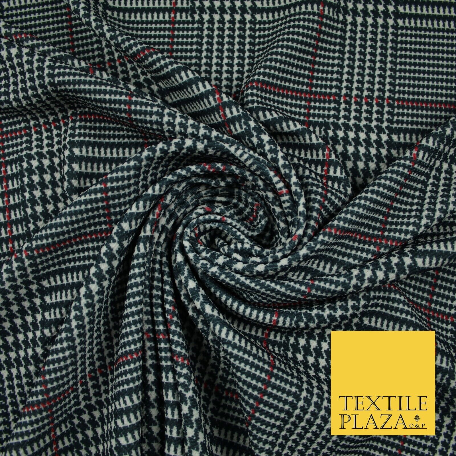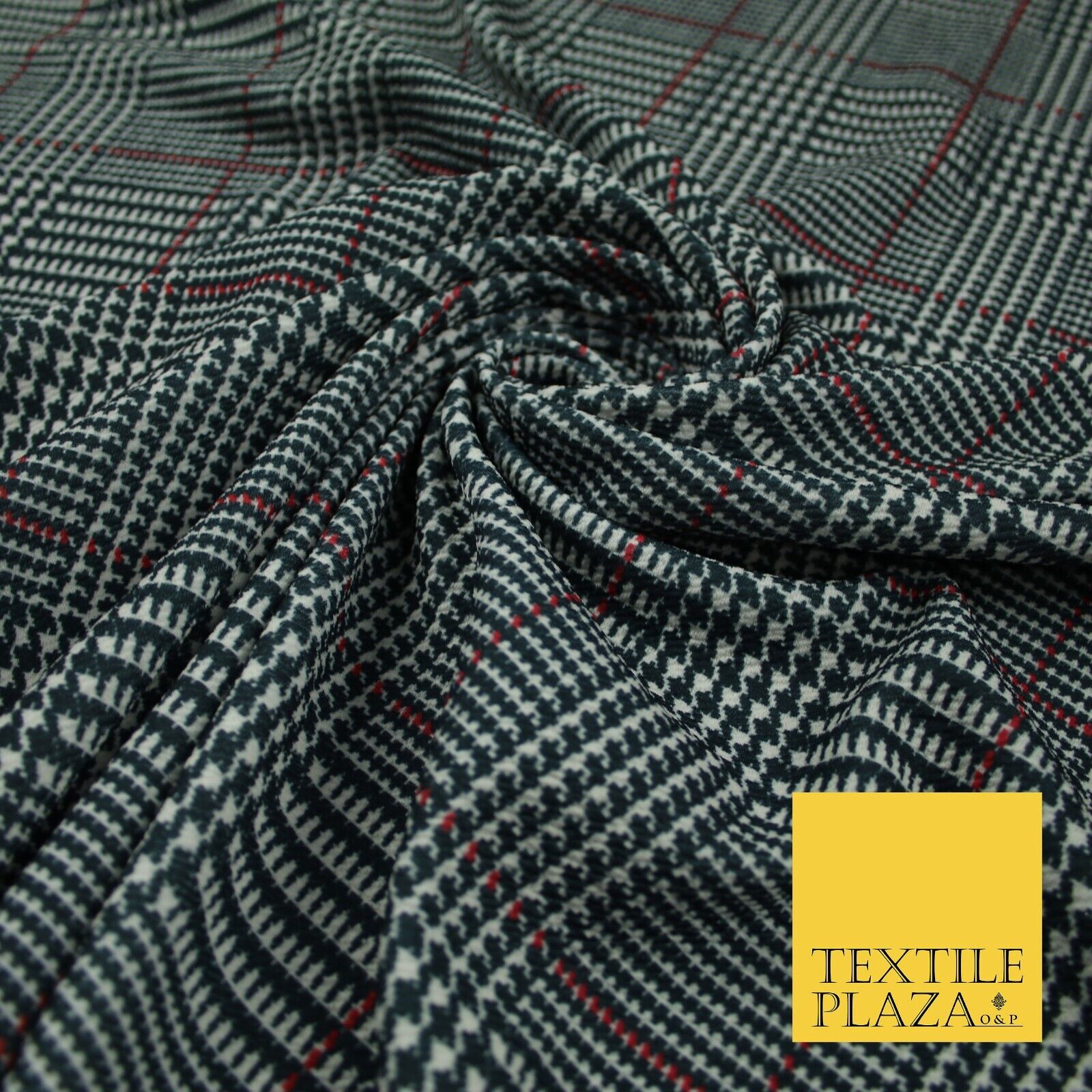 Black Traditional Check Tartan Print Soft Touch Stretch Jersey Fabric 56" 6609