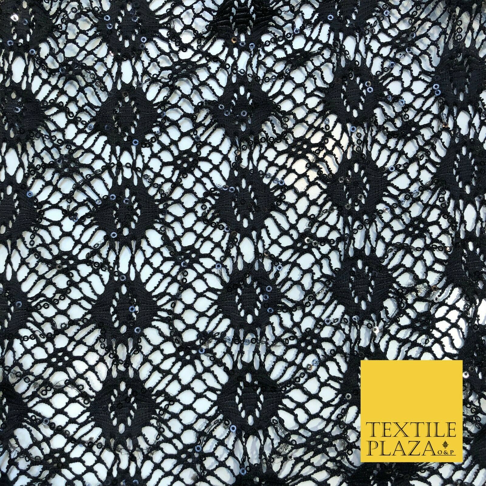 BLACK Webbed Sequin Lace Dress Fabric Fancy Craft Dance Sparkle 1239