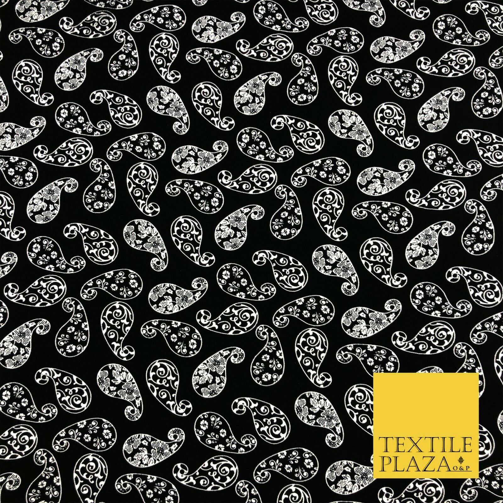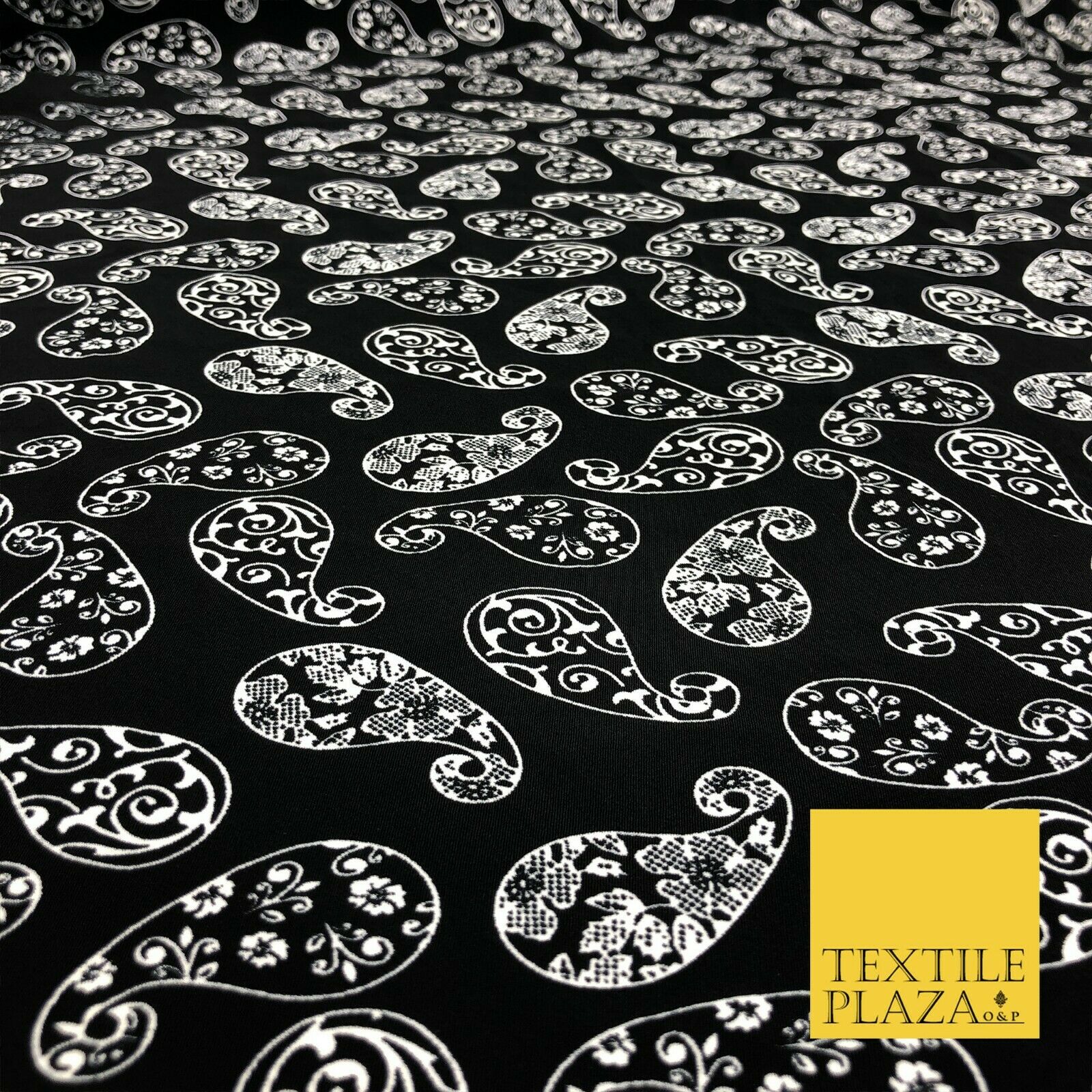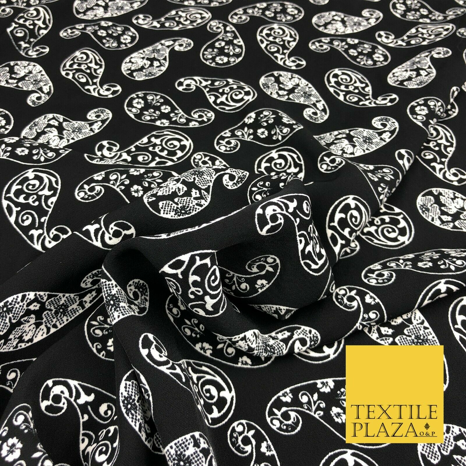 Black White Fancy Paisley Digital Print Stretch Crepe Dress Fabric Craft 1319