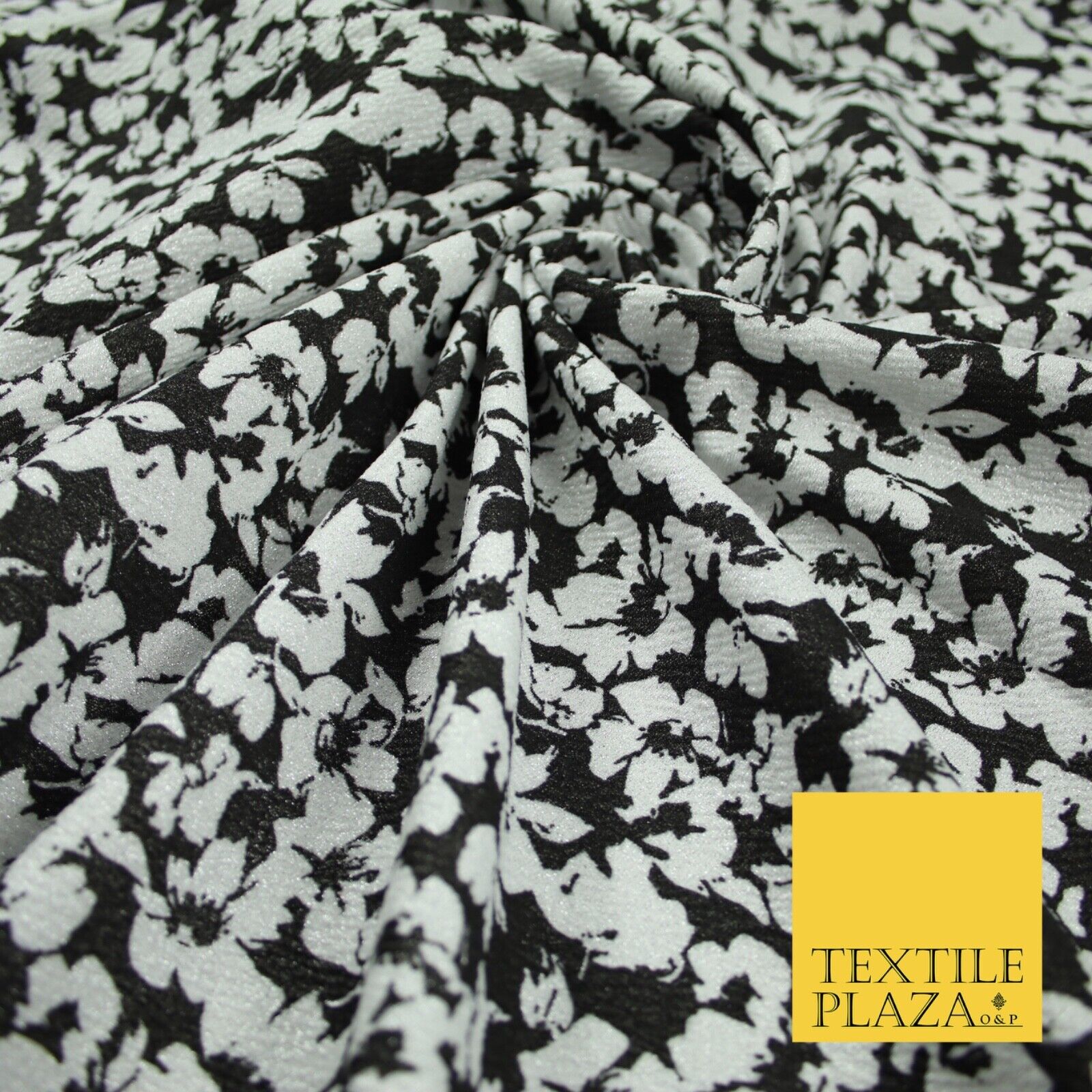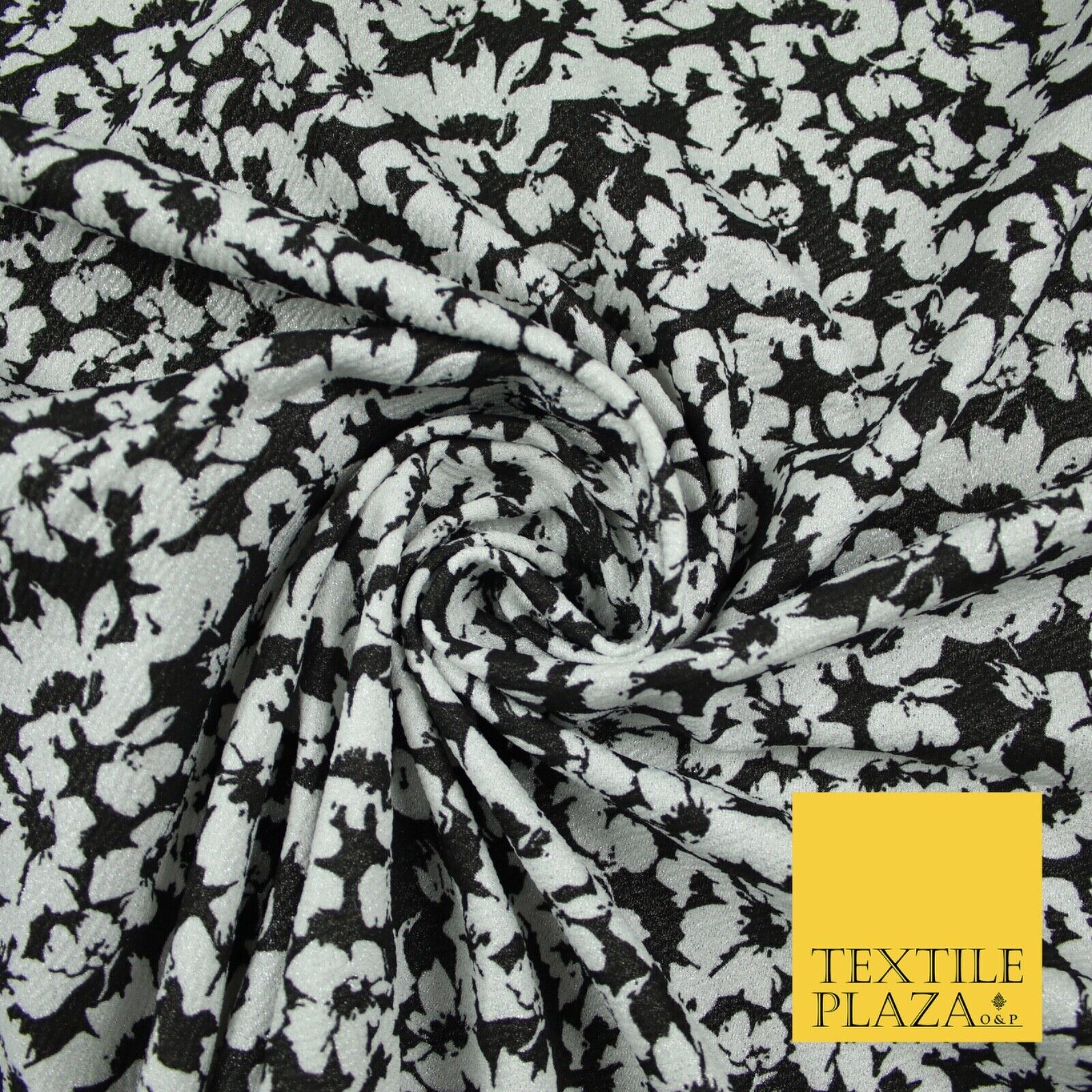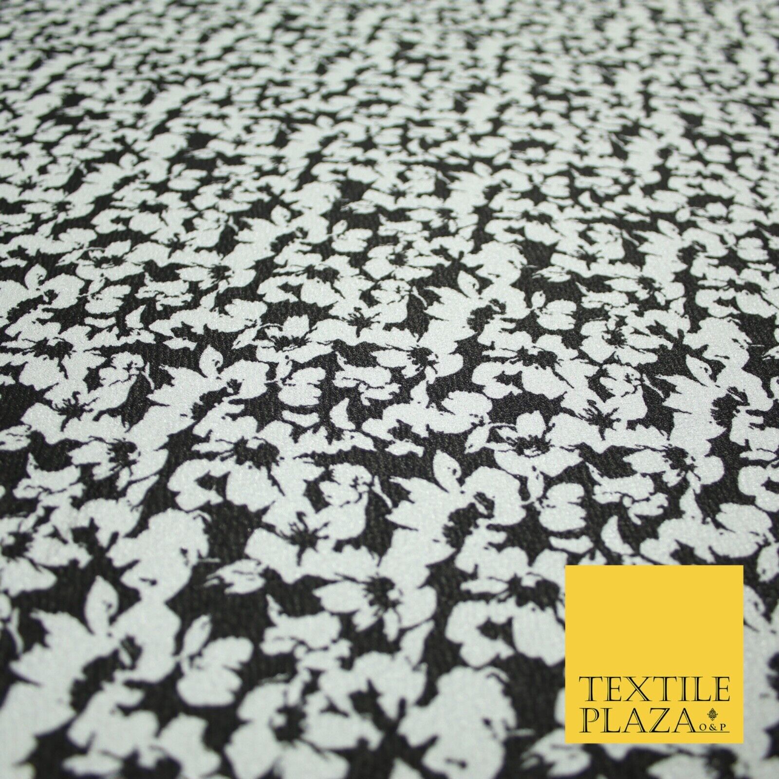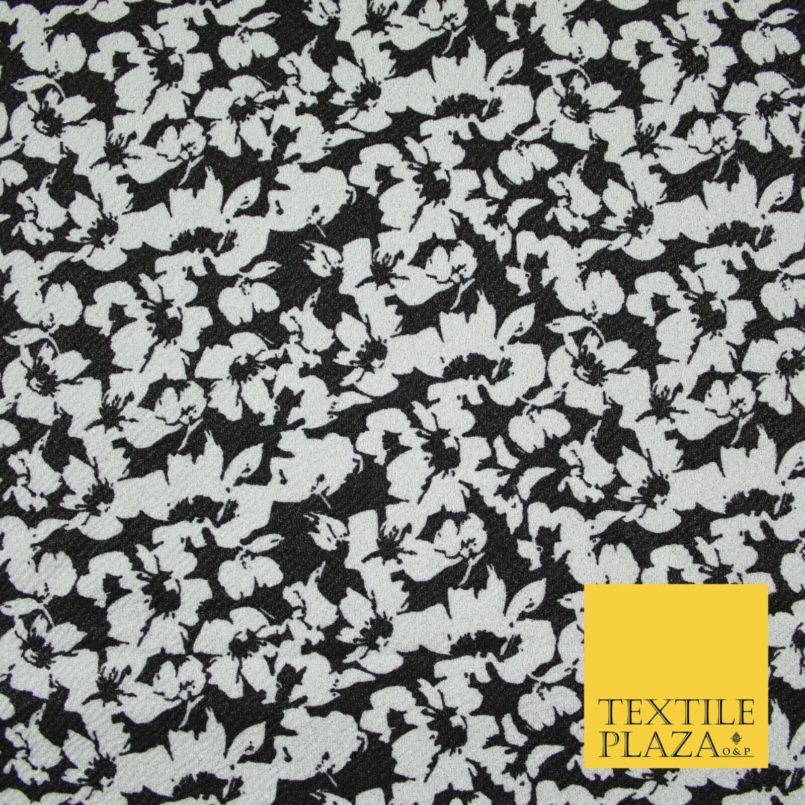 Black White Floral Ditsy Print Soft Touch Stretch Jersey Fabric 56" 6731