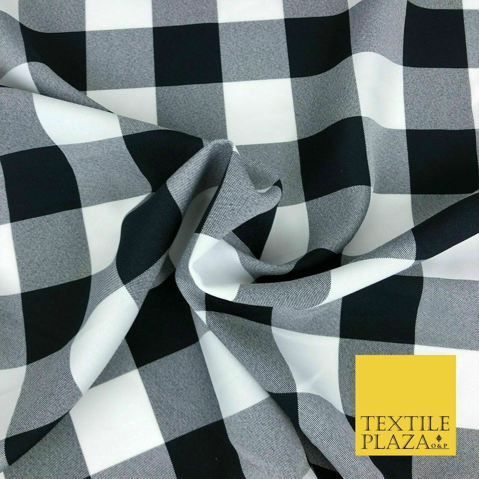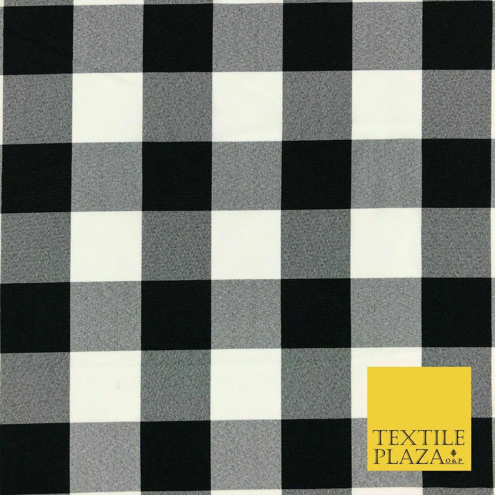 Black & White Large Gingham Check Bi-Stretch Fabric Uniform Skirts 58" 1351