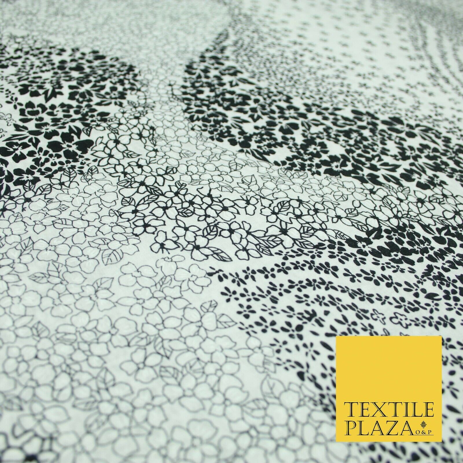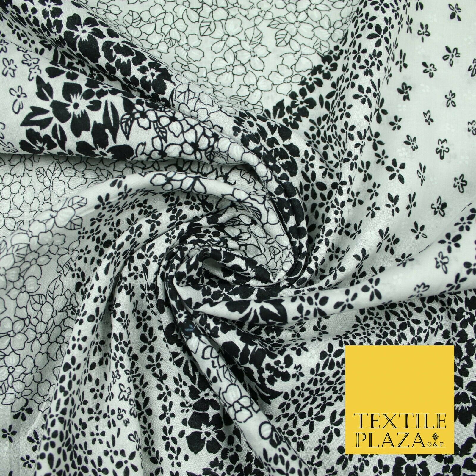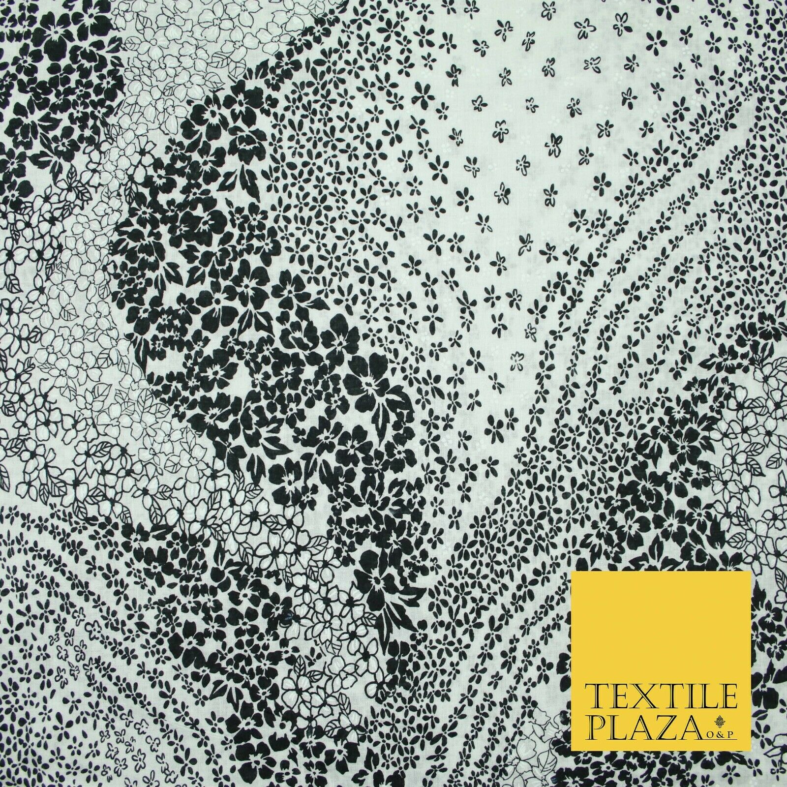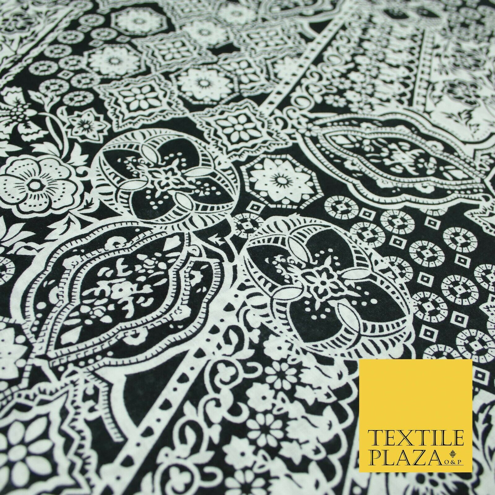 Black White Monotone Ornate Tribal Floral 100% Cotton Lawn Print Dress Fabrics