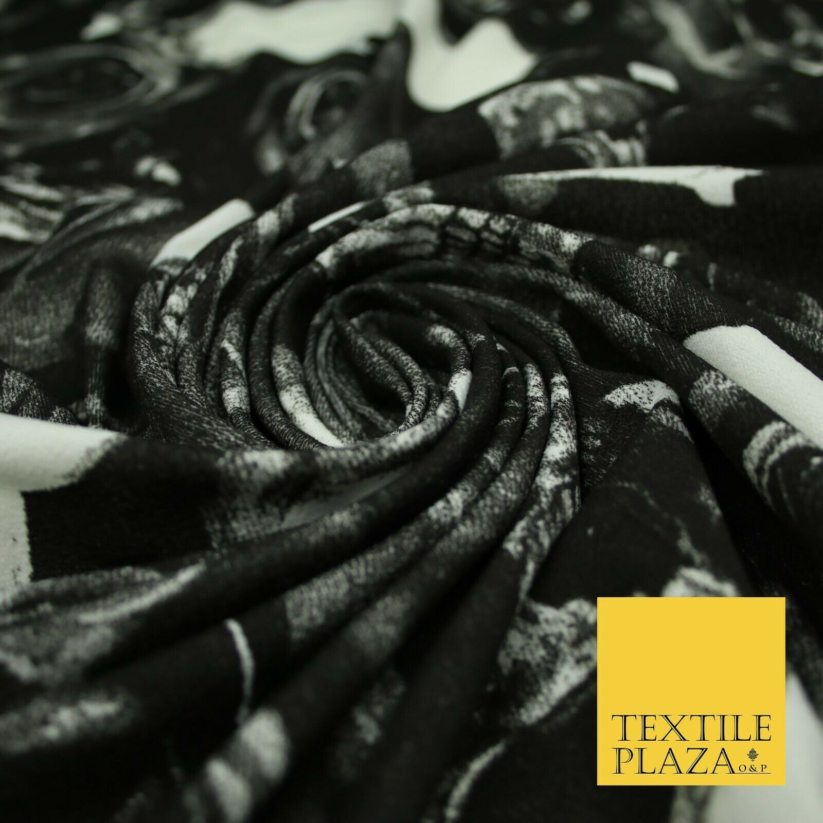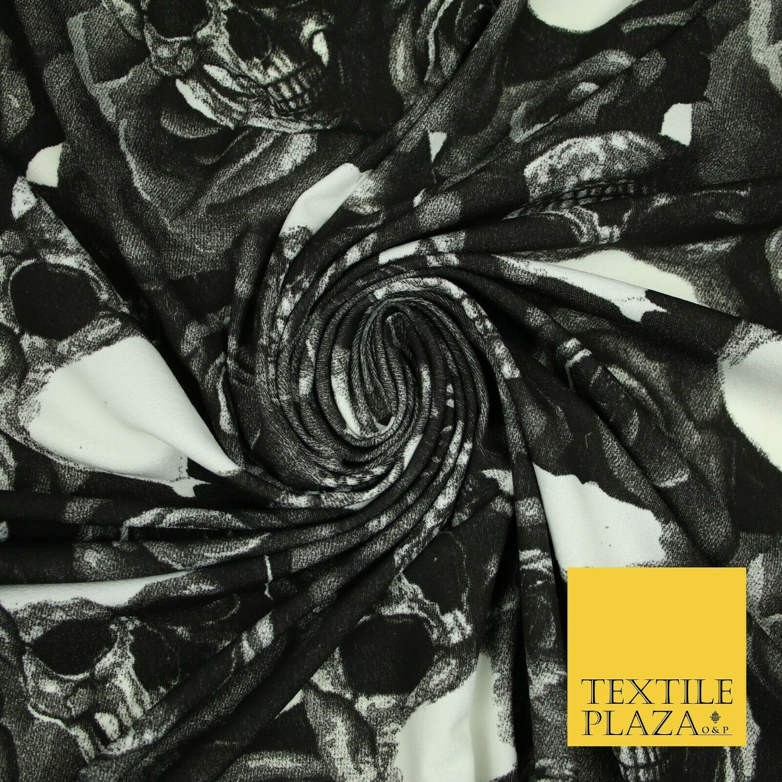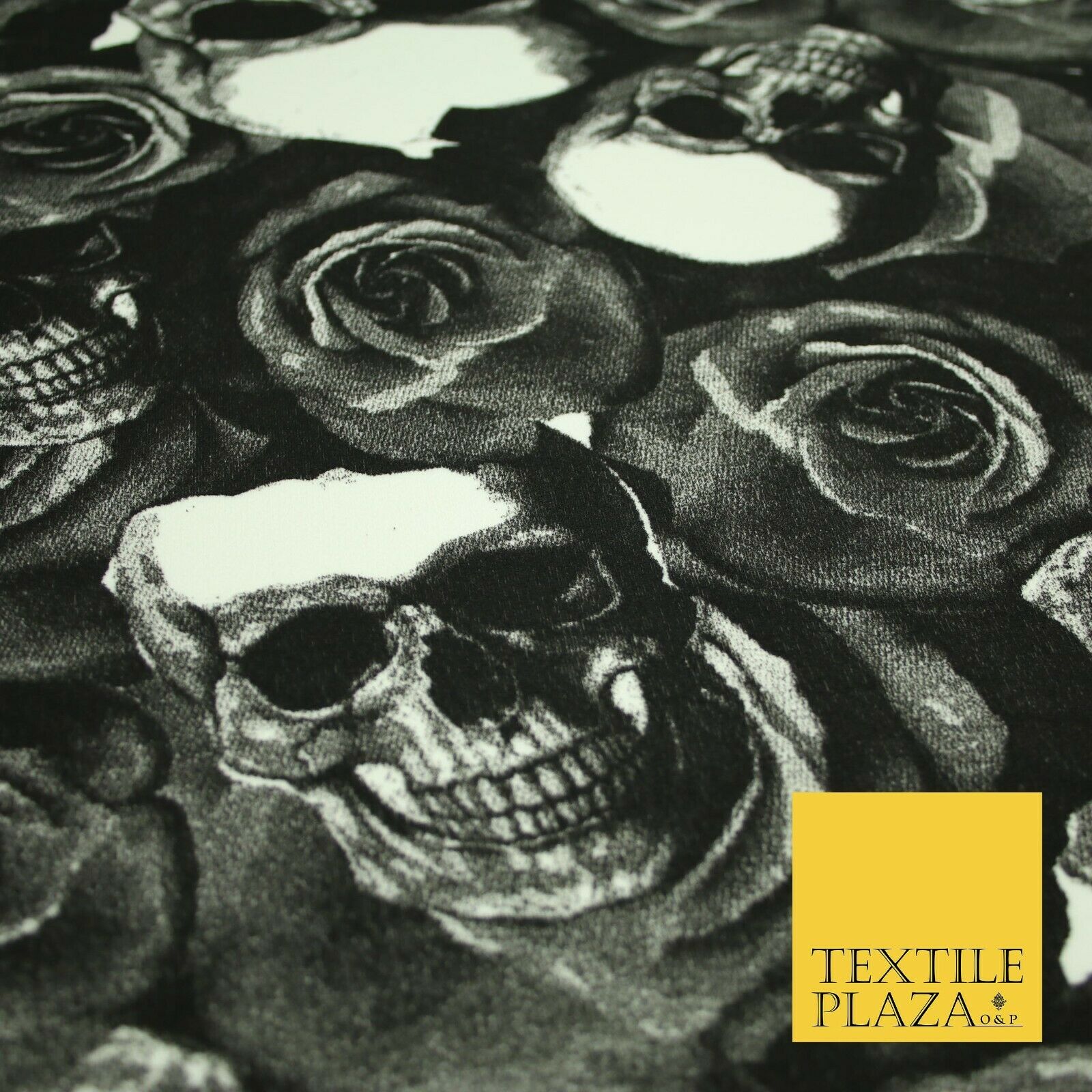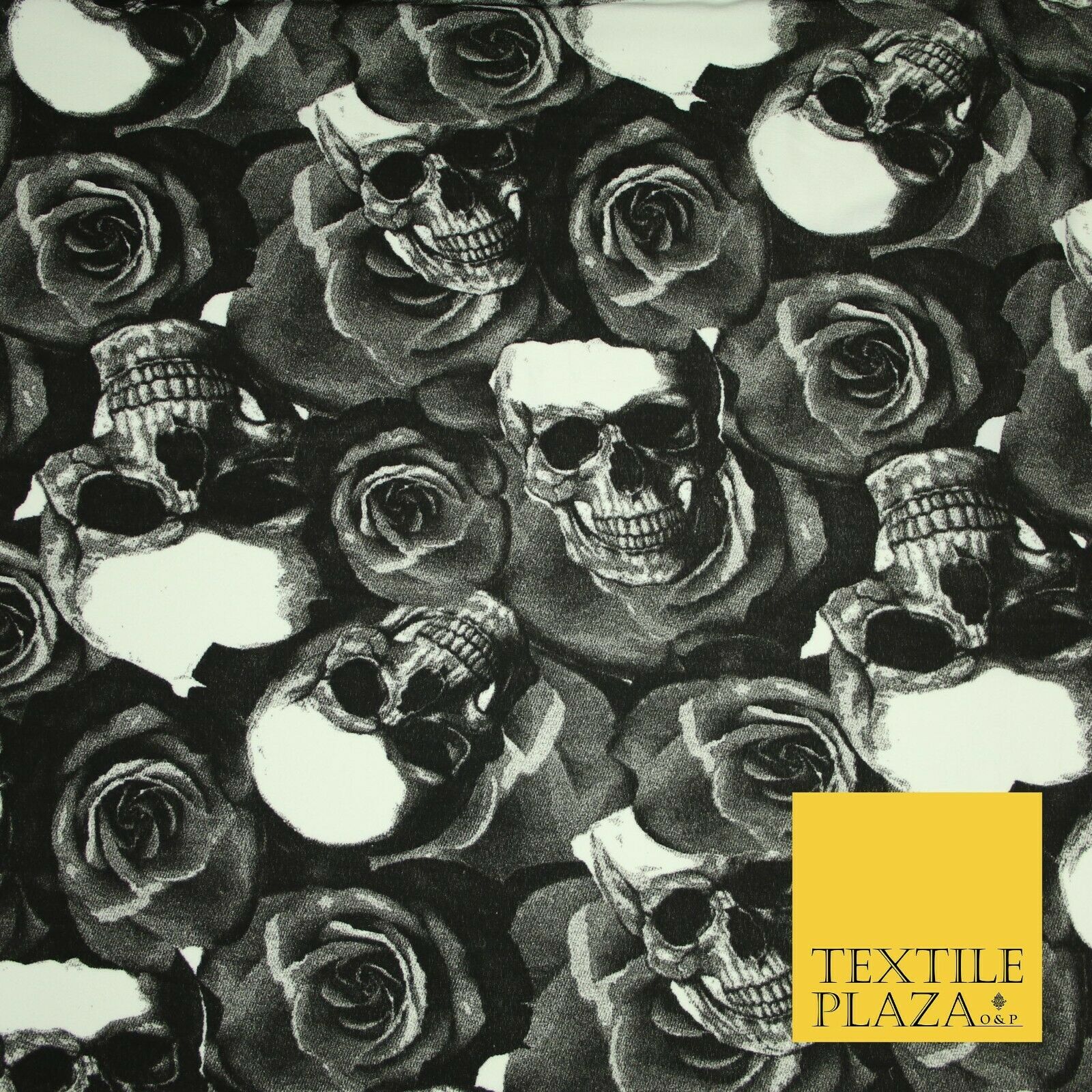 Black White Skulls N Roses Printed Stretch Jersey Fabric 59" Wide Halloween 3945