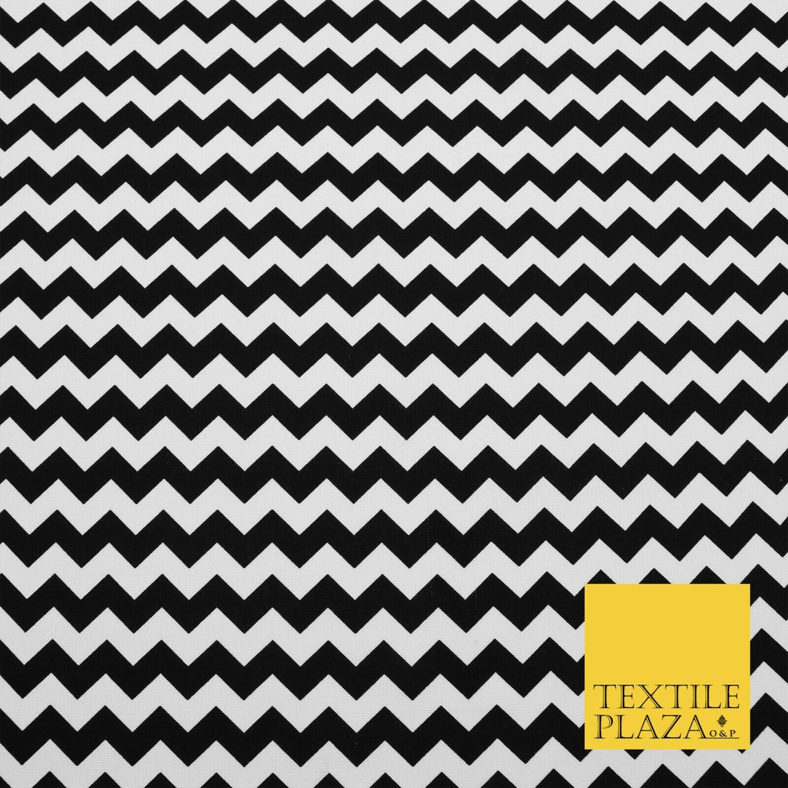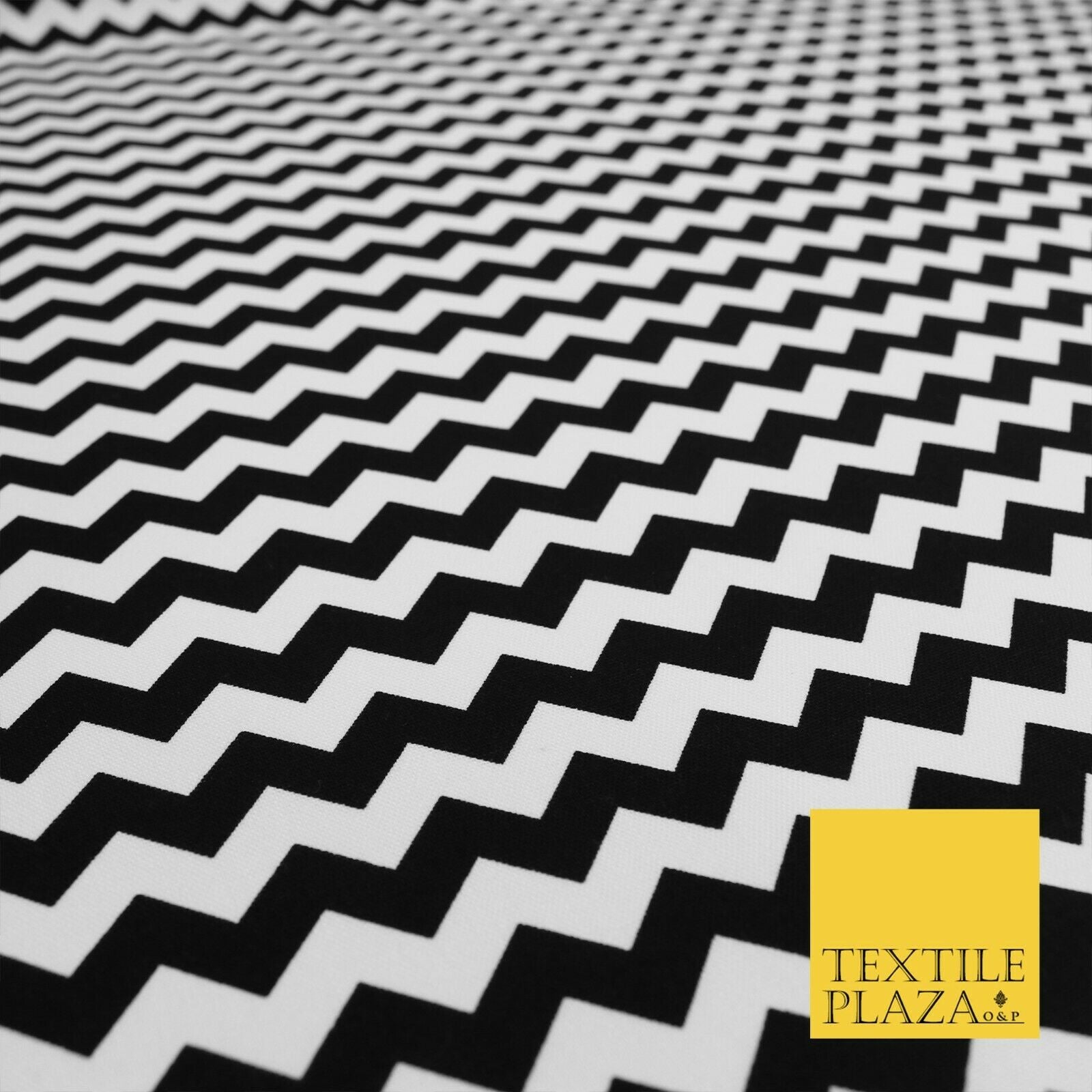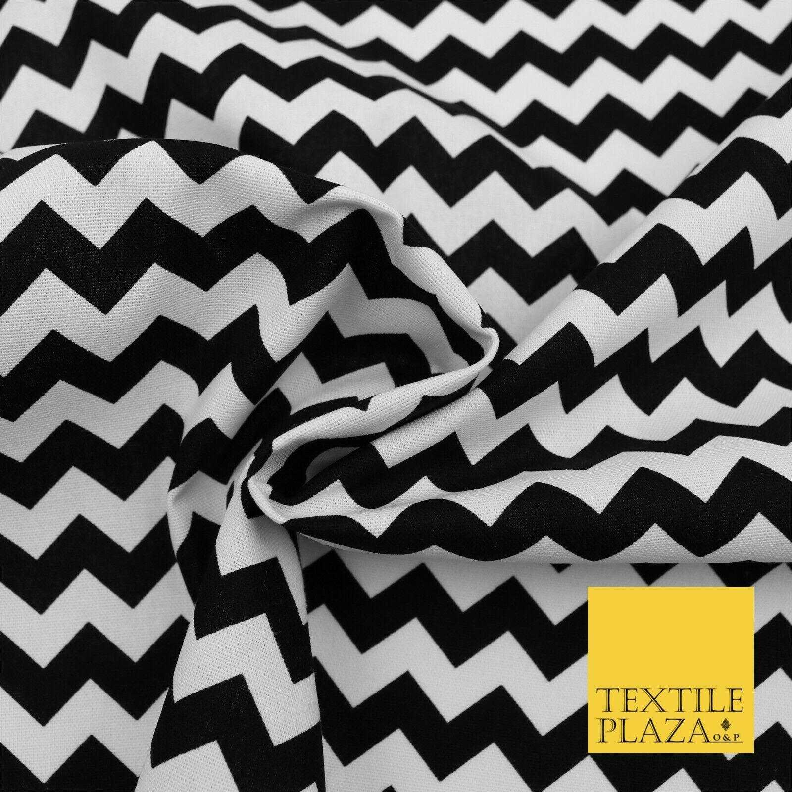 BLACK WHITE Zig Zag Wacky Illusion Print CANVAS Fabric Craft Dress Bags 1637